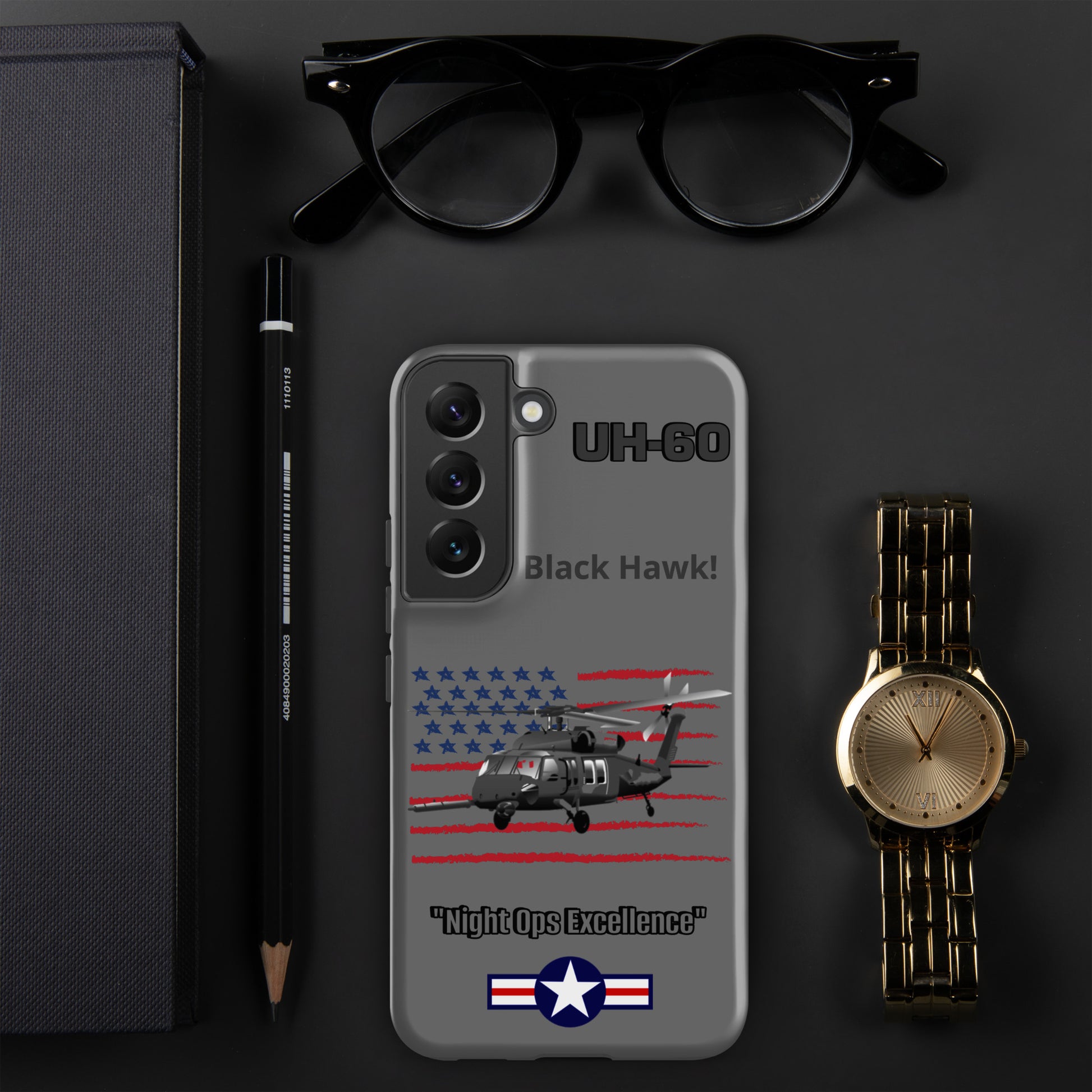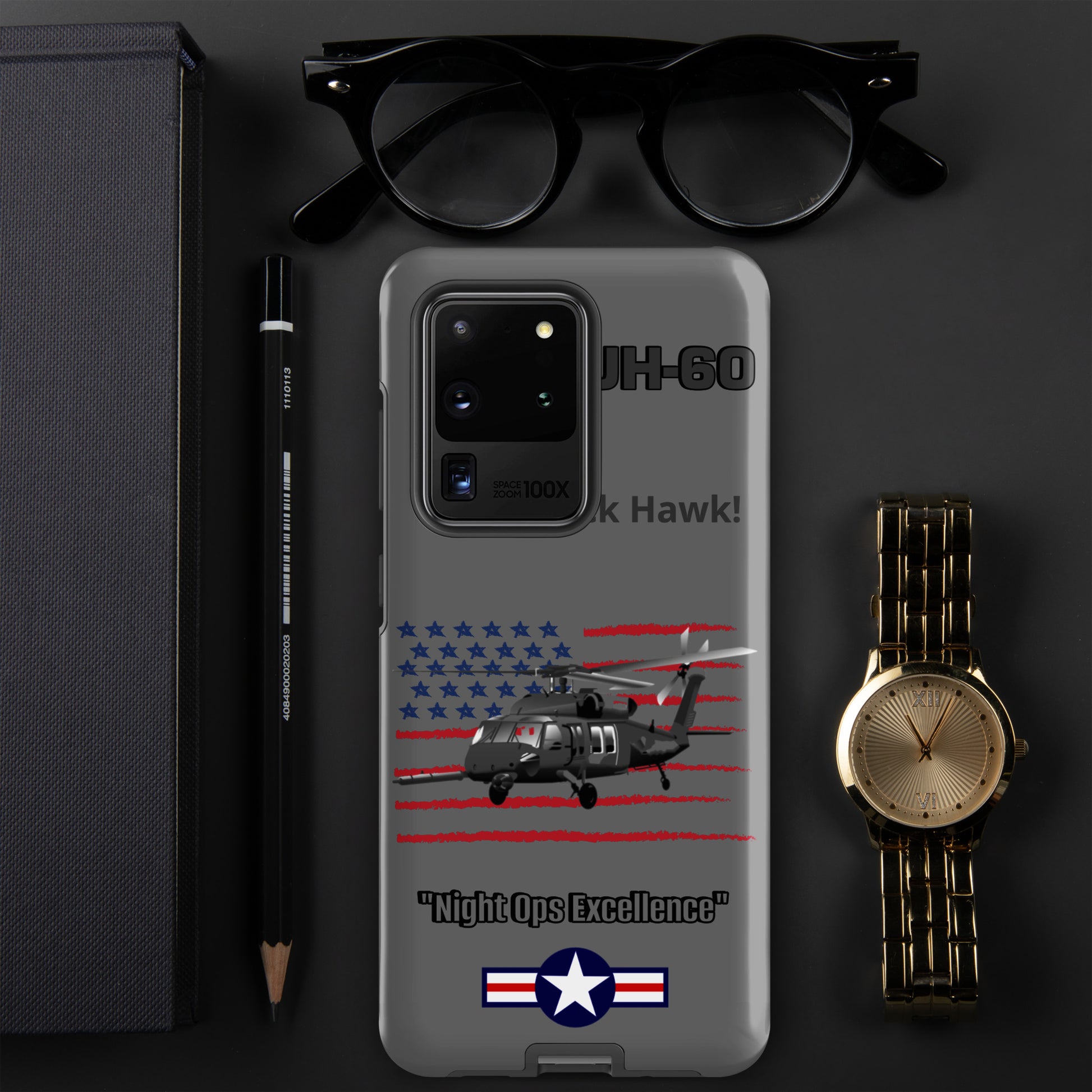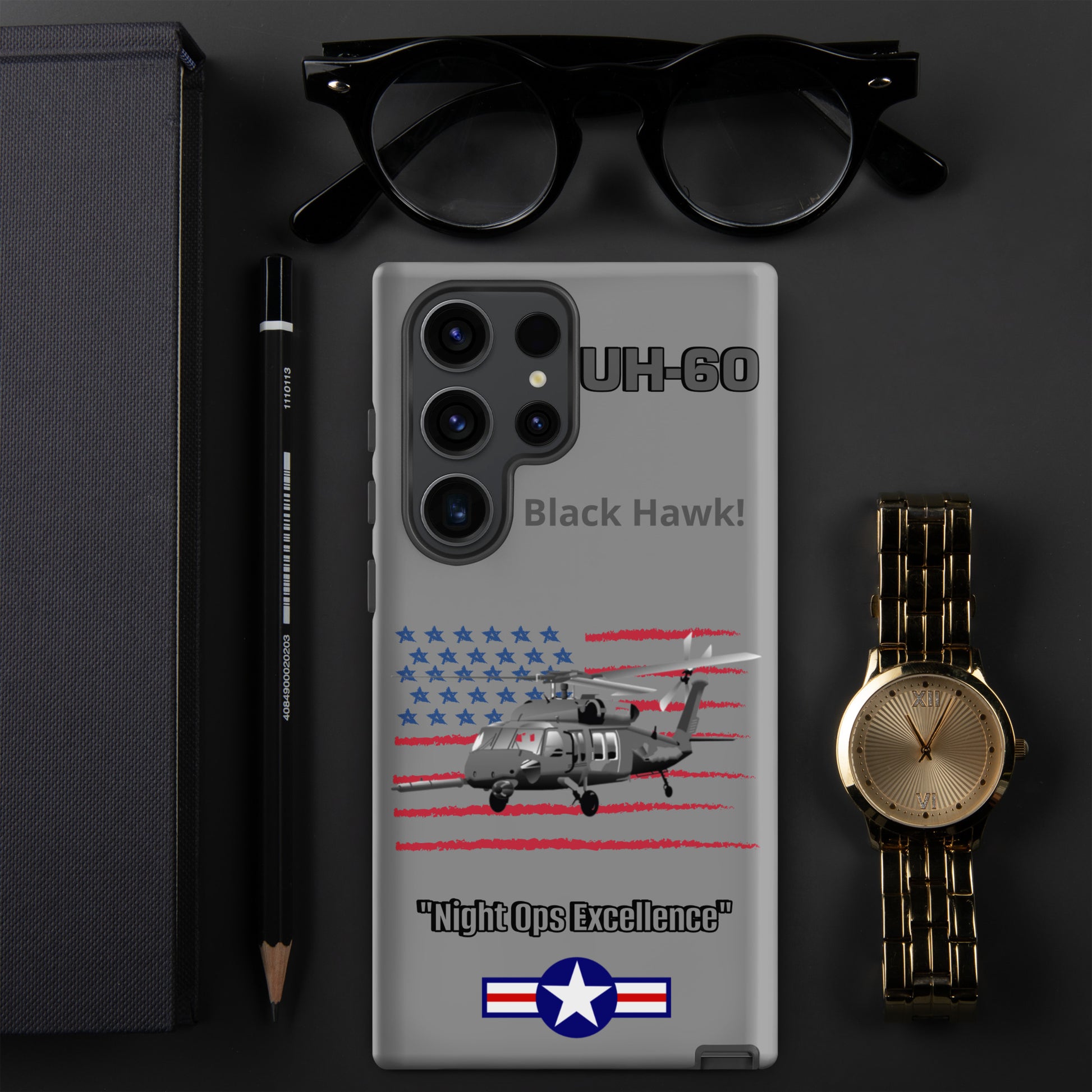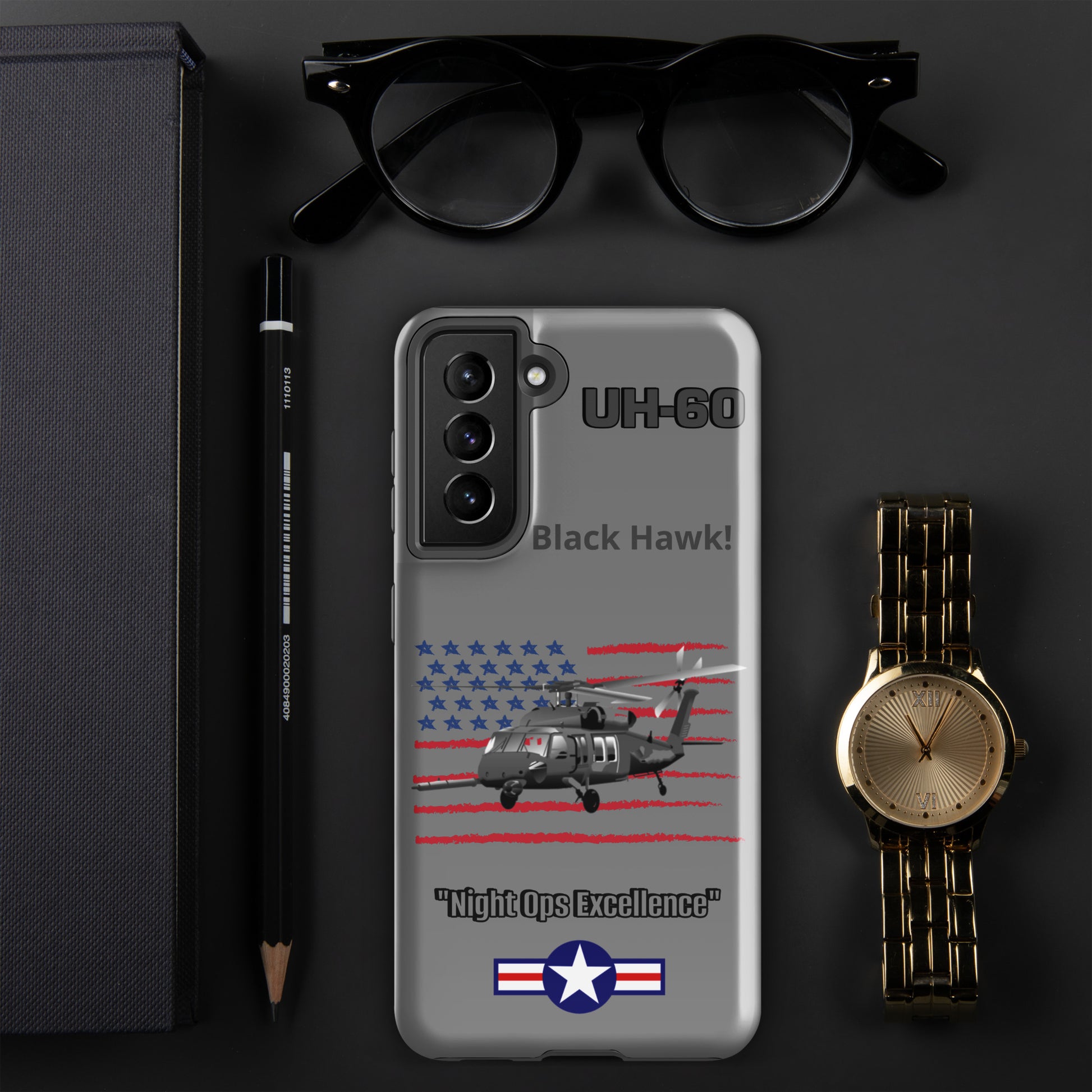 Elevate your Samsung device protection with our UH-60 Black Hawk Patriot Case. This design captures the iconic rotorcraft against the backdrop of the American flag, seamlessly merging aviation excellence with patriotic pride. Safeguard your device while paying homage to the UH-60 Black Hawk's legacy as a symbol of resilience and service. Carry the spirit of aviation and patriotism wherever you go.