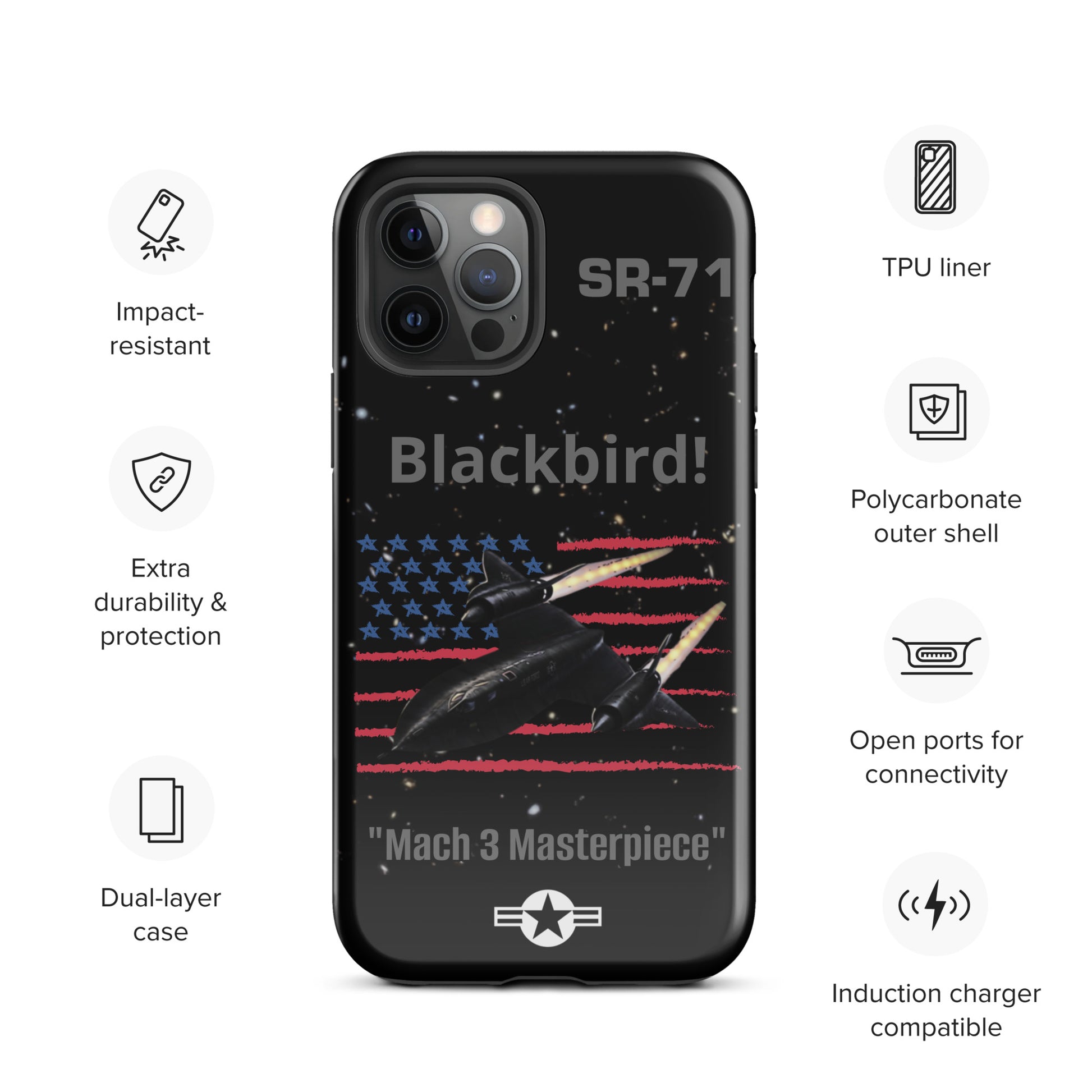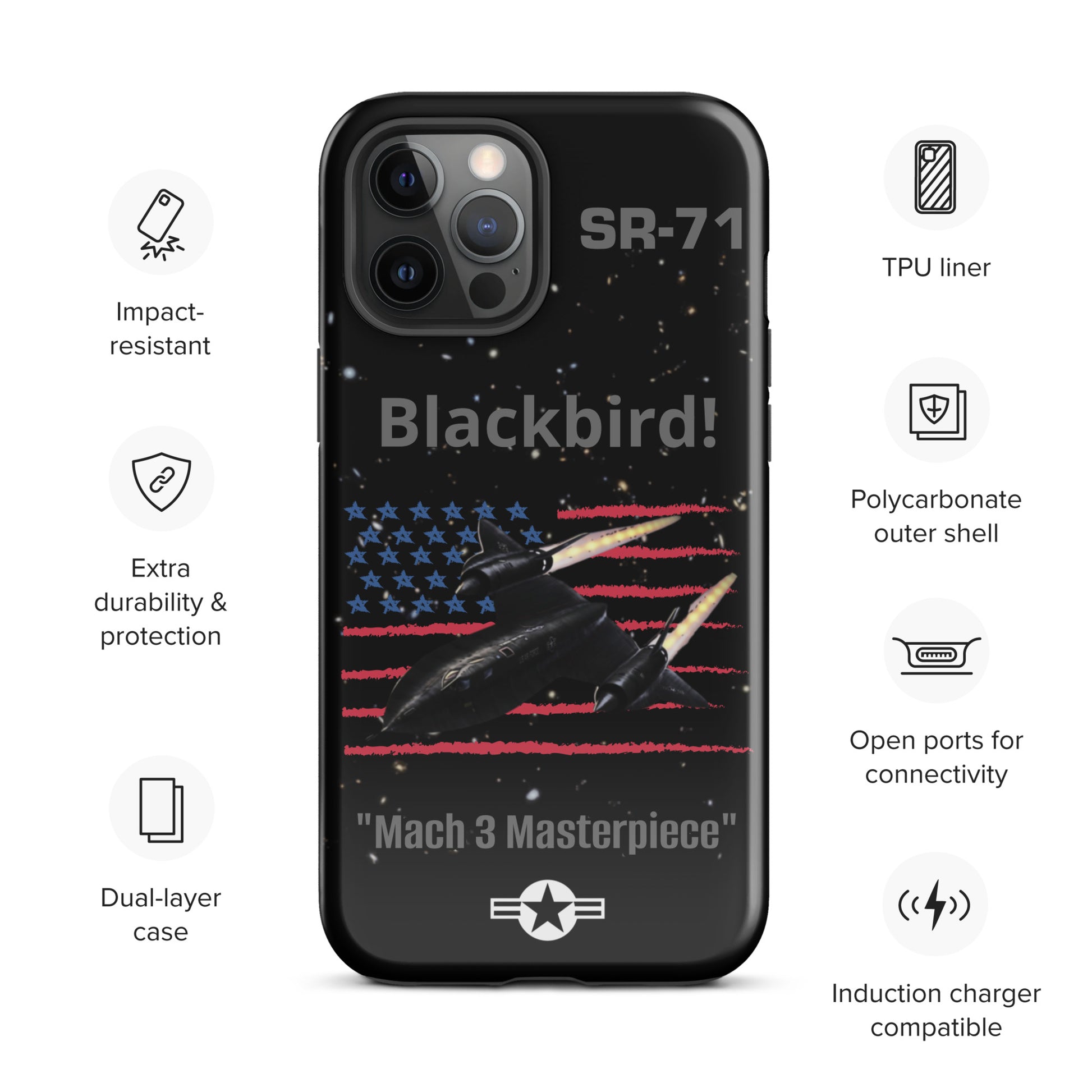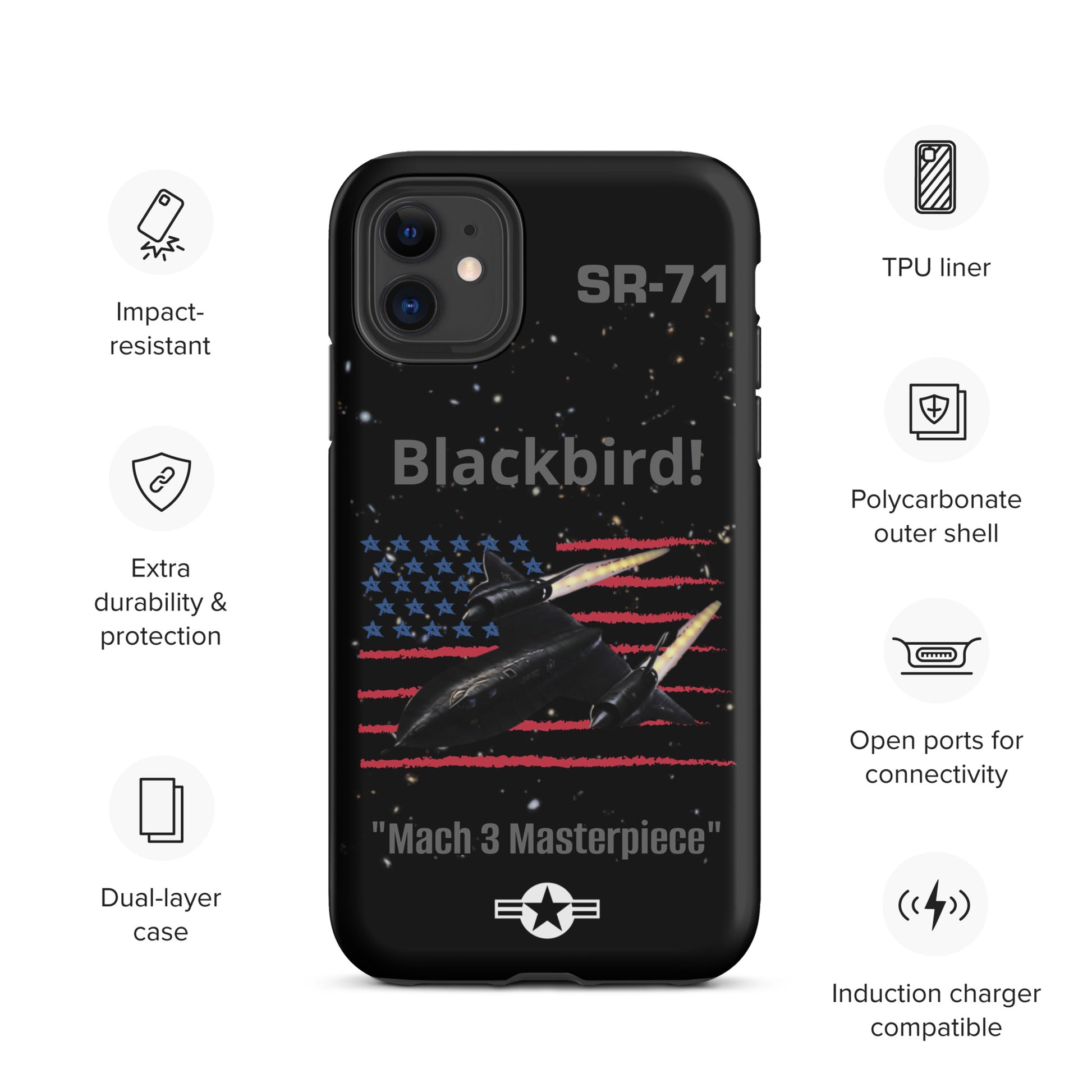 Enhance your iPhone's safeguarding with our SR-71 Blackbird iPhone case, a tribute to the iconic reconnaissance aircraft renowned for its unmatched speed and stealth capabilities. This case boasts a captivating design that reflects your admiration for aviation history and innovation. Protect your device with flair while commemorating the SR-71 Blackbird's significant contribution to military aviation. Carry the legacy of this legendary aircraft with you wherever you travel, making a bold statement with your phone case that captures the essence of speed, stealth, and aviation excellence.