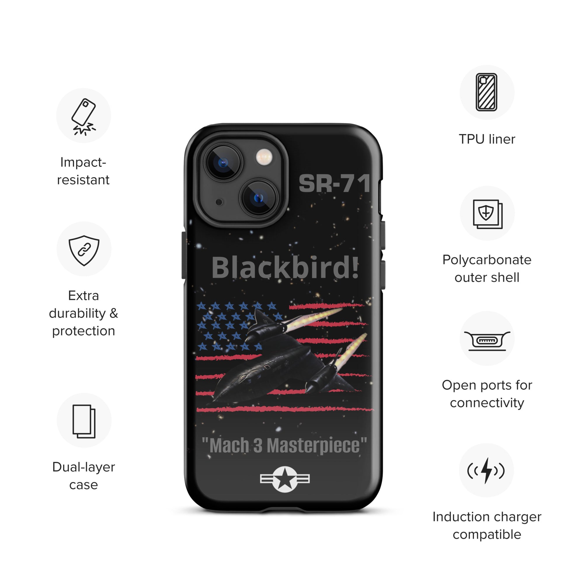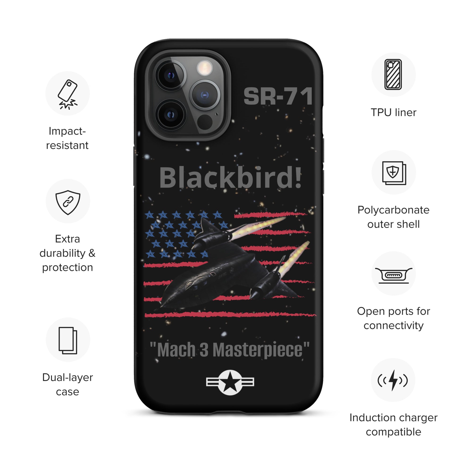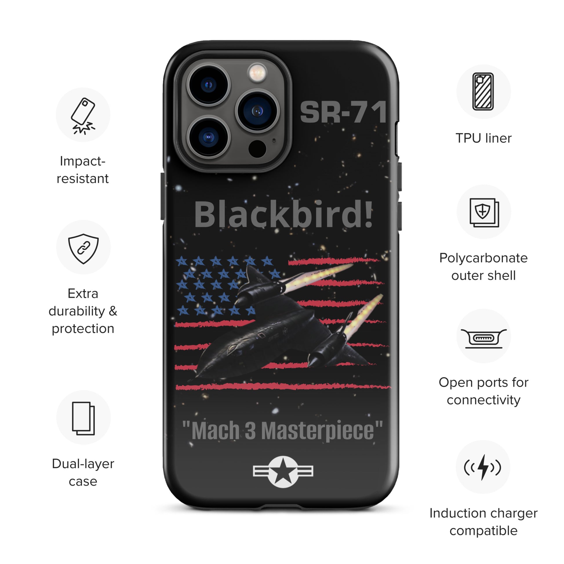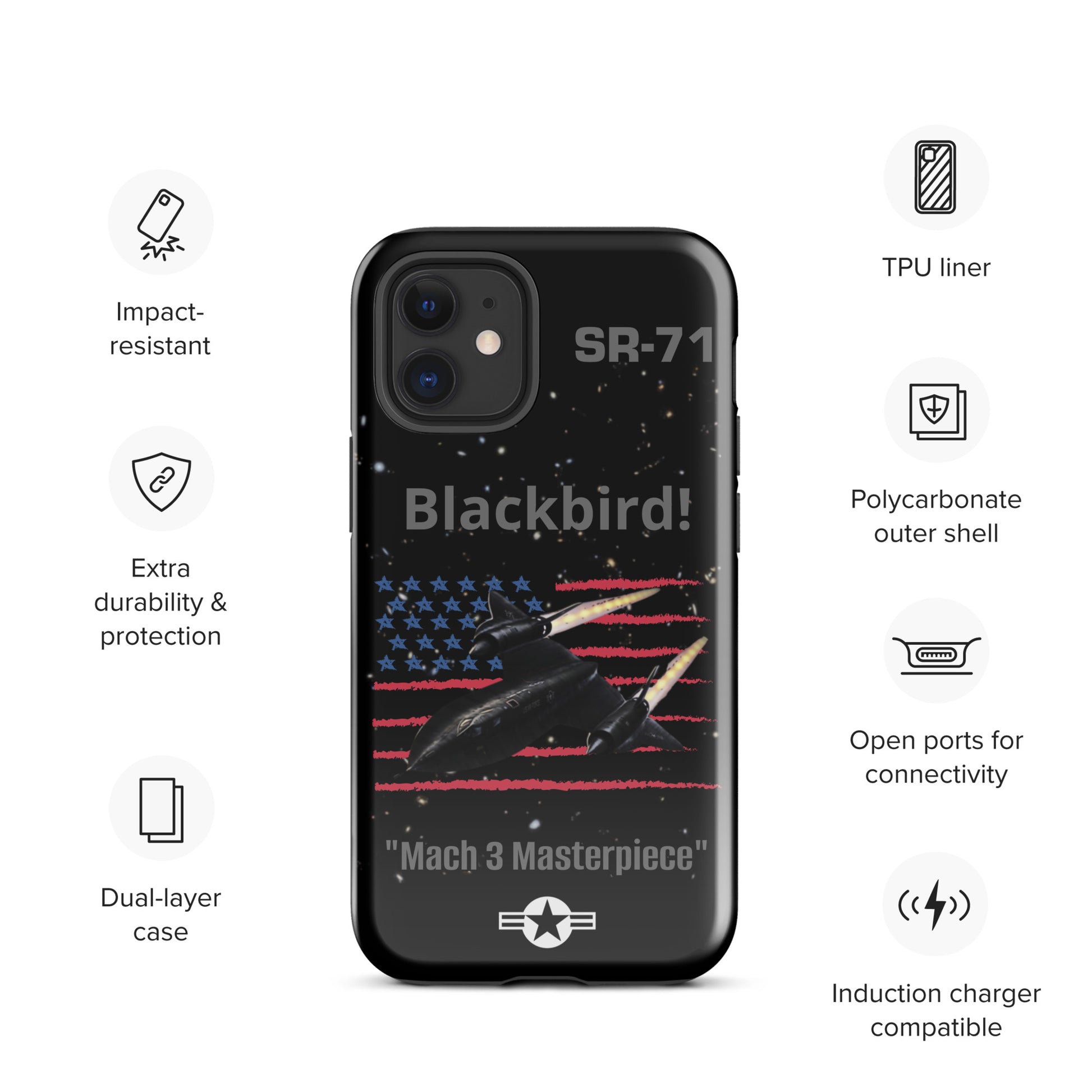 Enhance your iPhone's safeguarding with our SR-71 Blackbird iPhone case, a tribute to the iconic reconnaissance aircraft renowned for its unmatched speed and stealth capabilities. This case boasts a captivating design that reflects your admiration for aviation history and innovation. Protect your device with flair while commemorating the SR-71 Blackbird's significant contribution to military aviation. Carry the legacy of this legendary aircraft with you wherever you travel, making a bold statement with your phone case that captures the essence of speed, stealth, and aviation excellence.