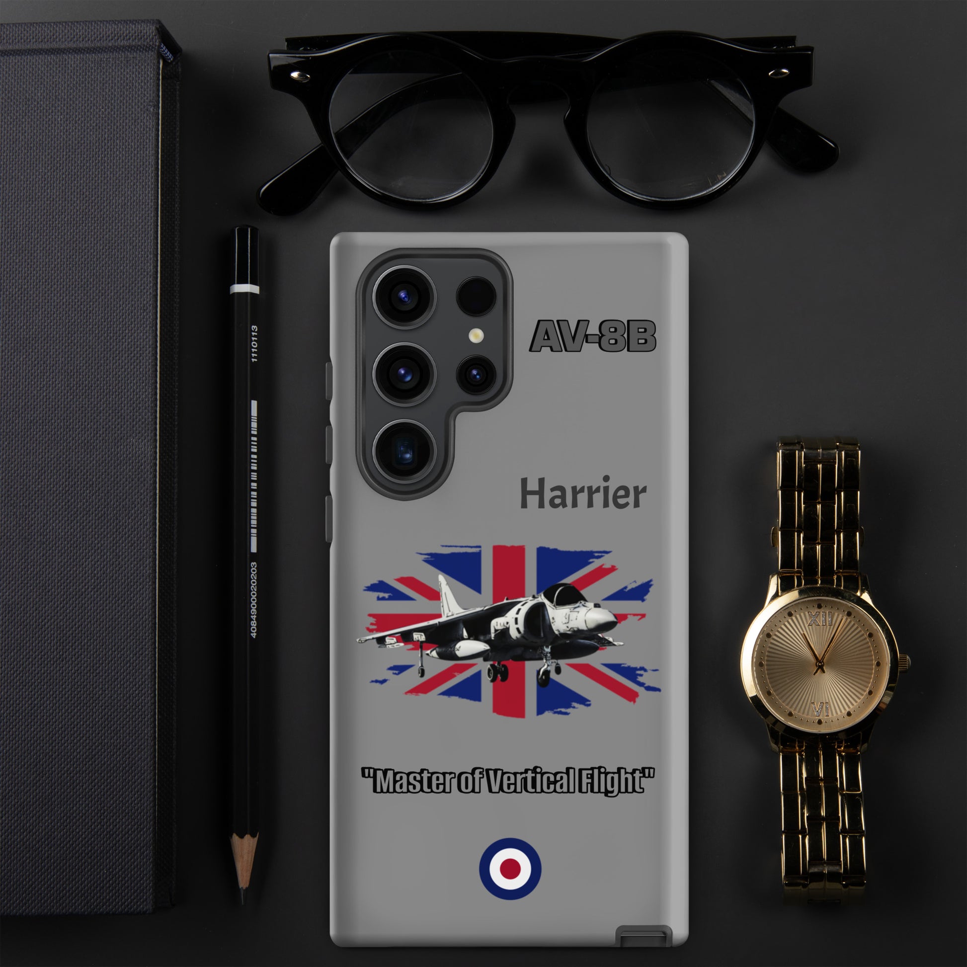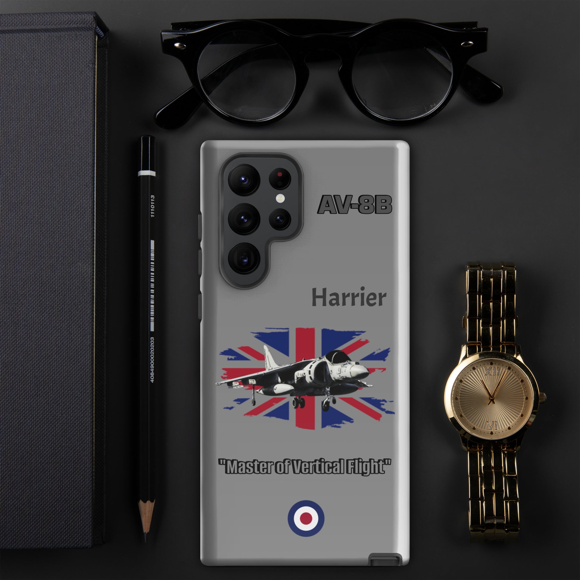 Elevate your Samsung's style and protection with our AV-8B Harrier II Patriot Case. This unique design features the AV-8B Harrier II. Safeguard your Samsung device while celebrating the Harrier's legacy as a symbol of vertical flight and British air power. Carry the spirit of aviation and patriotism wherever you go.