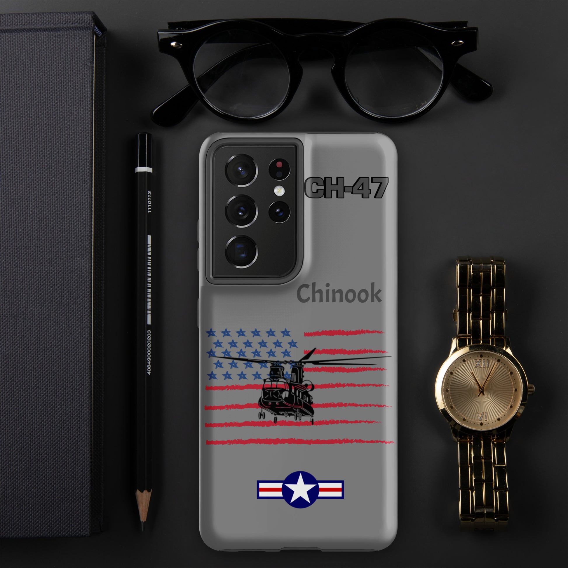 Elevate your Samsung device protection with our CH-47 Chinook Patriot Case. This design captures the iconic aircraft against the backdrop of the American flag, merging aviation prowess with patriotic pride. Safeguard your device while honoring the CH-47 Chinook's legacy as a symbol of strength and support. Carry the spirit of aviation and patriotism wherever you go.