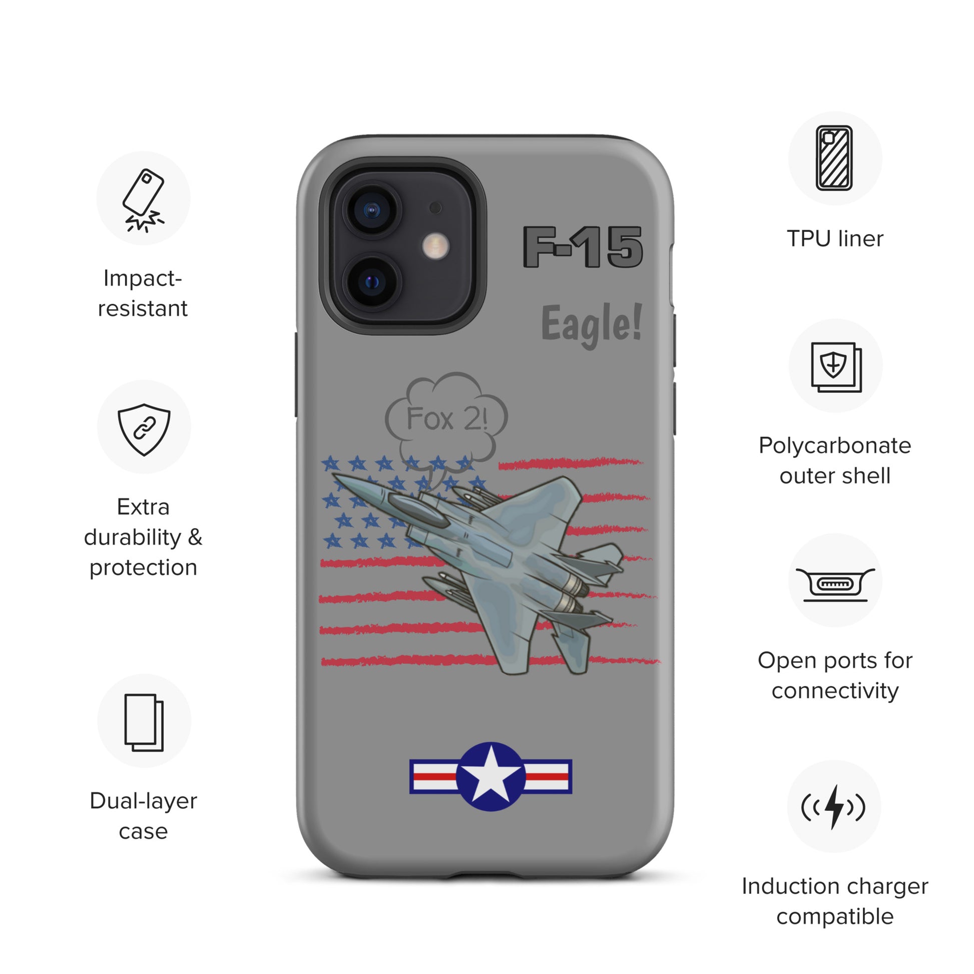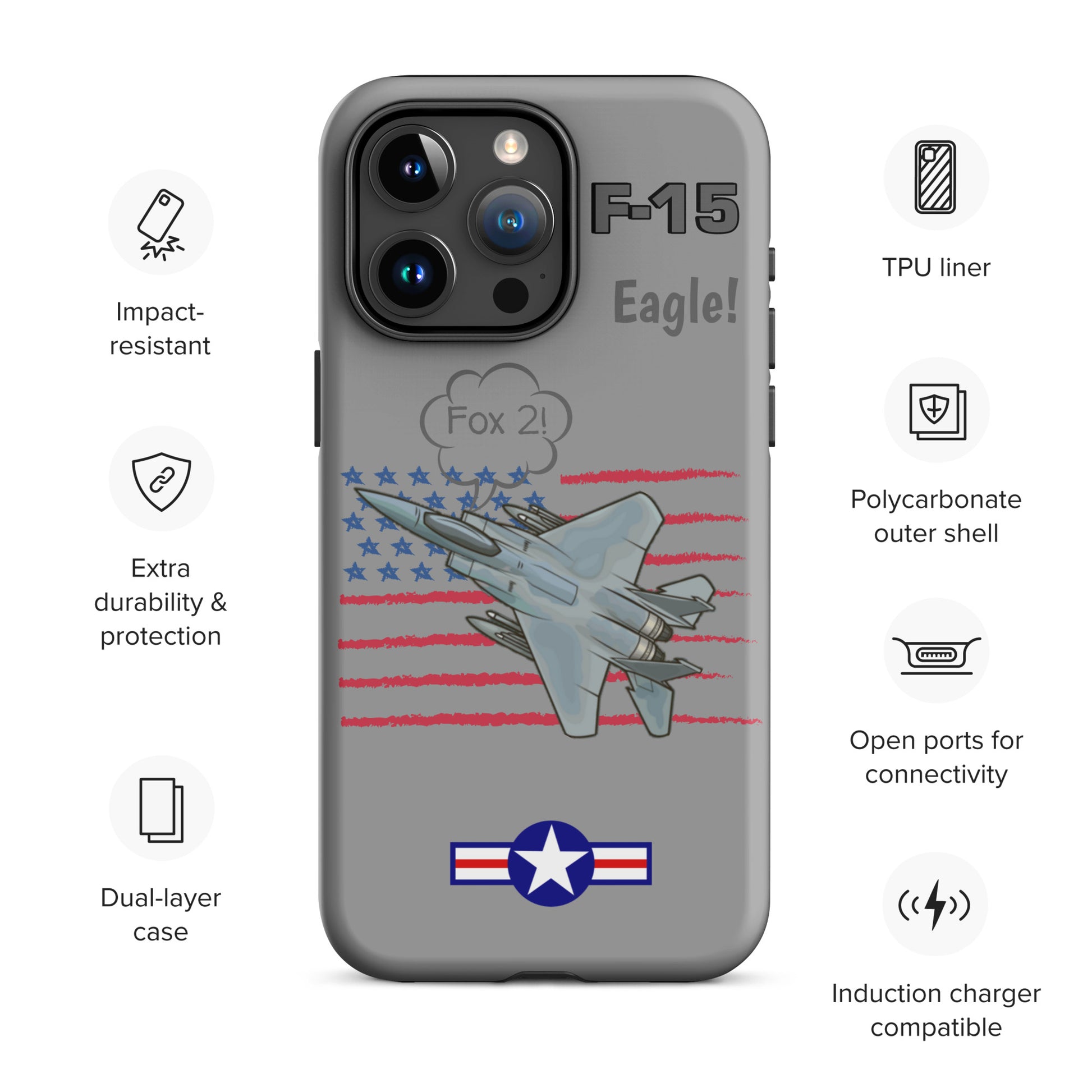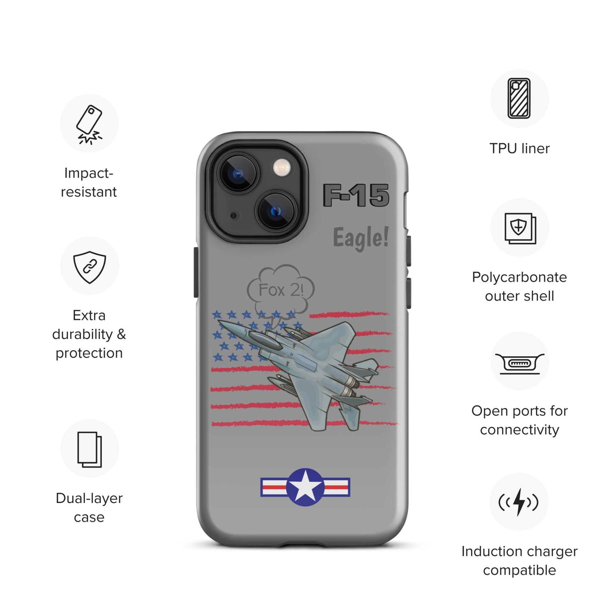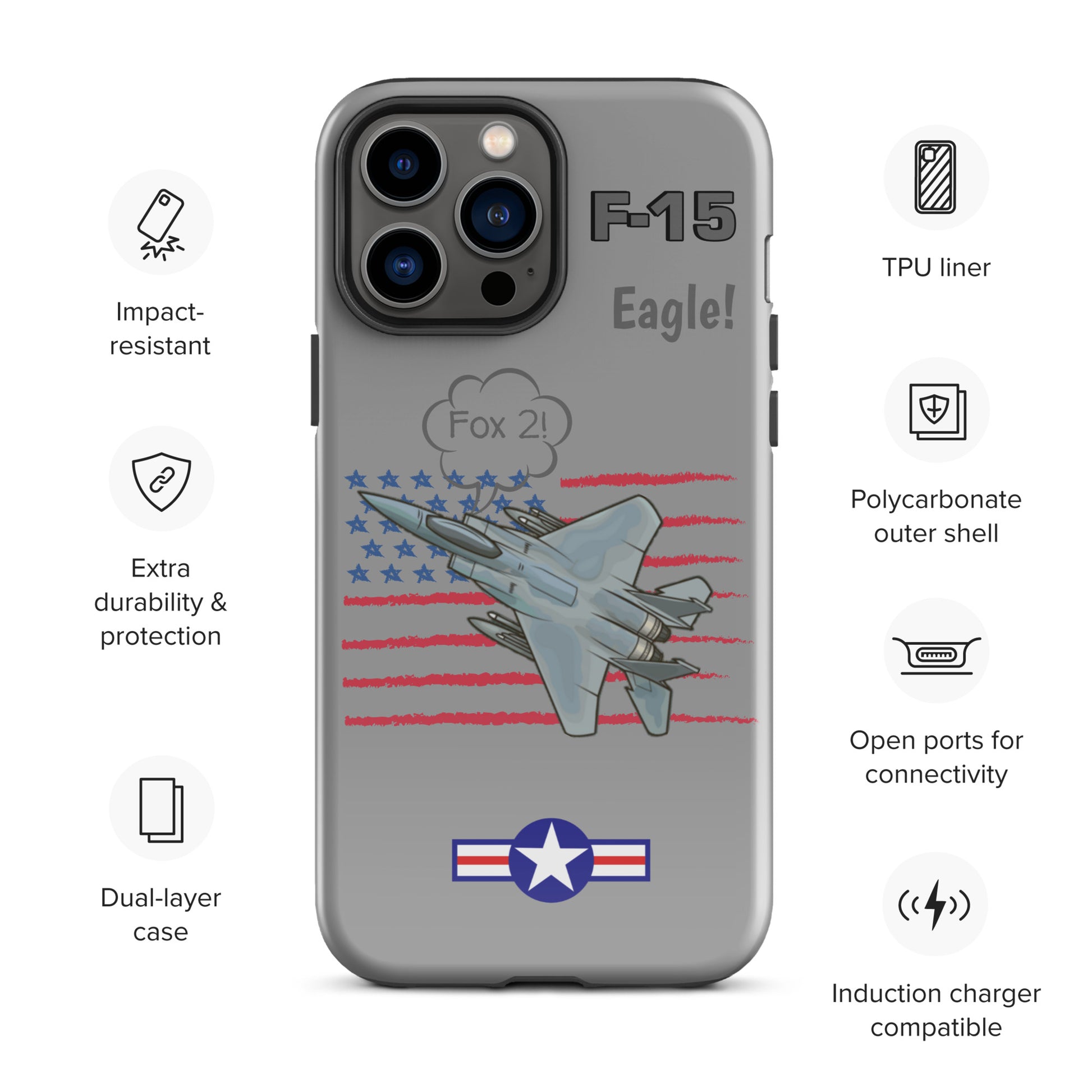 Elevate your iPhone's defense with our F-15 Eagle Inspired Phone Case. Imbued with the strength of the iconic F-15 aircraft and adorned with the stars and stripes of the USA flag, this case combines style and protection seamlessly. Safeguard your device with the spirit of aviation and patriotism, showcasing your pride in both technology and country.