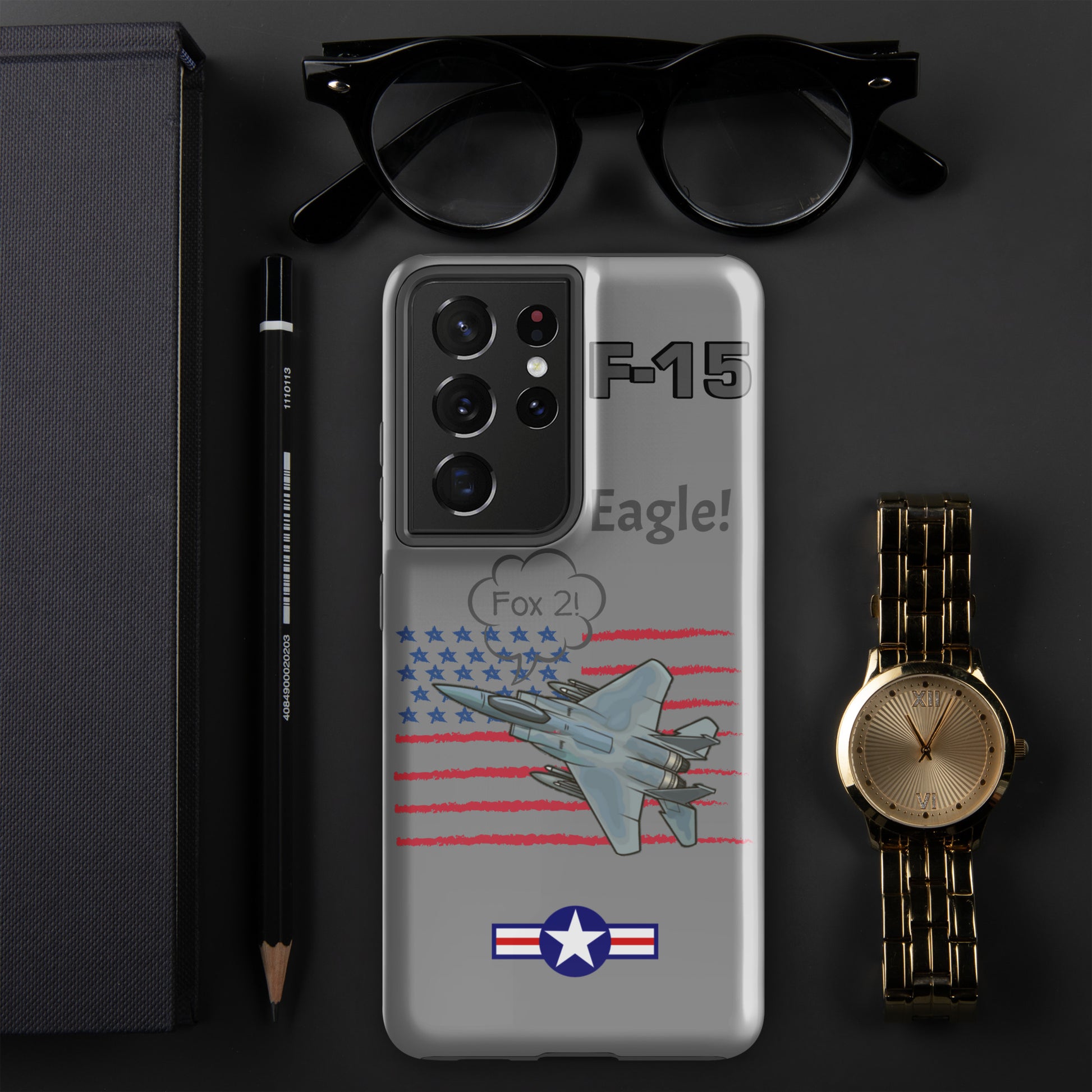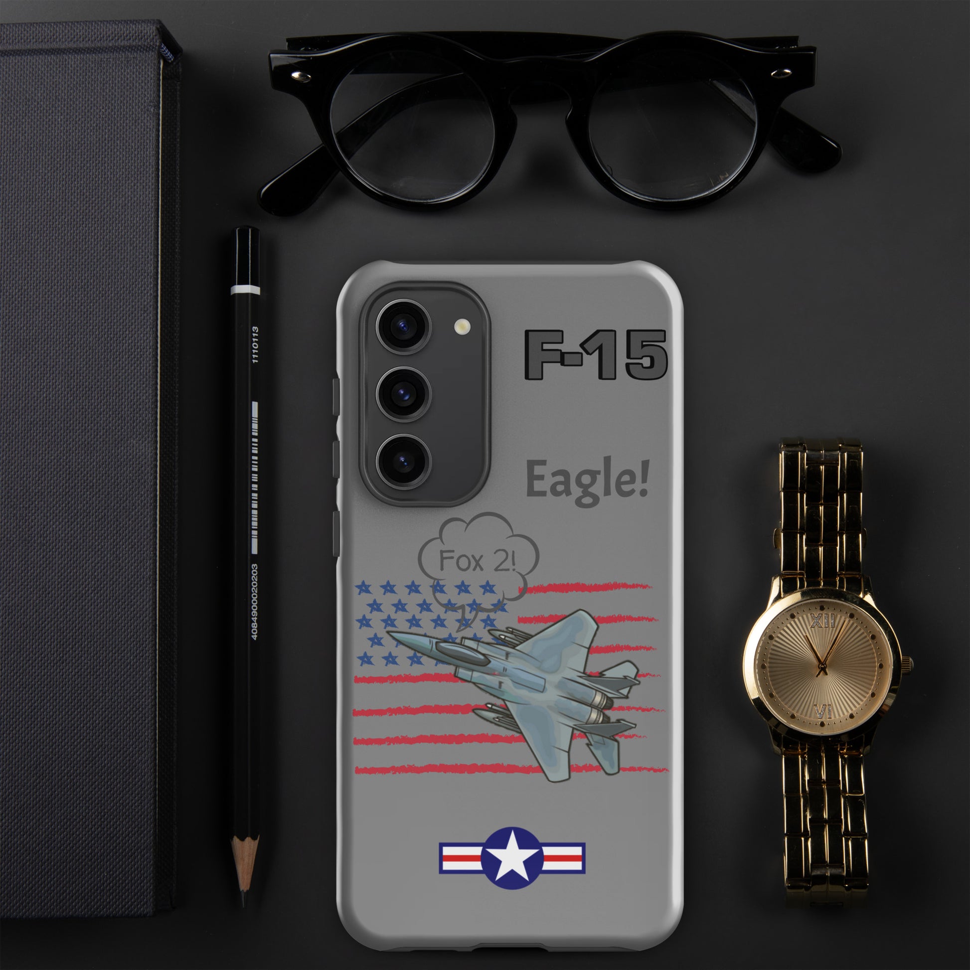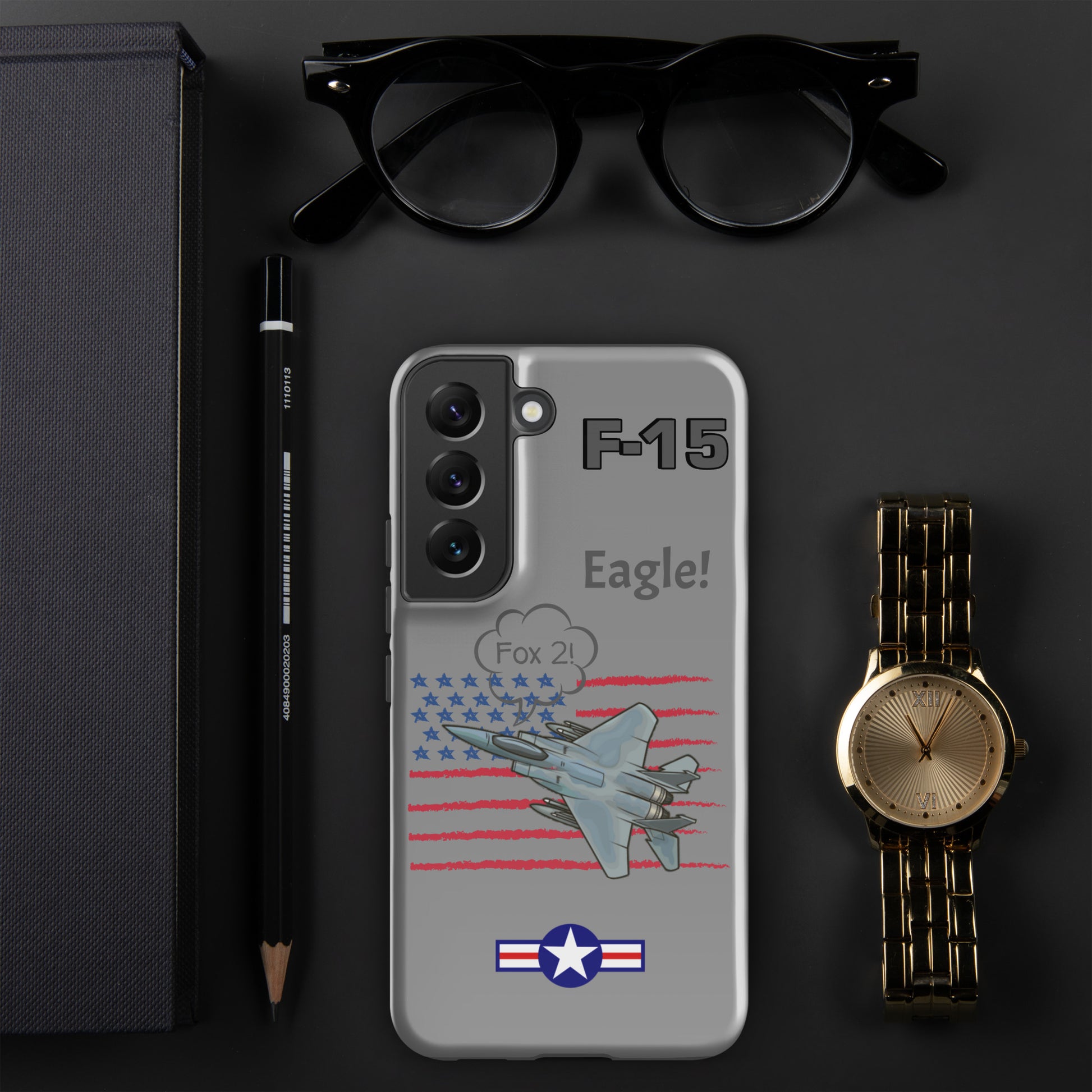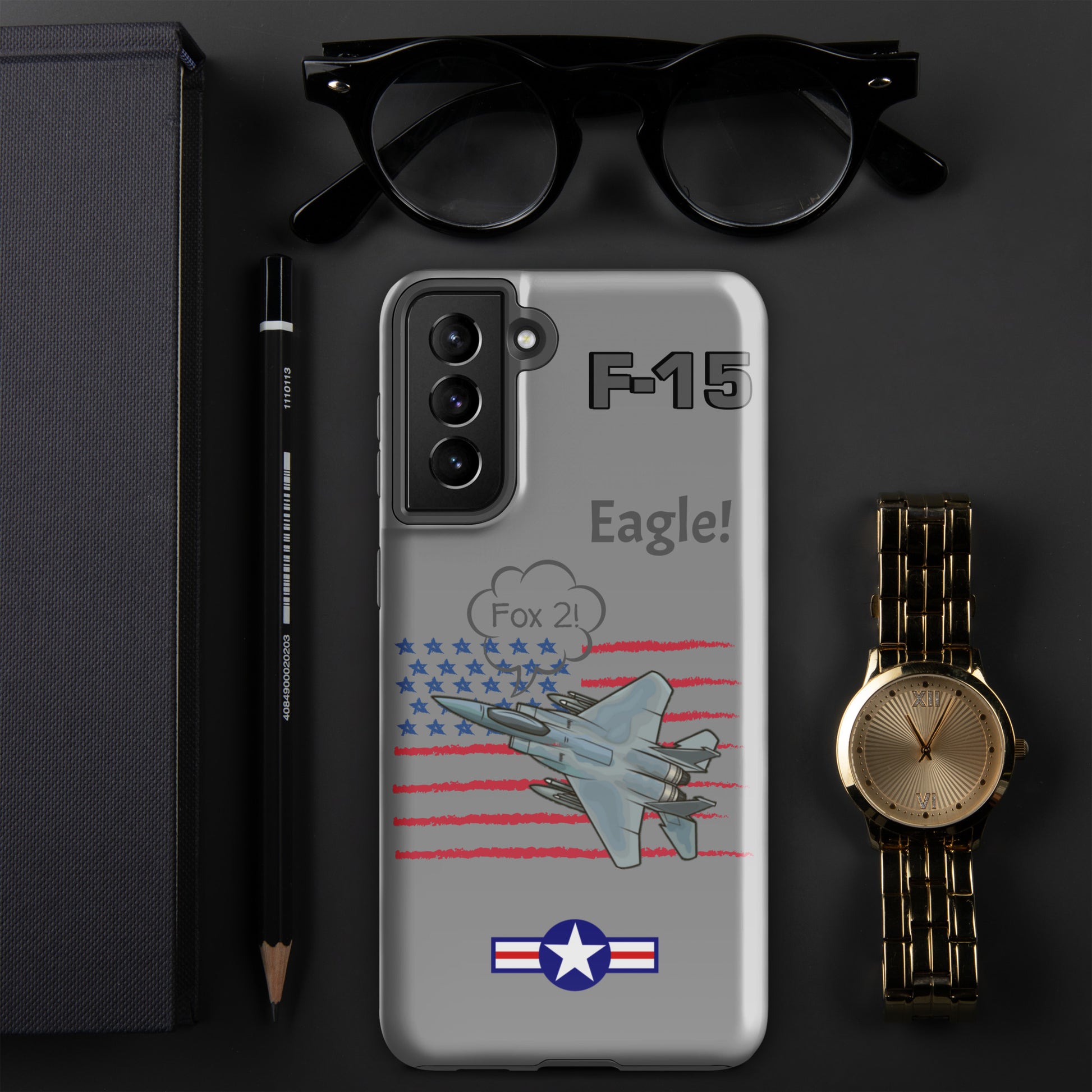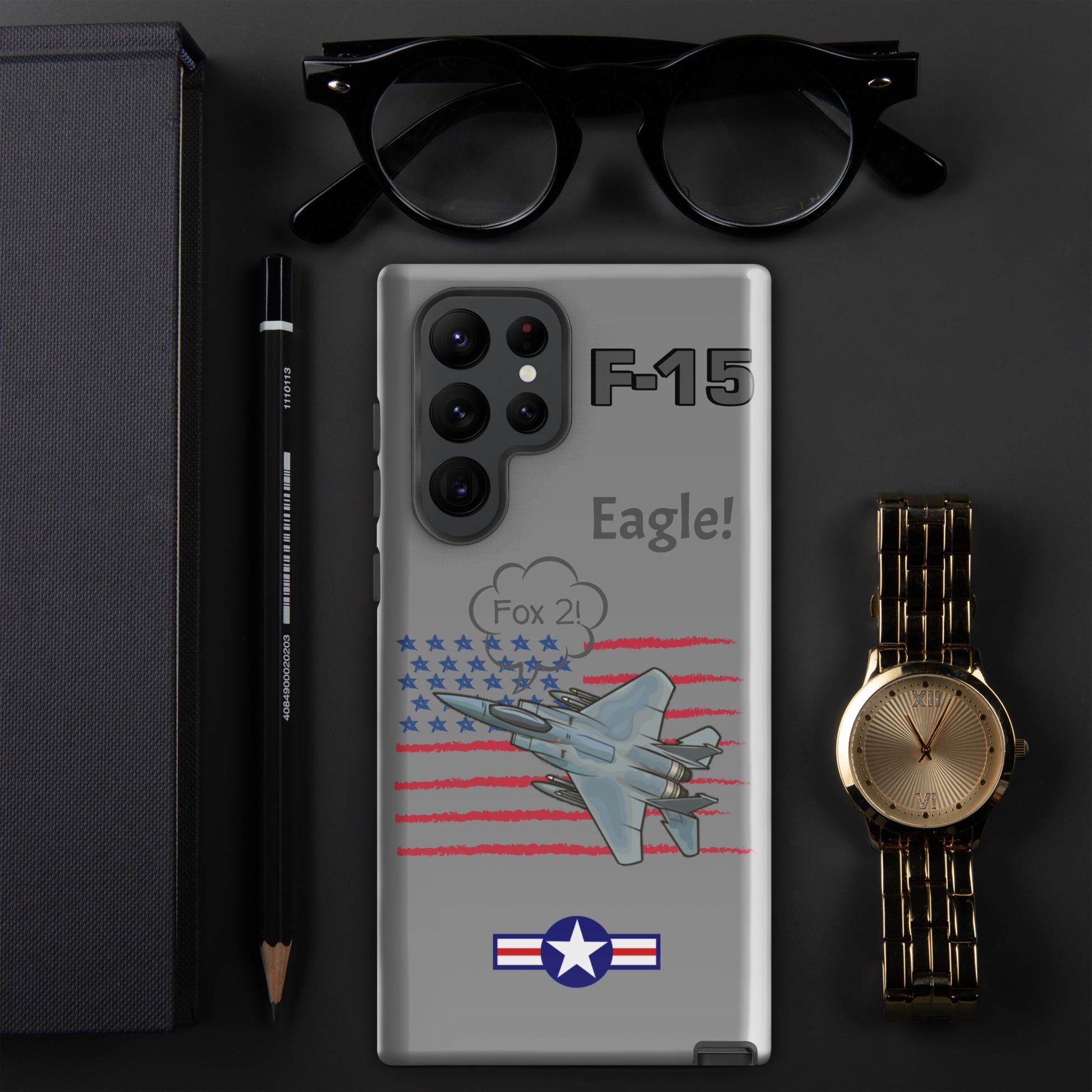 Elevate your Samsung's defense with our F-15 Eagle Inspired Phone Case. Imbued with the strength of the iconic F-15 aircraft and adorned with the stars and stripes of the USA flag, this case combines style and protection seamlessly. Safeguard your device with the spirit of aviation and patriotism, showcasing your pride in both technology and country.