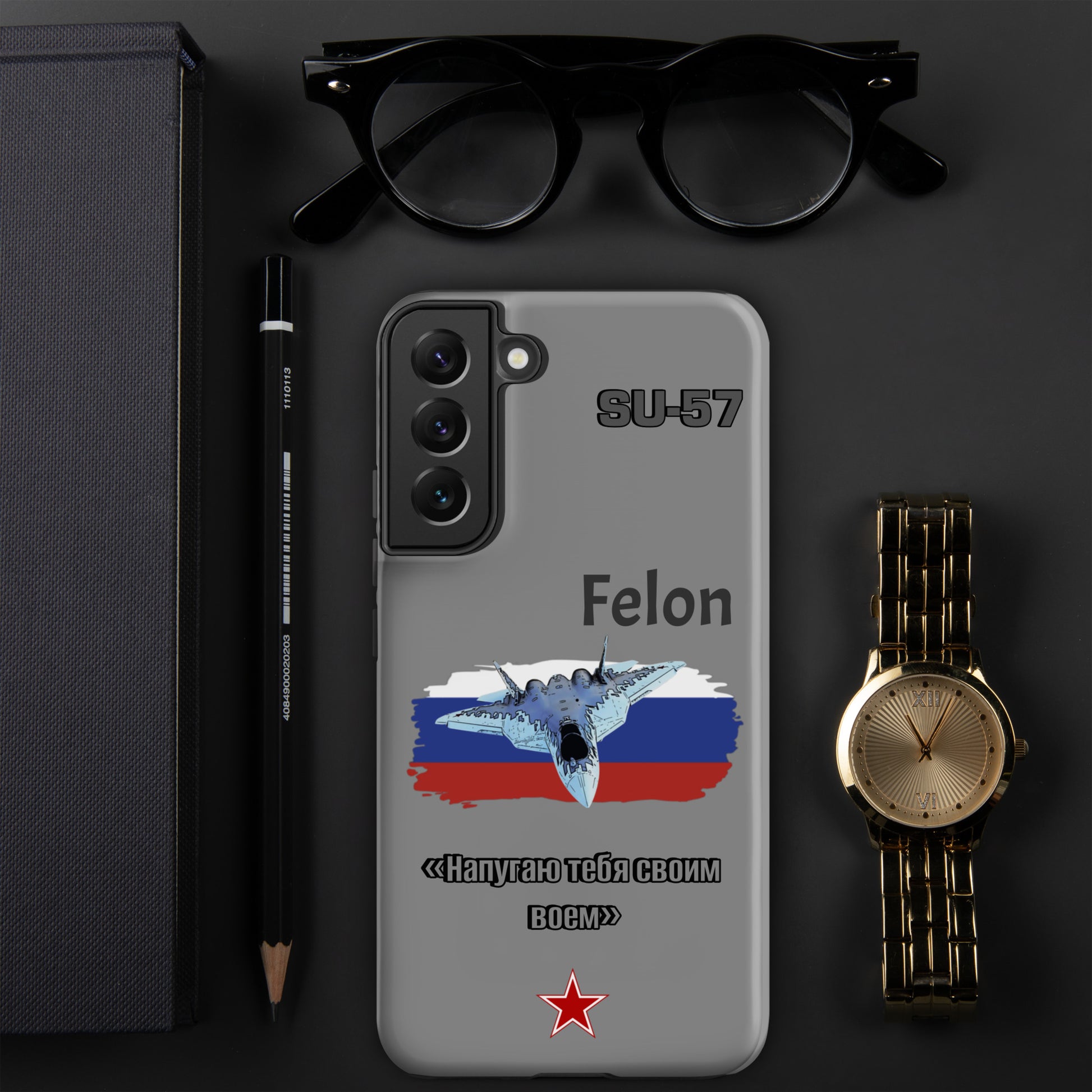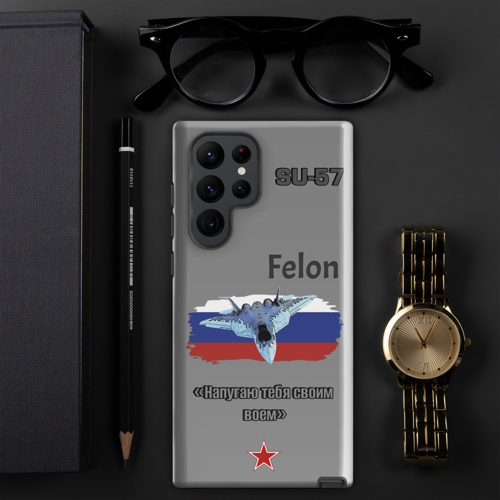 Elevate your Samsung device protection with our SU-57 Felon Power Case. This design captures the essence of the formidable SU-57 Felon, showcasing its dominance in the skies. Safeguard your device with the same precision and strength that define this cutting-edge aircraft. Carry the legacy of the SU-57 Felon proudly and showcase your passion for aviation wherever you go.