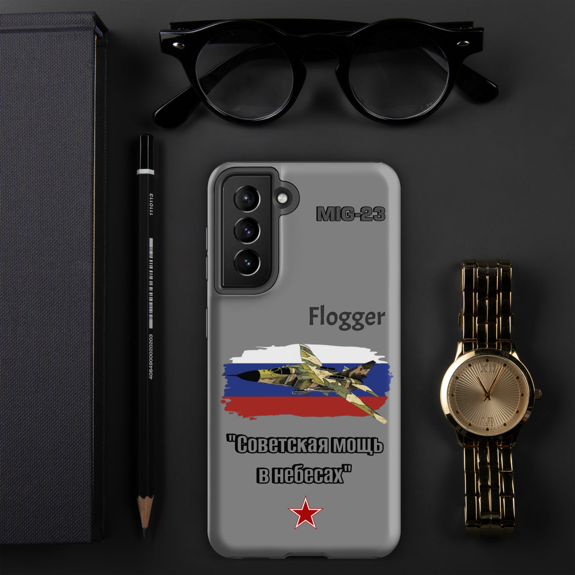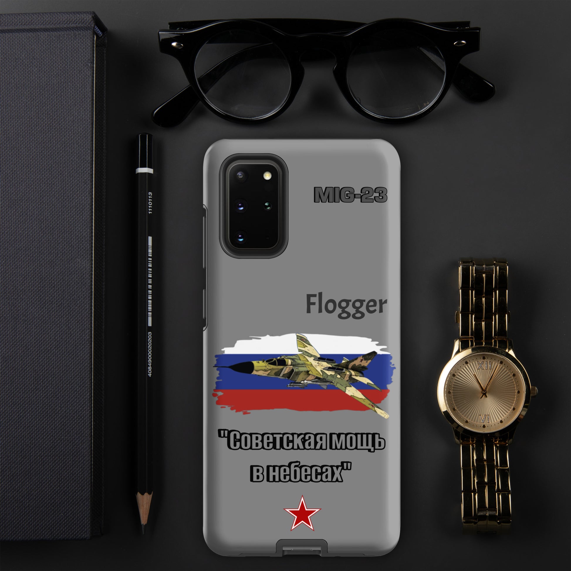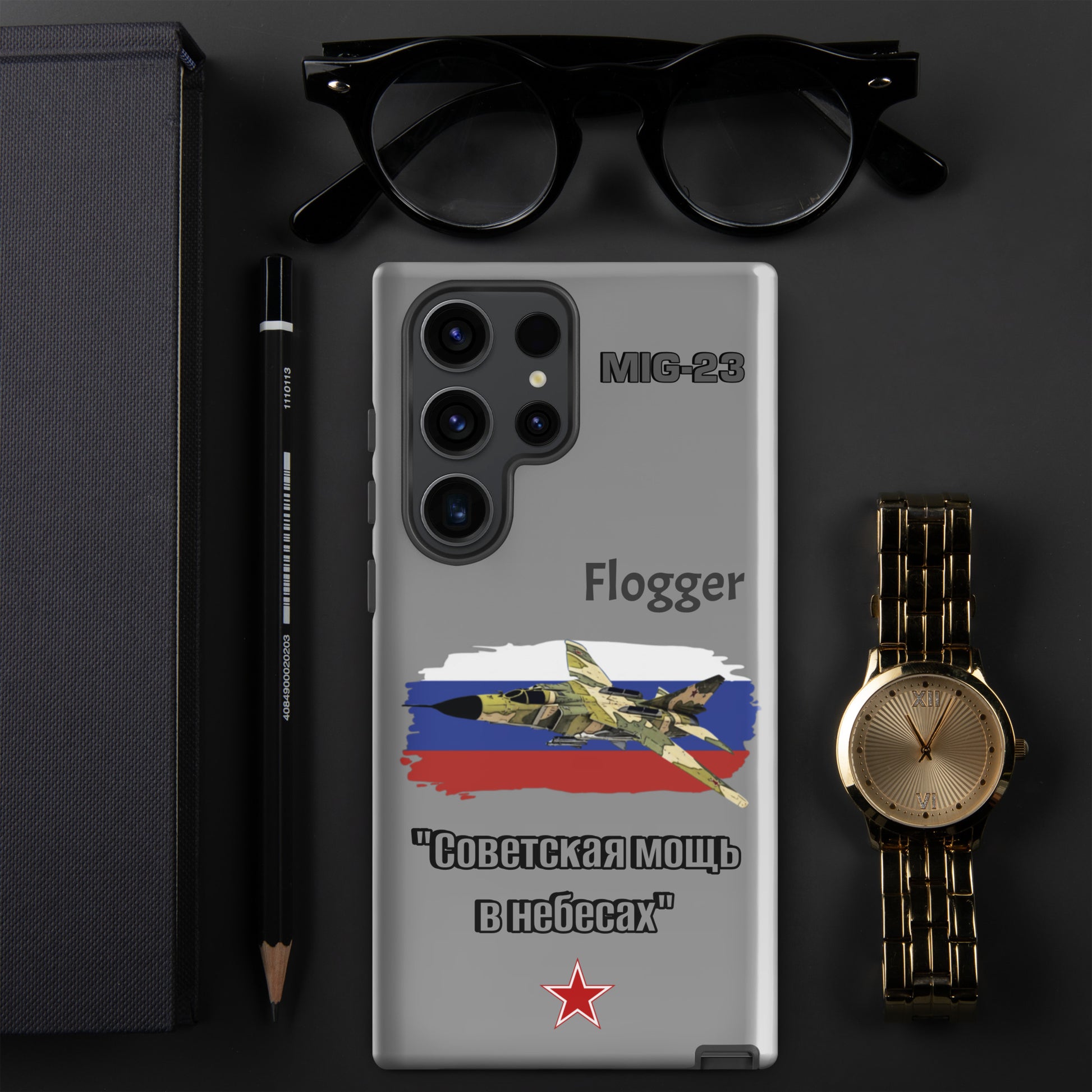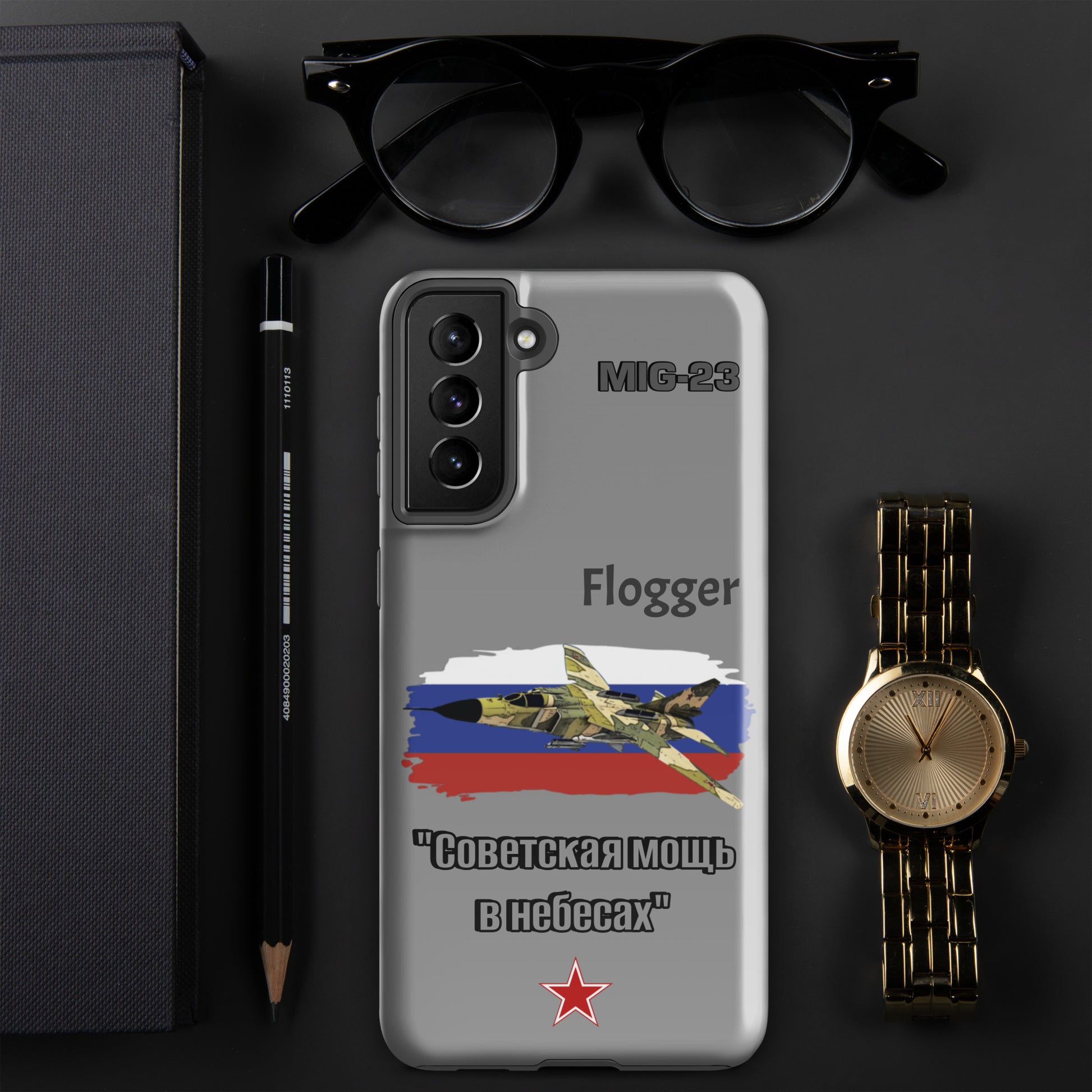 Elevate your Samsung device protection with our MiG-23 Flogger Power Case. This captivating design pays homage to the legendary MiG-23 Flogger, celebrated for its agility and prowess in the skies. Safeguard your device with the same precision and strength that define aviation excellence. Carry the legacy of the MiG-23 Flogger with pride and showcase your passion for aviation wherever you go.
