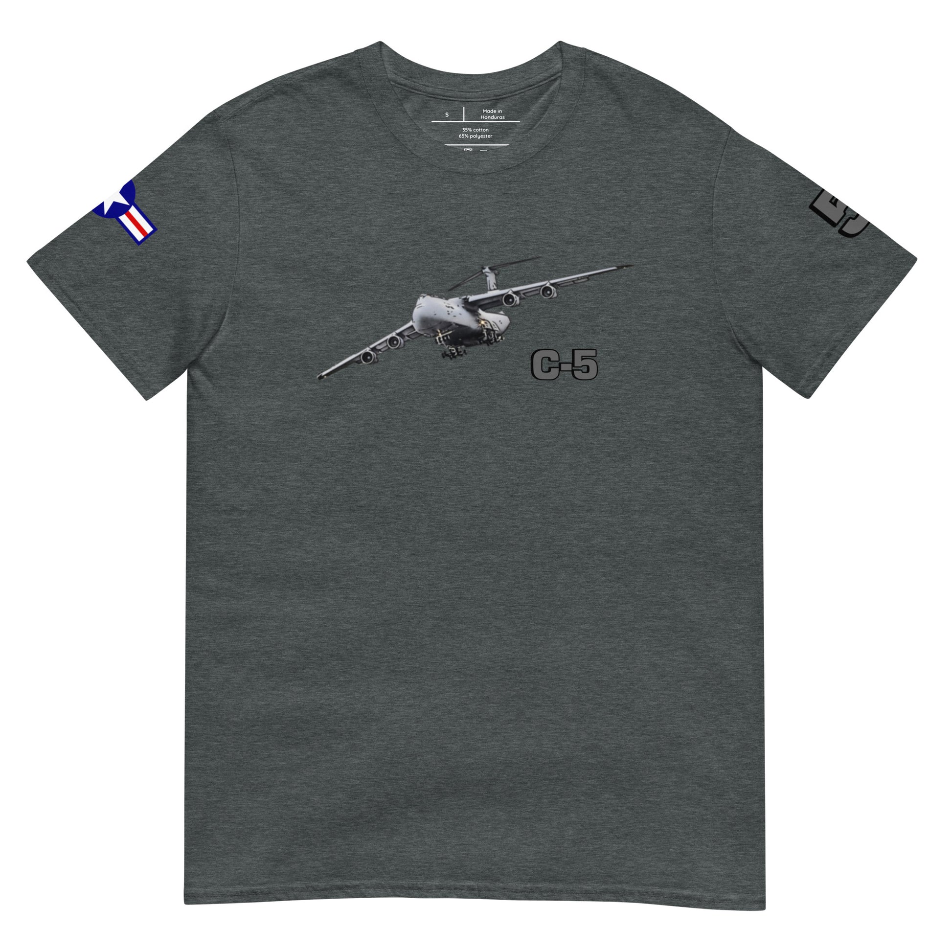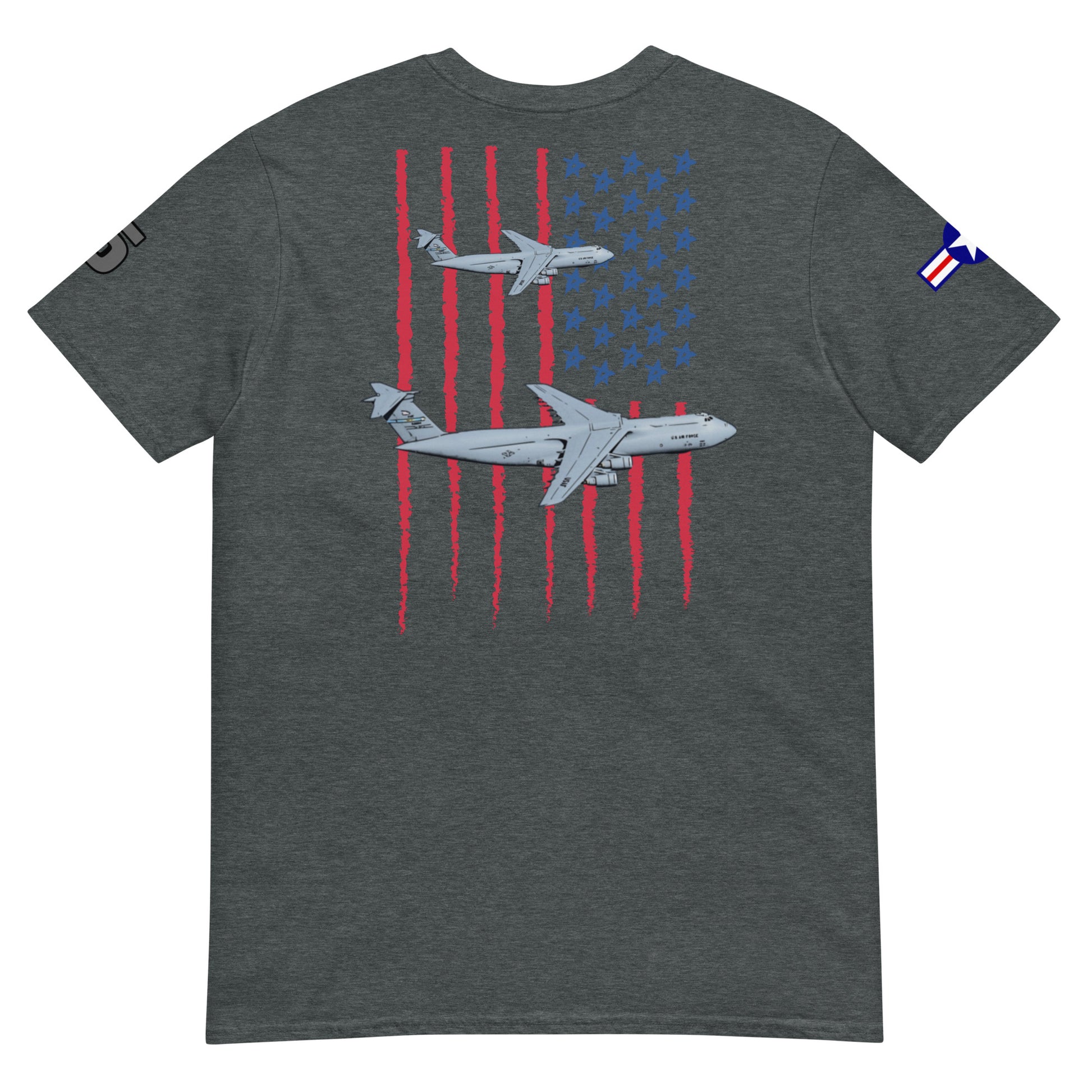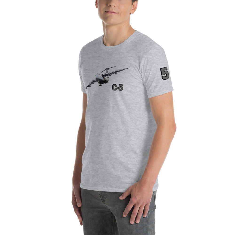 Elevate your style with our C-5 Galaxy Patriot T-Shirt, a tribute to the incredible might of American aviation. This shirt proudly features the iconic USA flag as a backdrop to the legendary C-5 Galaxy. Crafted for both comfort and style, it's the perfect way to showcase your admiration for this colossal aircraft and the spirit of aviation. Embrace the legacy of aerial excellence and make a statement with every step you take.
