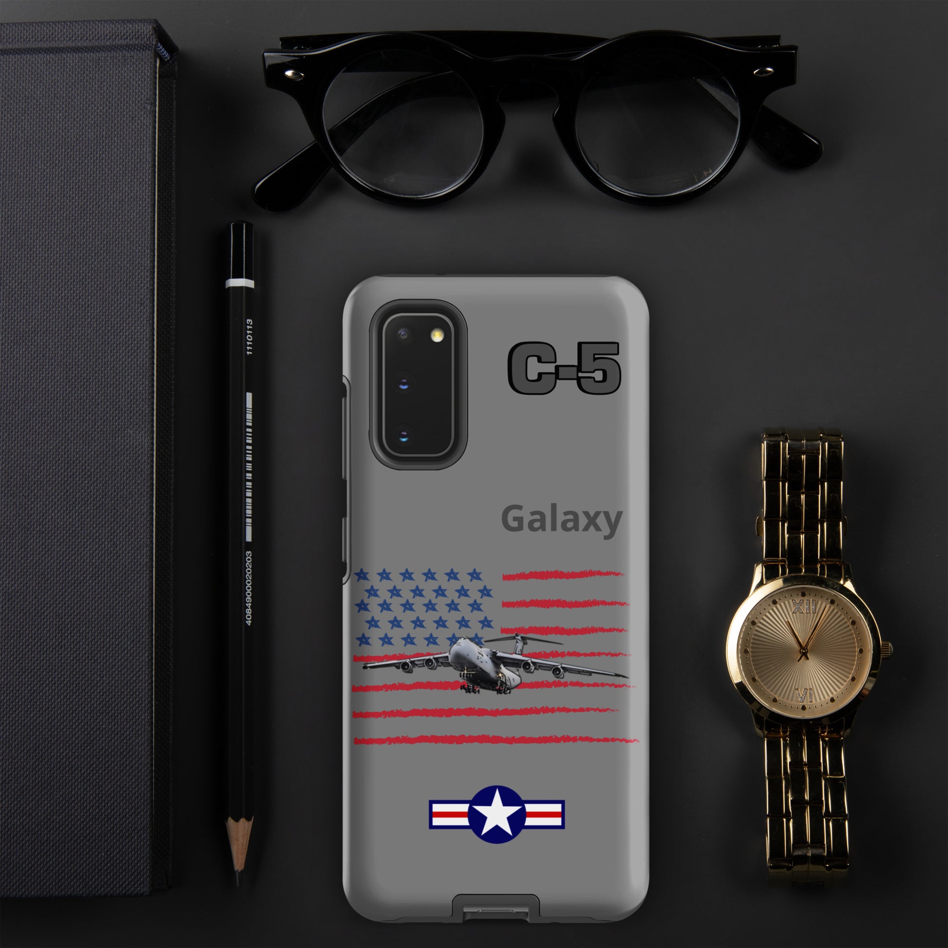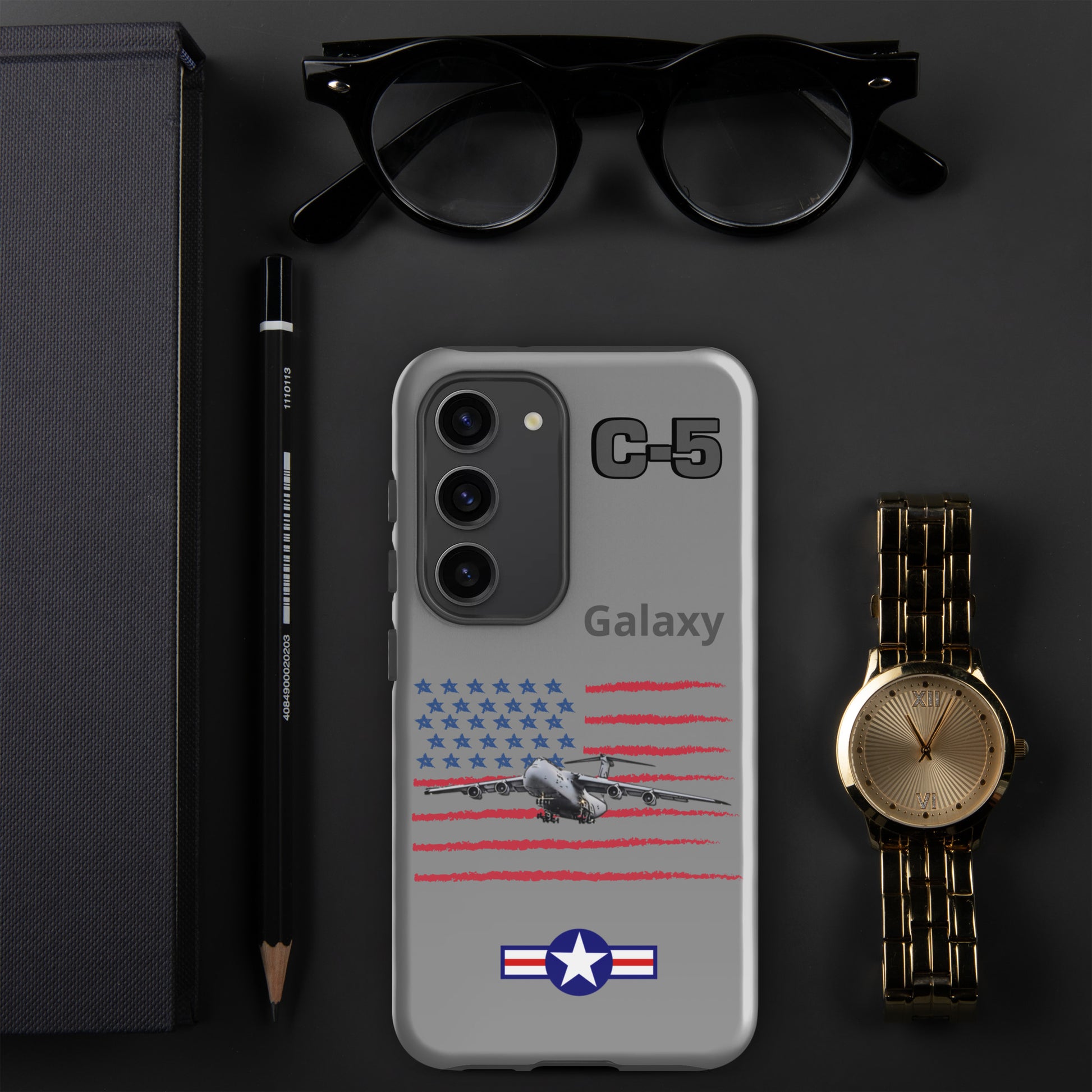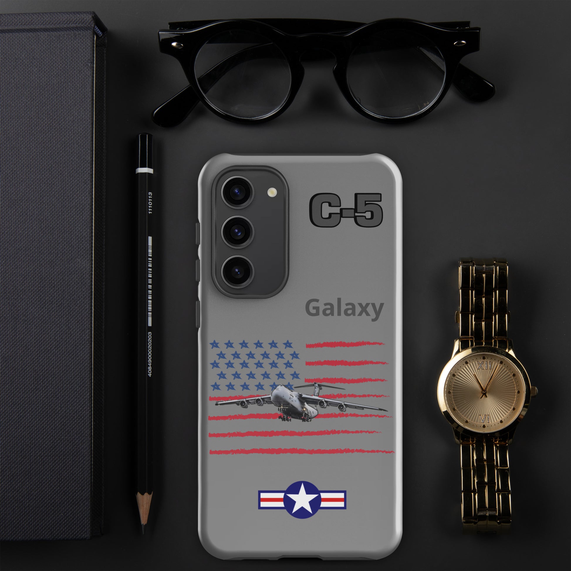 Elevate your Samsung device with our C-5 Galaxy Patriot Case. This design proudly features the iconic USA flag as a backdrop to the legendary C-5 Galaxy. Safeguard your device in style while celebrating the Galaxy's legacy as a symbol of American aviation might. Carry the spirit of aviation and patriotism wherever you go.