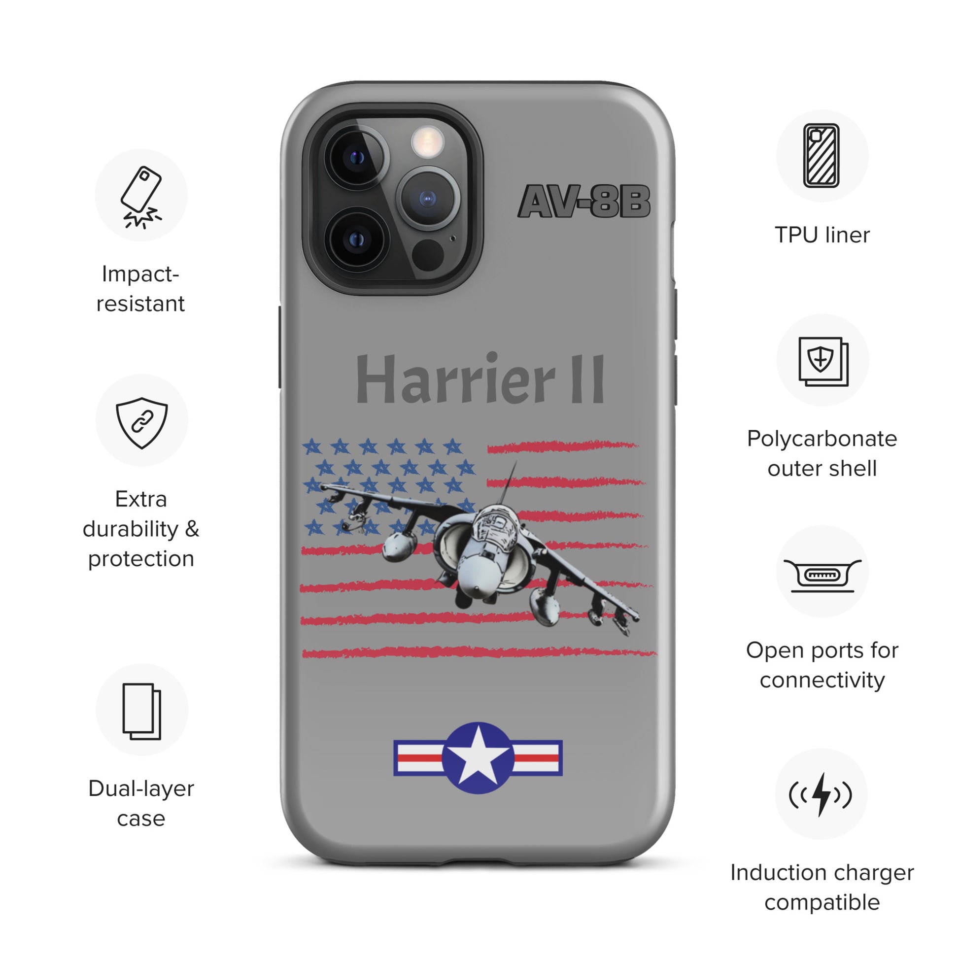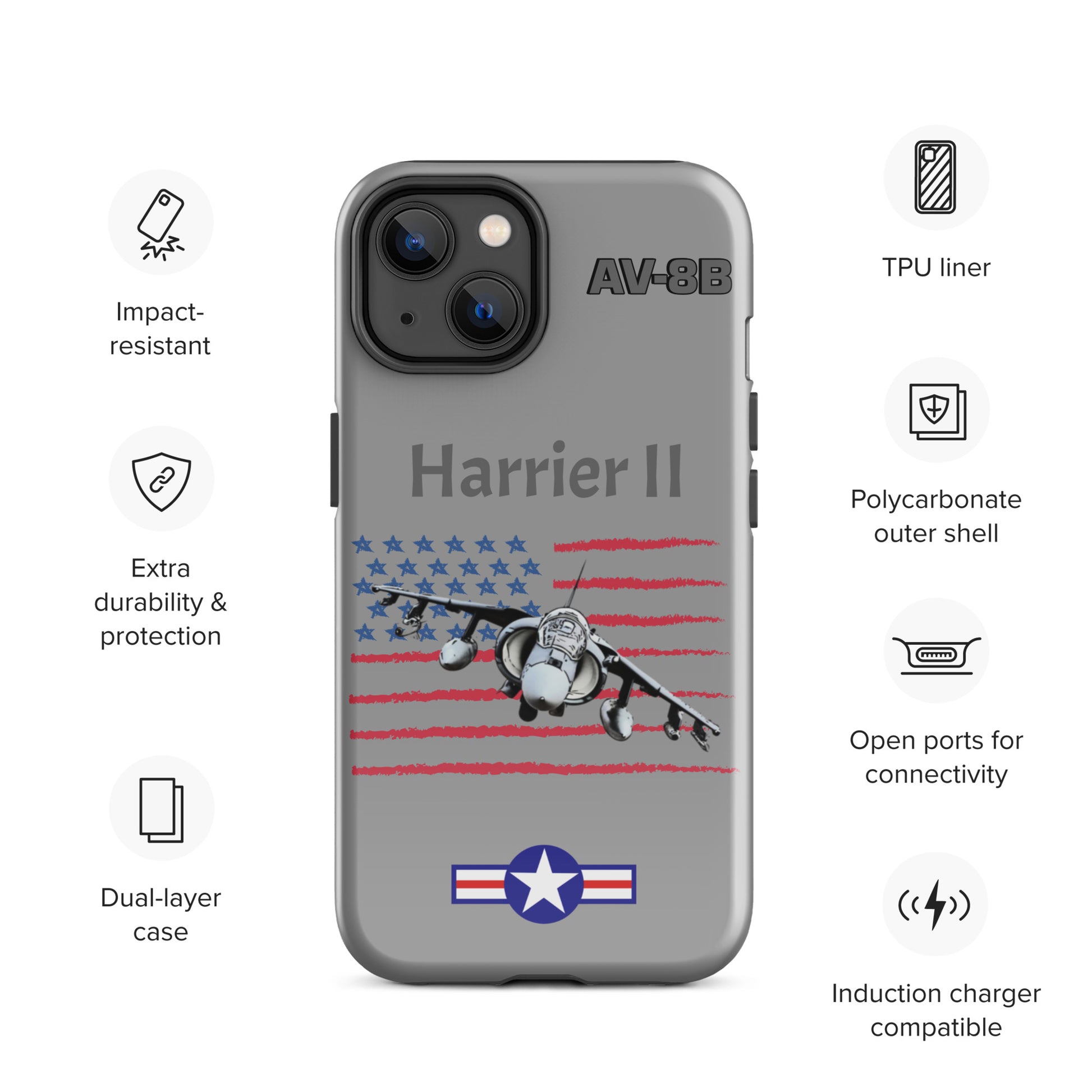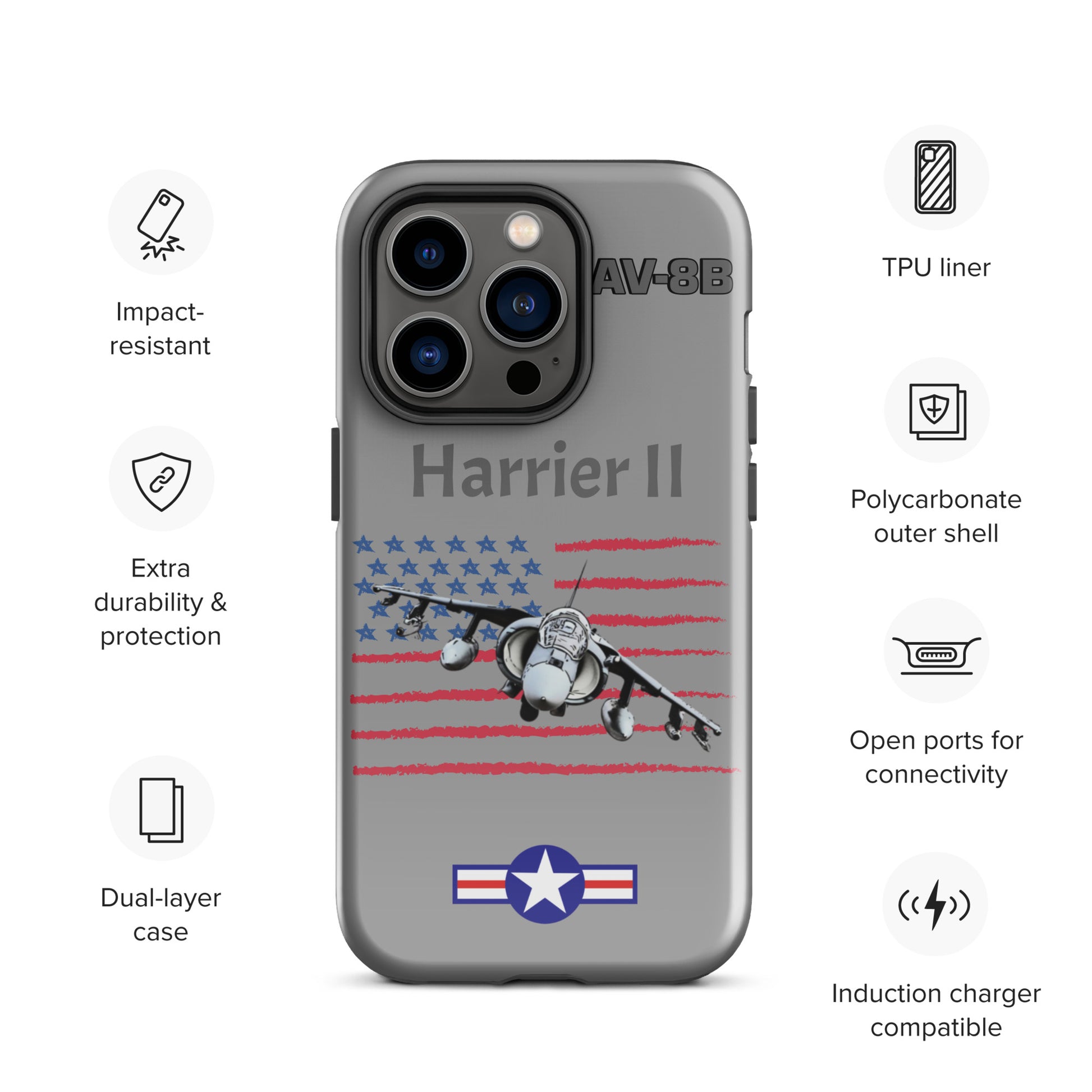 Elevate your iPhone's style and protection with our AV-8B Harrier II Patriot Case. This unique design showcases the AV-8B Harrier II alongside the iconic USA flag. Safeguard your iPhone while celebrating the Harrier's legacy as a symbol of vertical flight and American air power. Carry the spirit of aviation and patriotism wherever you go.
