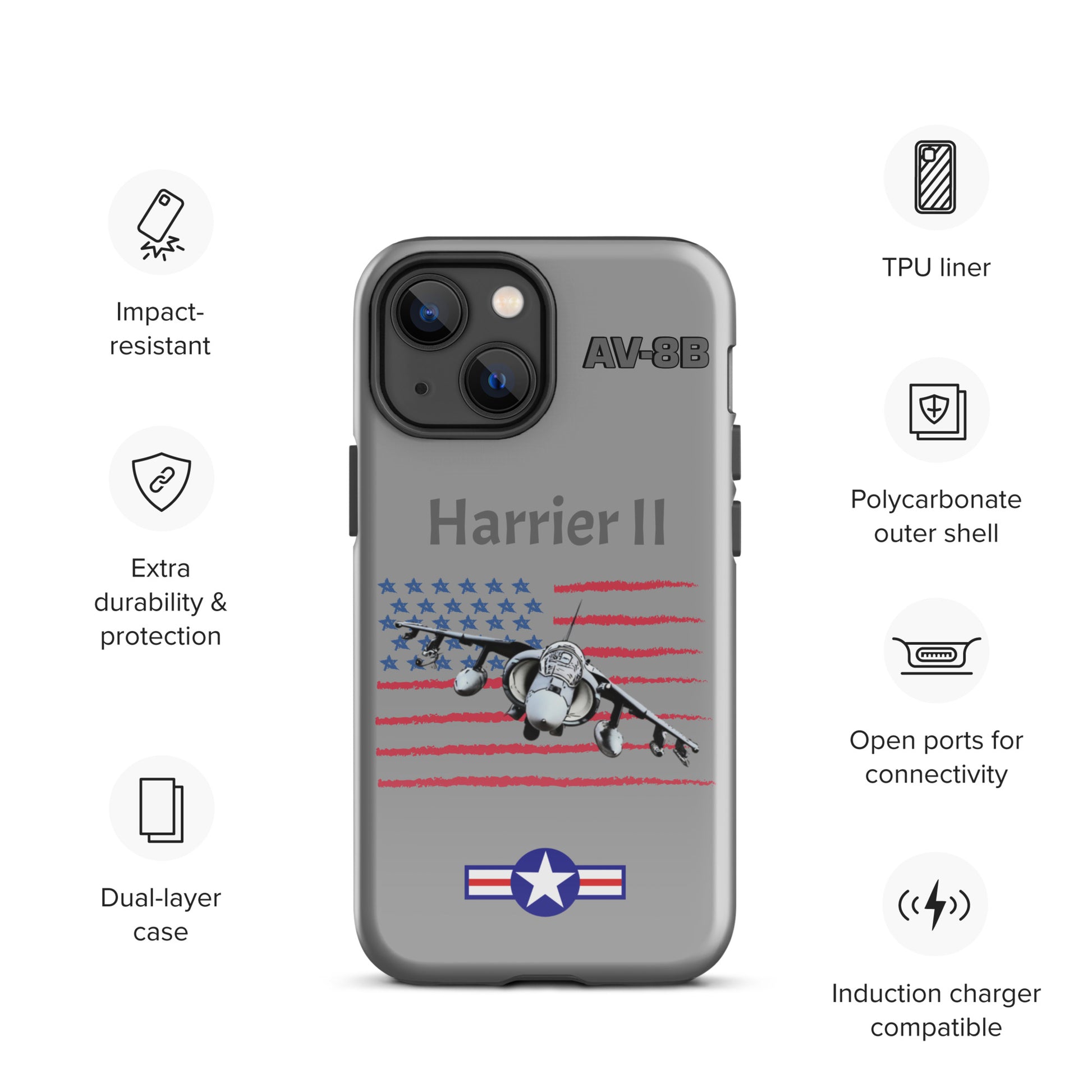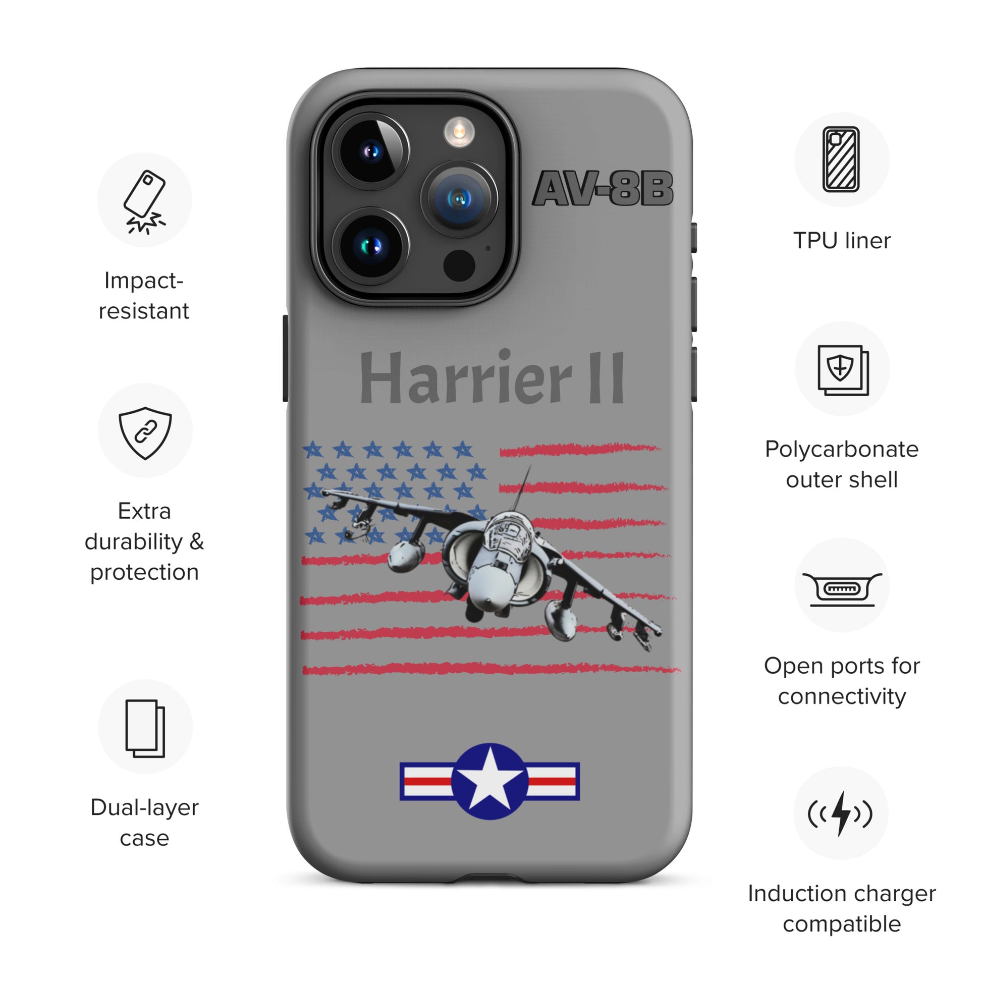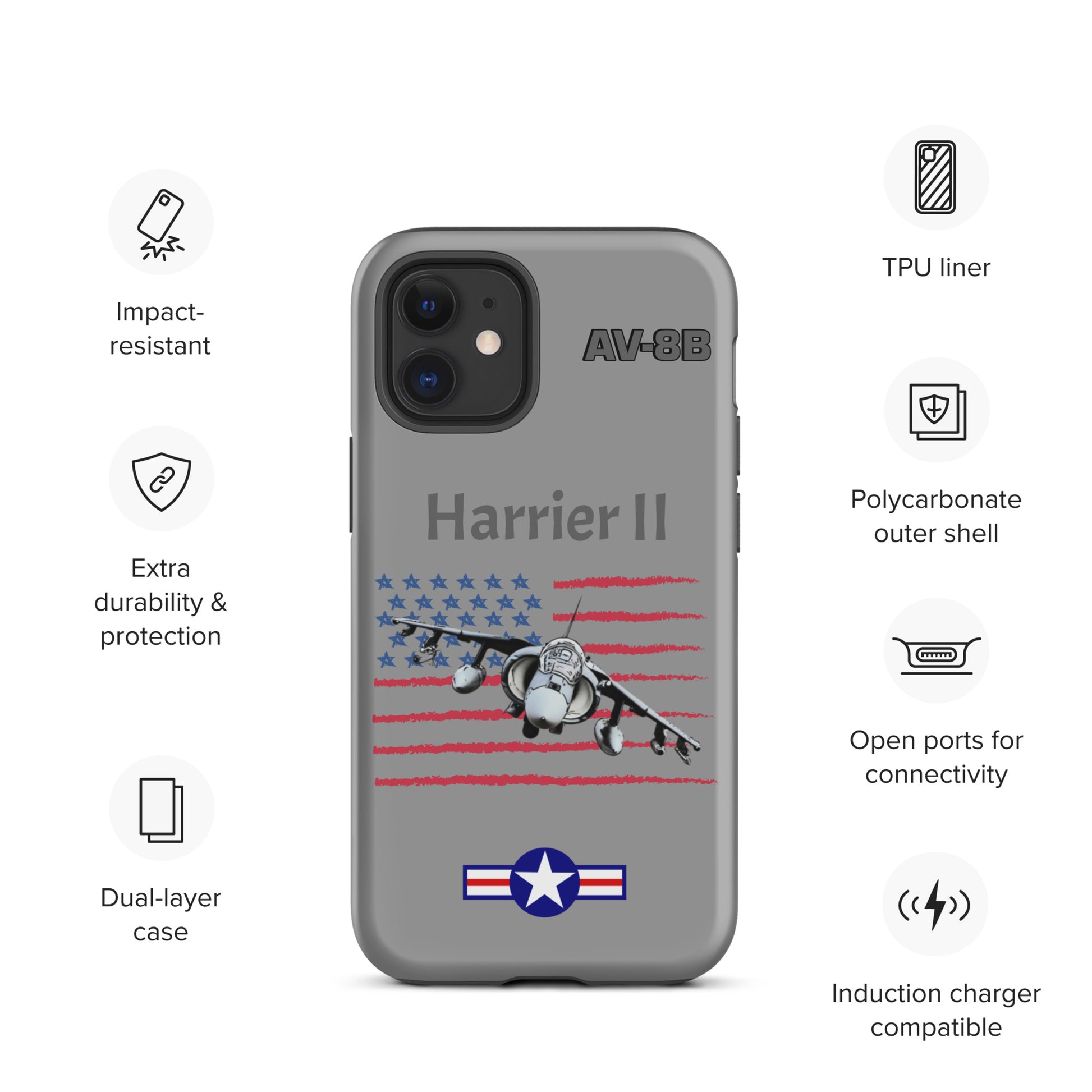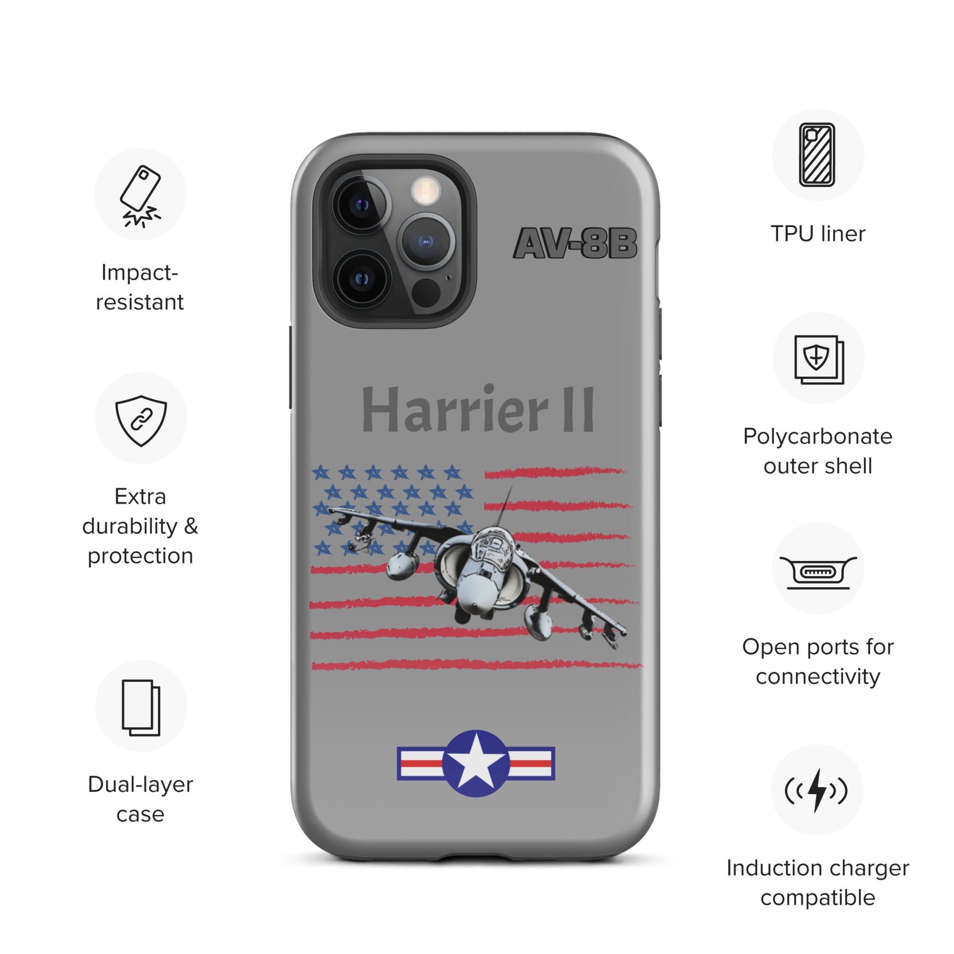 Elevate your iPhone's style and protection with our AV-8B Harrier II Patriot Case. This unique design showcases the AV-8B Harrier II alongside the iconic USA flag. Safeguard your iPhone while celebrating the Harrier's legacy as a symbol of vertical flight and American air power. Carry the spirit of aviation and patriotism wherever you go.