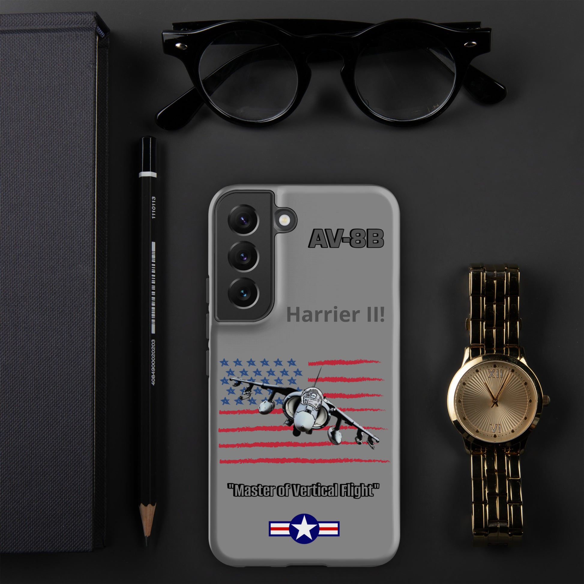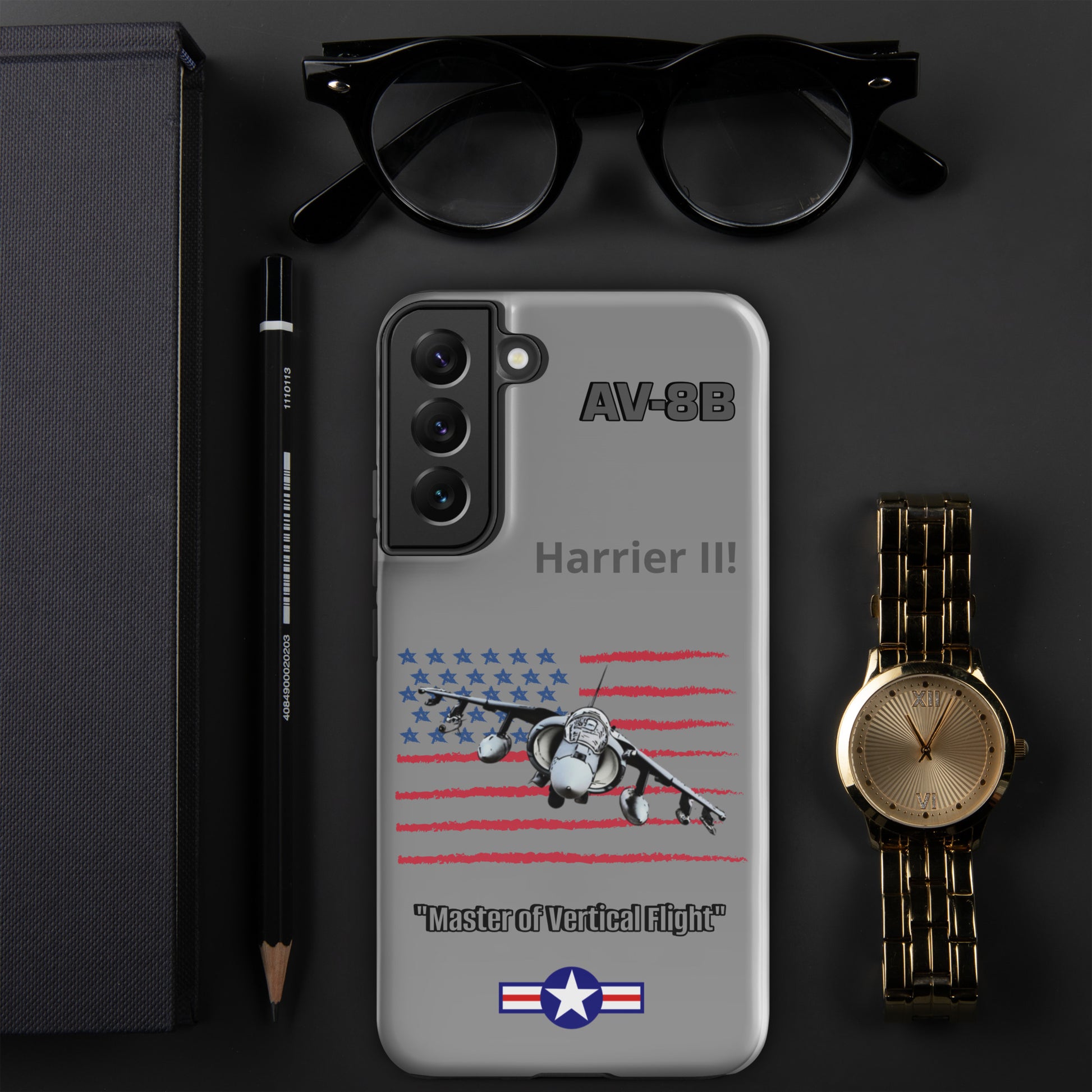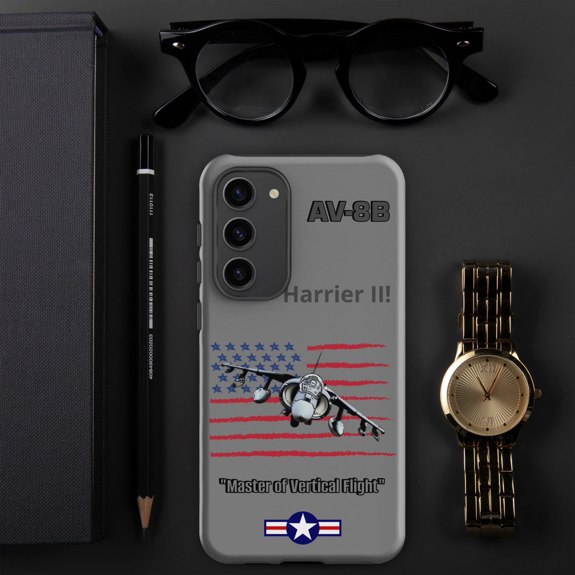 Elevate your Samsung's style and protection with our AV-8B Harrier II Patriot Case. This unique design features the AV-8B Harrier II alongside the iconic USA flag. Safeguard your Samsung device while celebrating the Harrier's legacy as a symbol of vertical flight and American air power. Carry the spirit of aviation and patriotism wherever you go.
