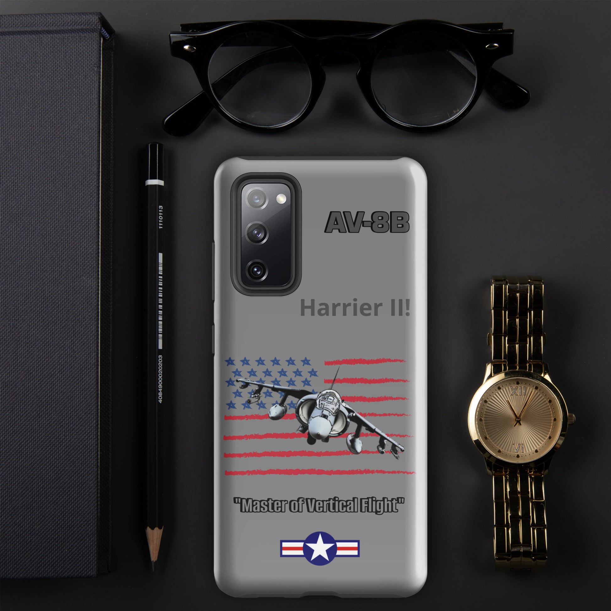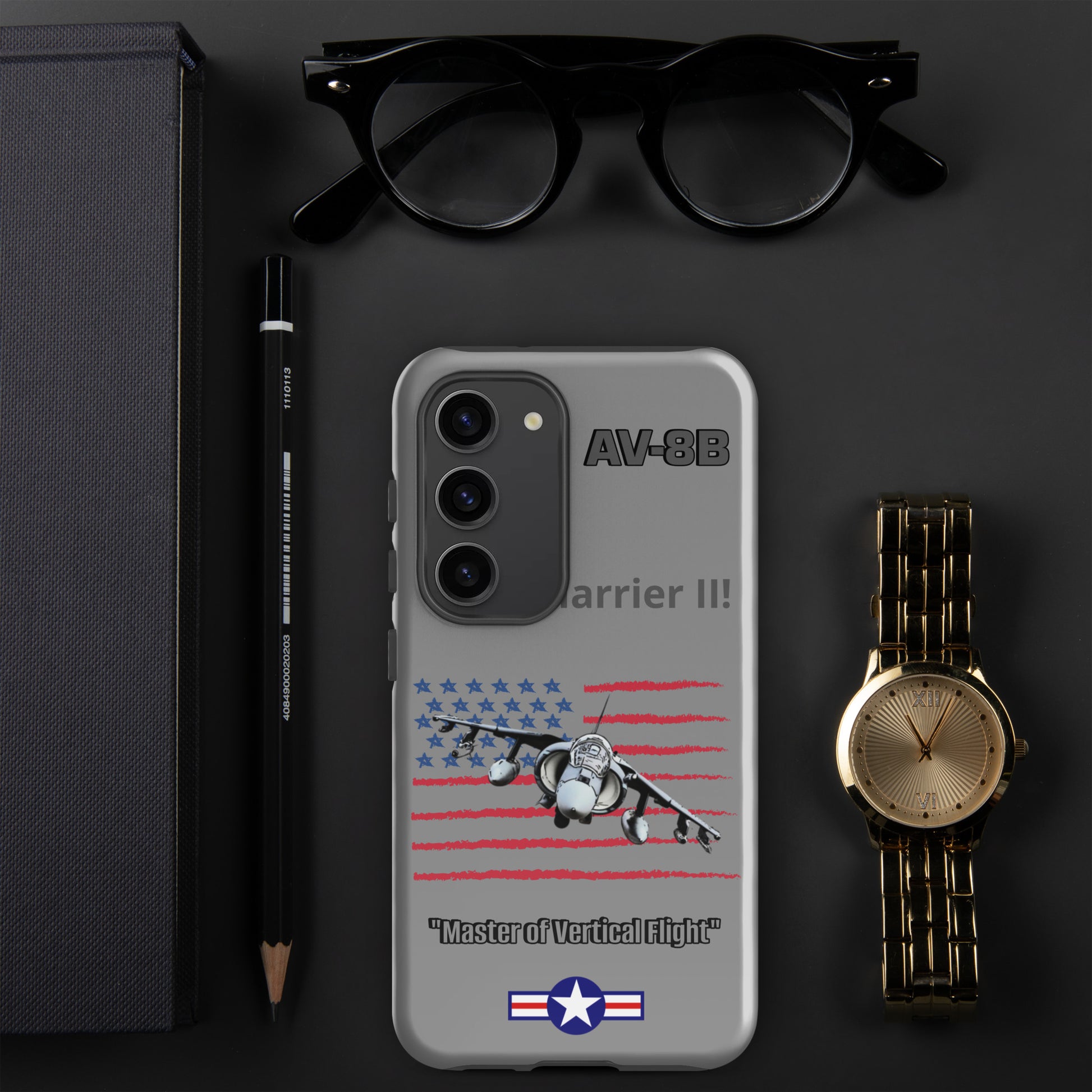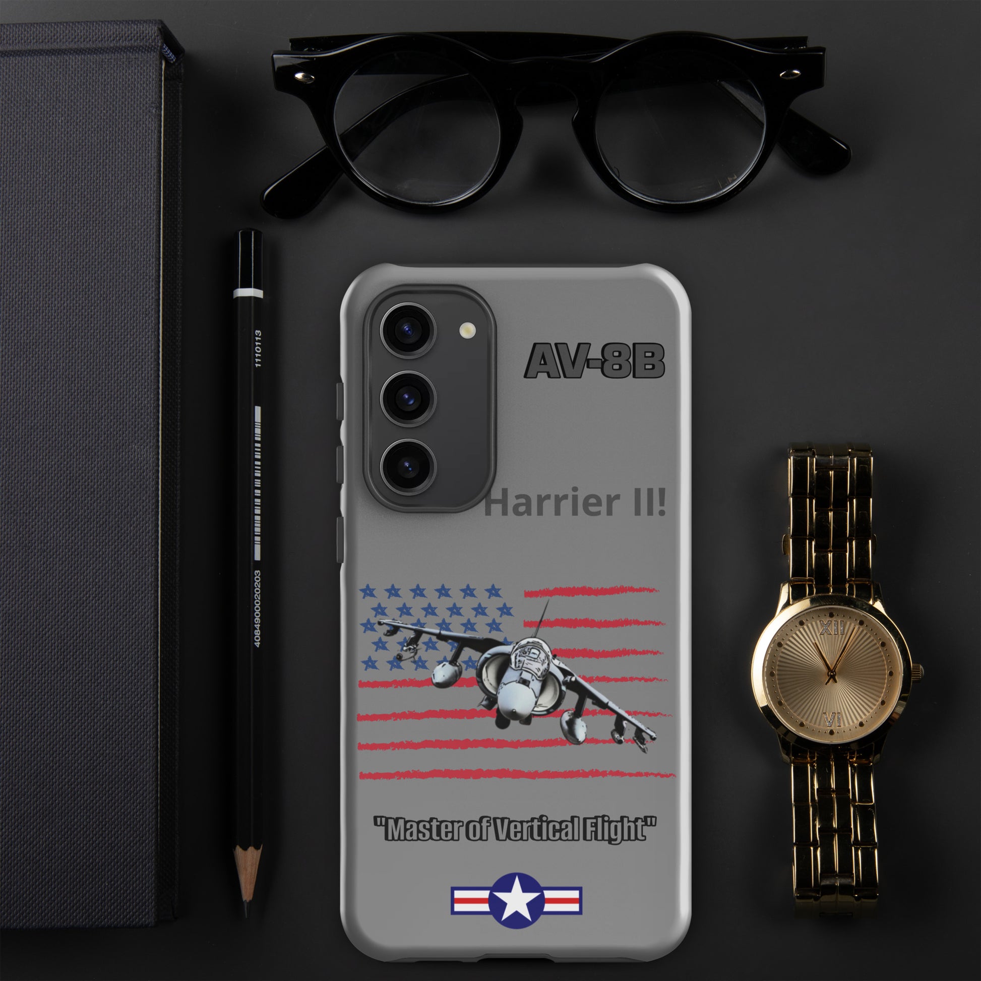 Elevate your Samsung's style and protection with our AV-8B Harrier II Patriot Case. This unique design features the AV-8B Harrier II alongside the iconic USA flag. Safeguard your Samsung device while celebrating the Harrier's legacy as a symbol of vertical flight and American air power. Carry the spirit of aviation and patriotism wherever you go.