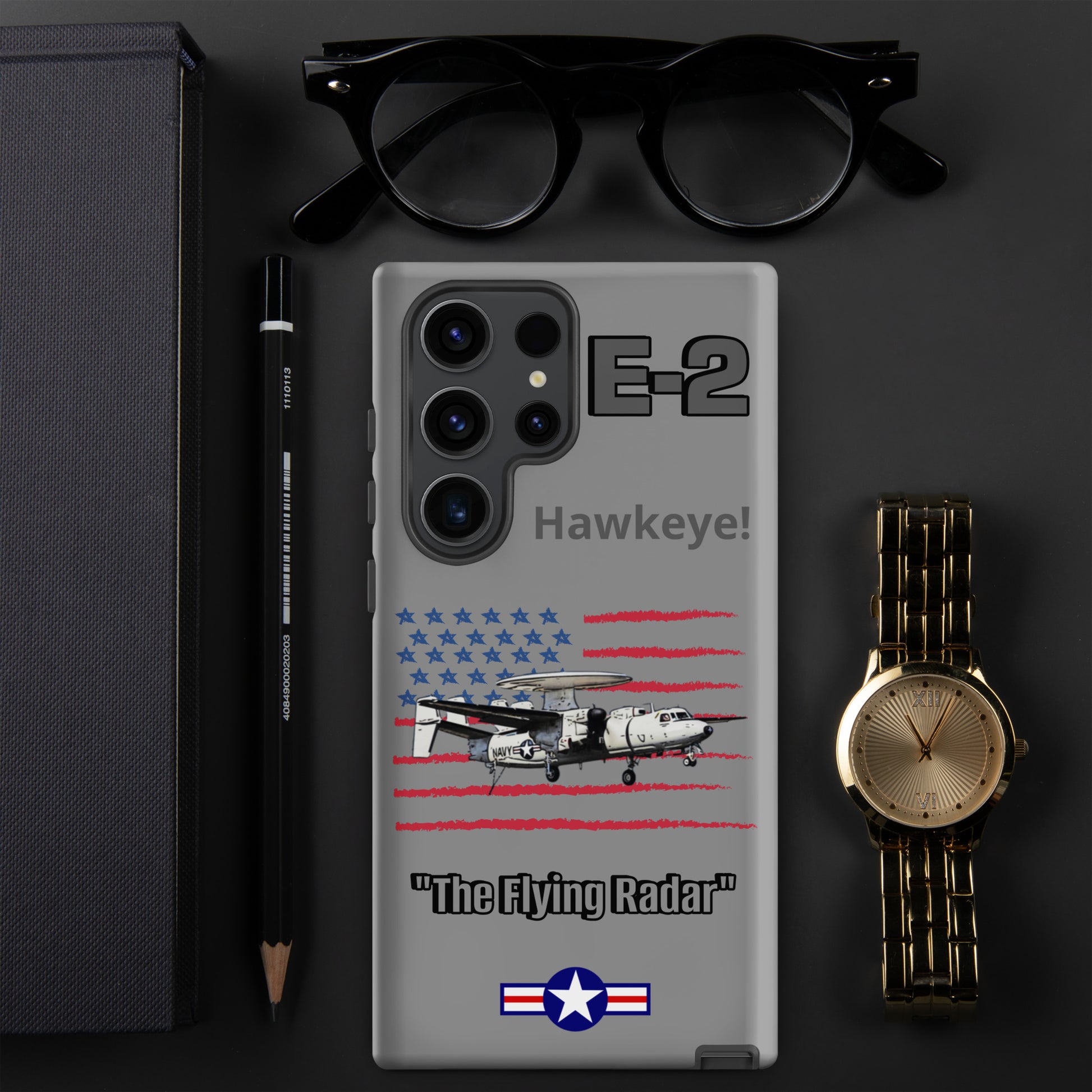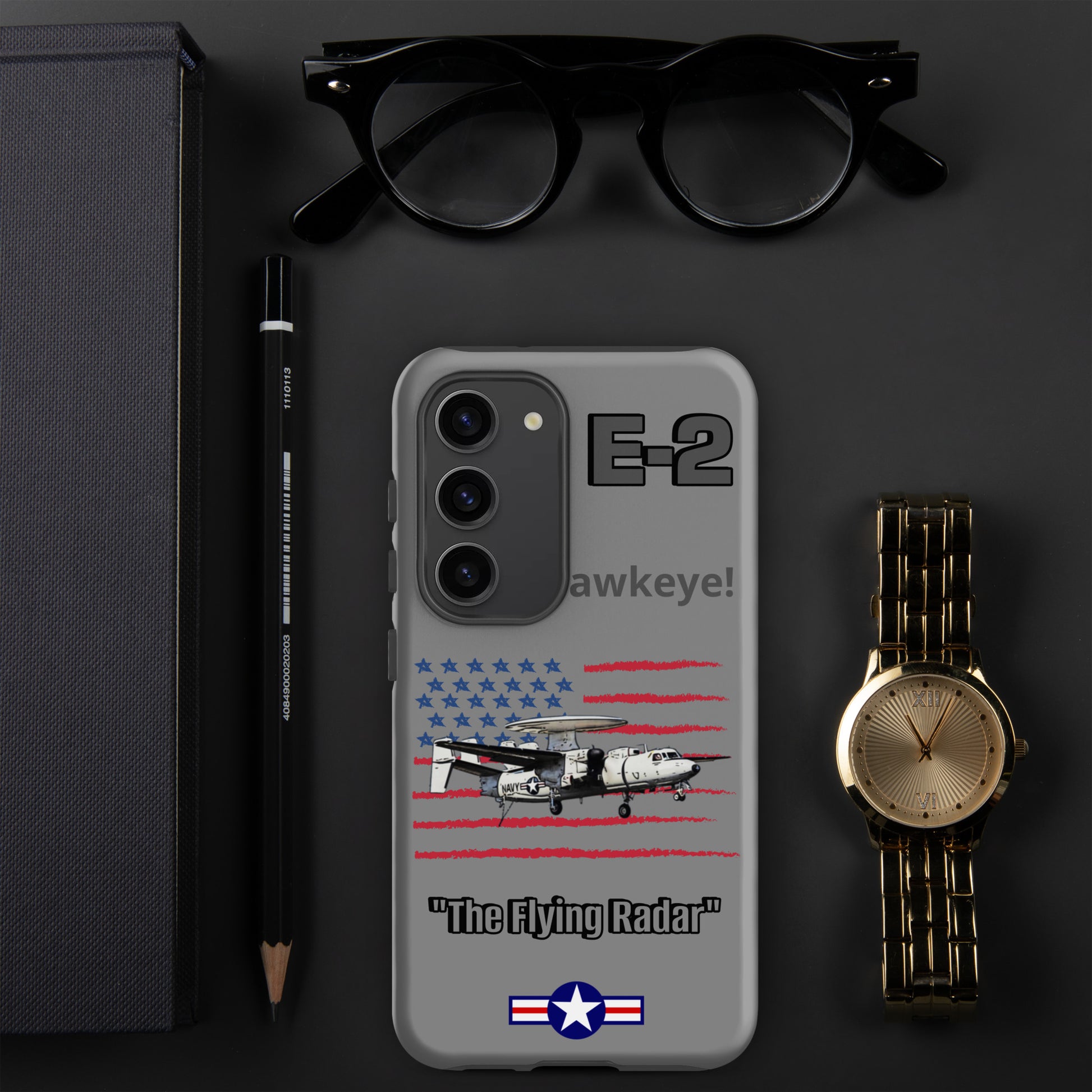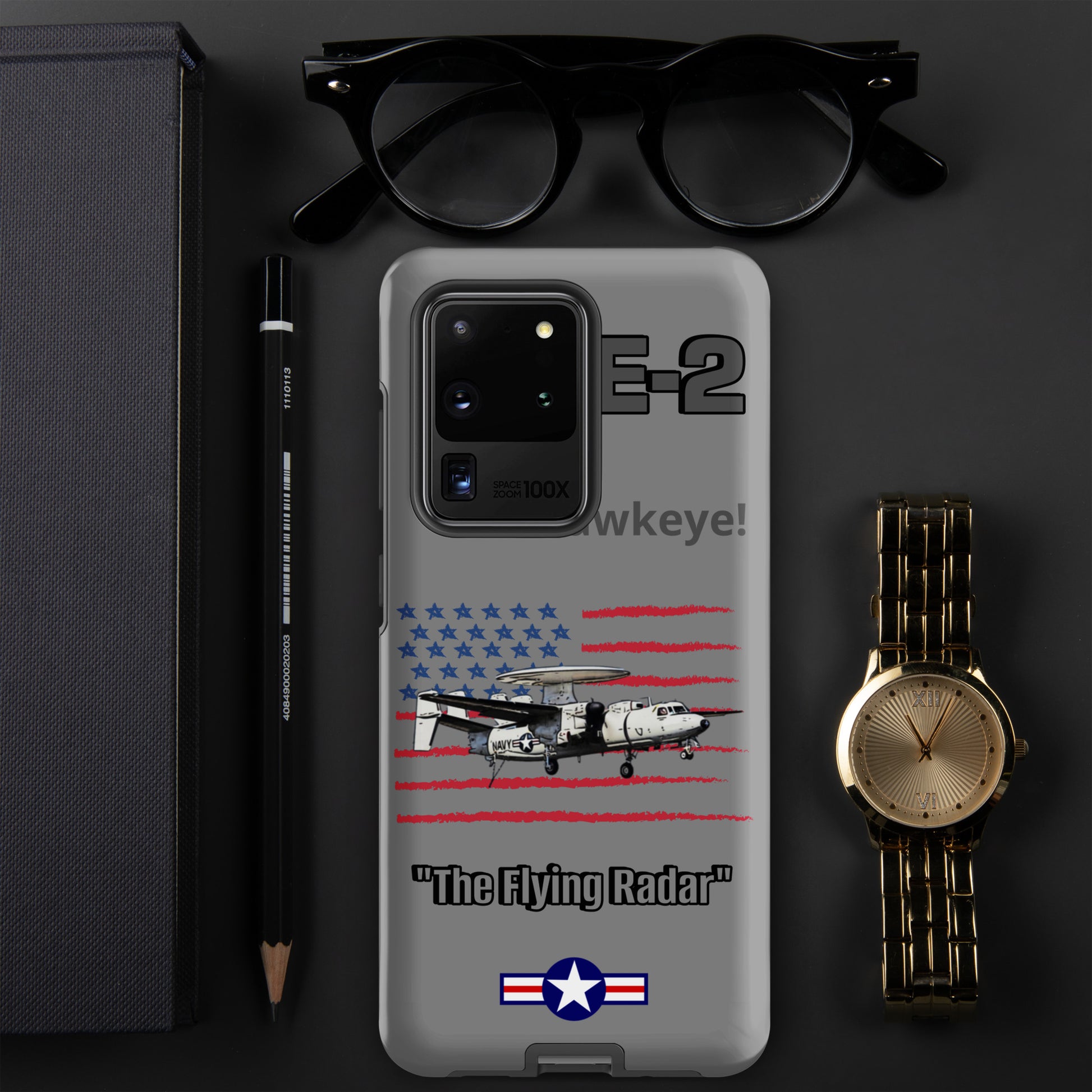 Elevate your Samsung's protection with our E-2 Hawkeye Patriot Case. This design proudly features the iconic USA flag as a backdrop to the legendary E-2 Hawkeye. Safeguard your device in style while celebrating the Hawkeye's legacy as a symbol of American aviation excellence. Carry the spirit of airborne radar and reconnaissance wherever you go.