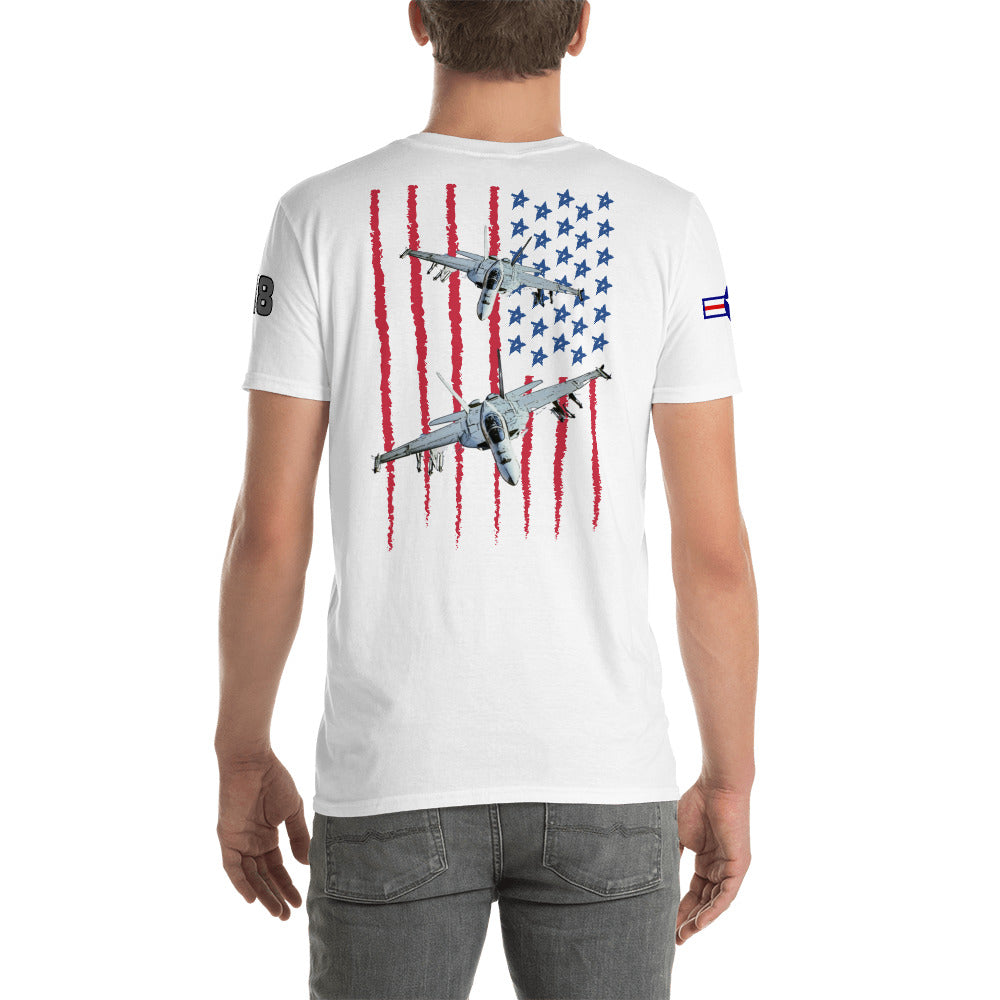 Unleash the spirit of aviation with our F/A-18 Hornet T-shirt. Featuring a stunning depiction of this iconic fighter jet in mid-flight, it's a tribute to the legacy of American air power. Crafted with passion, this shirt lets you wear your love for aviation proudly. Show your appreciation for the F/A-18 Hornet's unmatched prowess and style. Elevate your wardrobe with this aviation enthusiast's must-have.