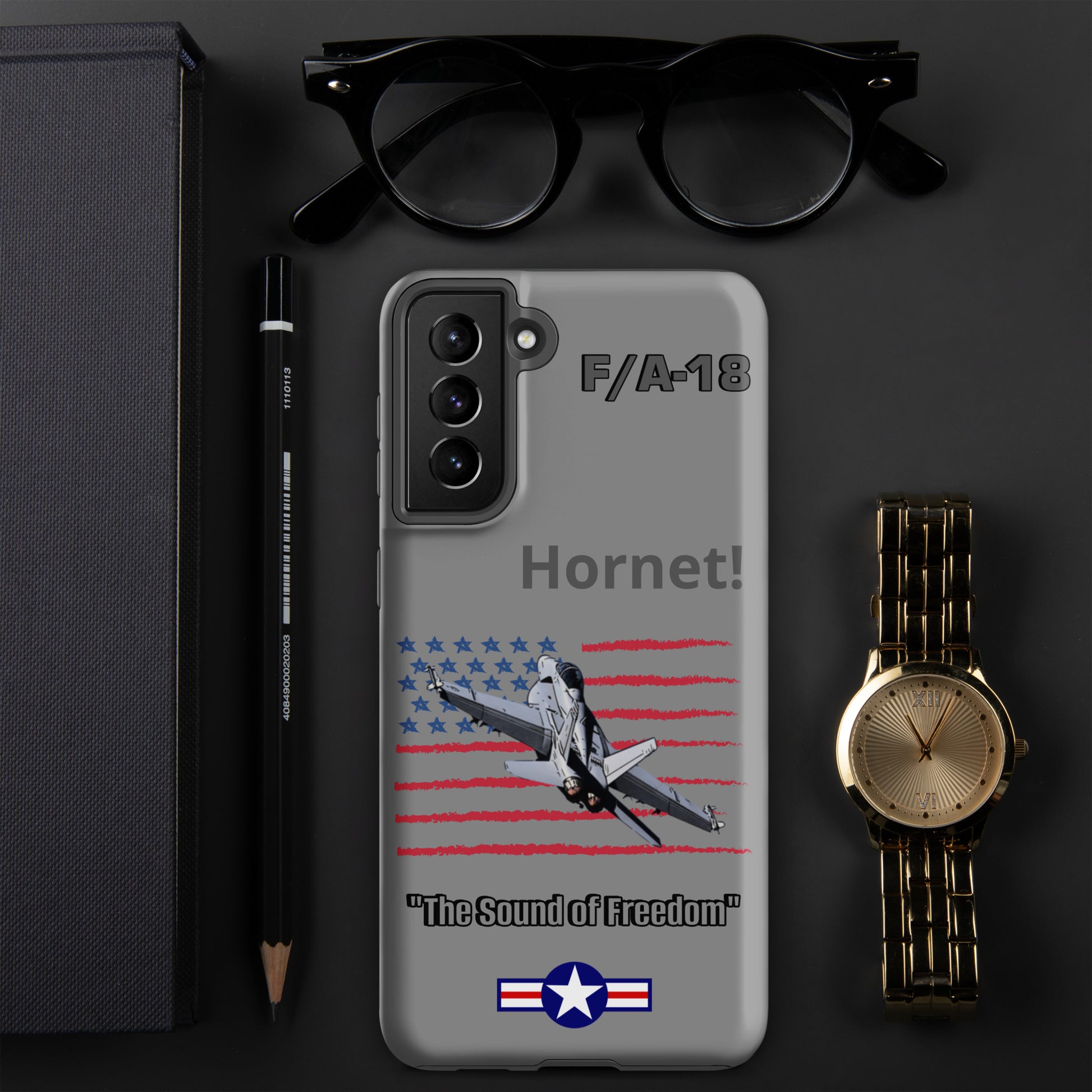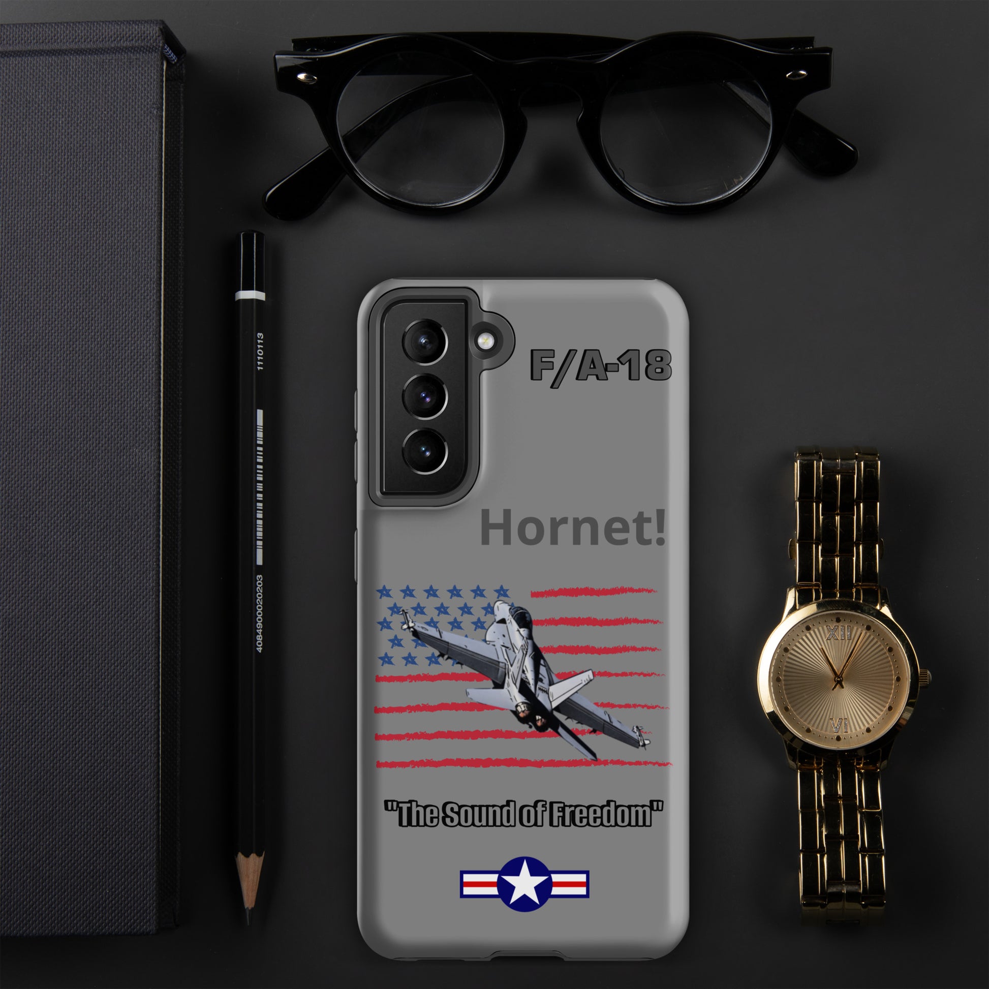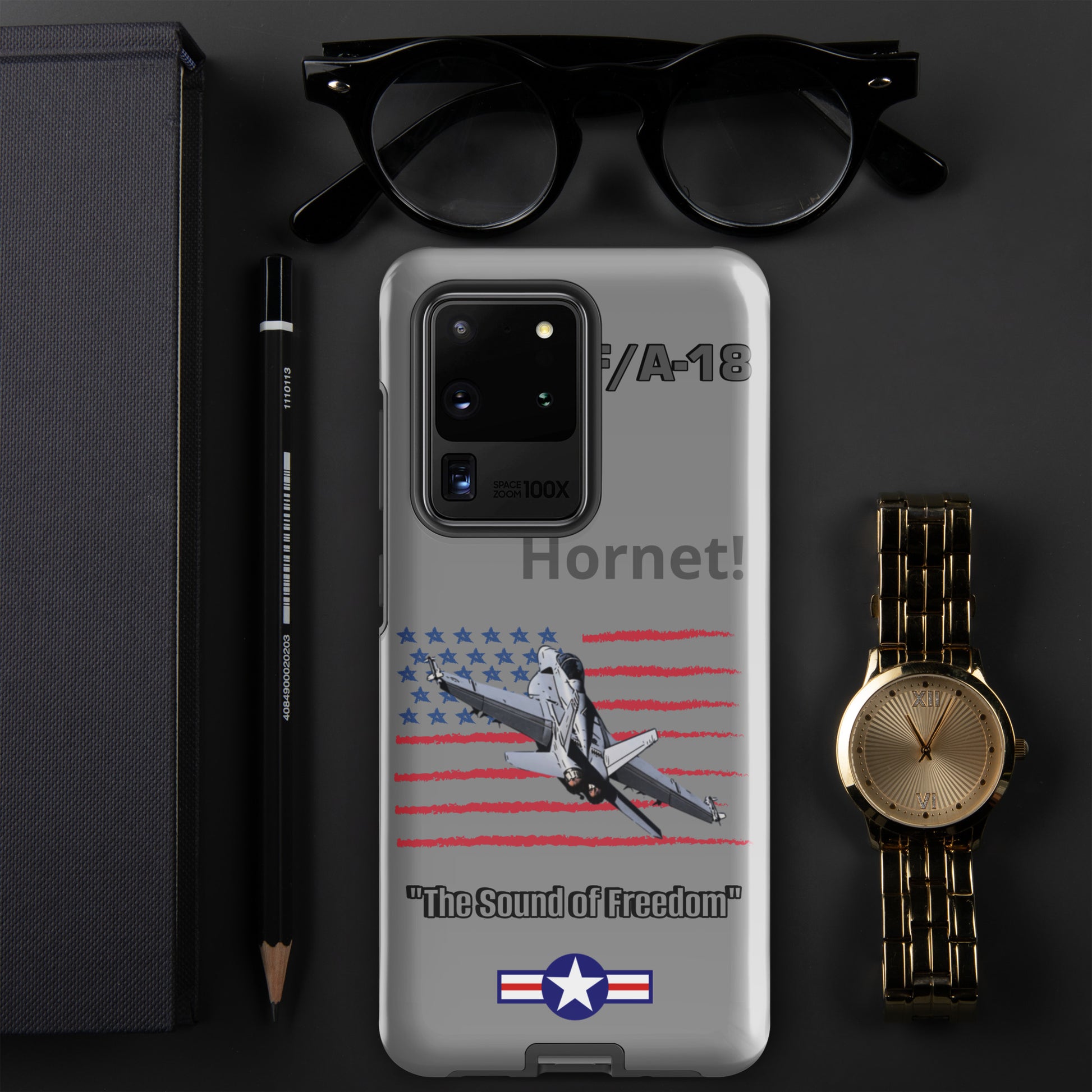 Elevate your Samsung device's style and protection with our F/A-18 Hornet Patriot Case. This distinctive design showcases the legendary F/A-18 Hornet soaring against the backdrop of the American flag. Safeguard your Samsung device in style while celebrating the Hornet's legacy as a symbol of American aviation excellence. Carry the spirit of aviation and patriotism wherever you go.
