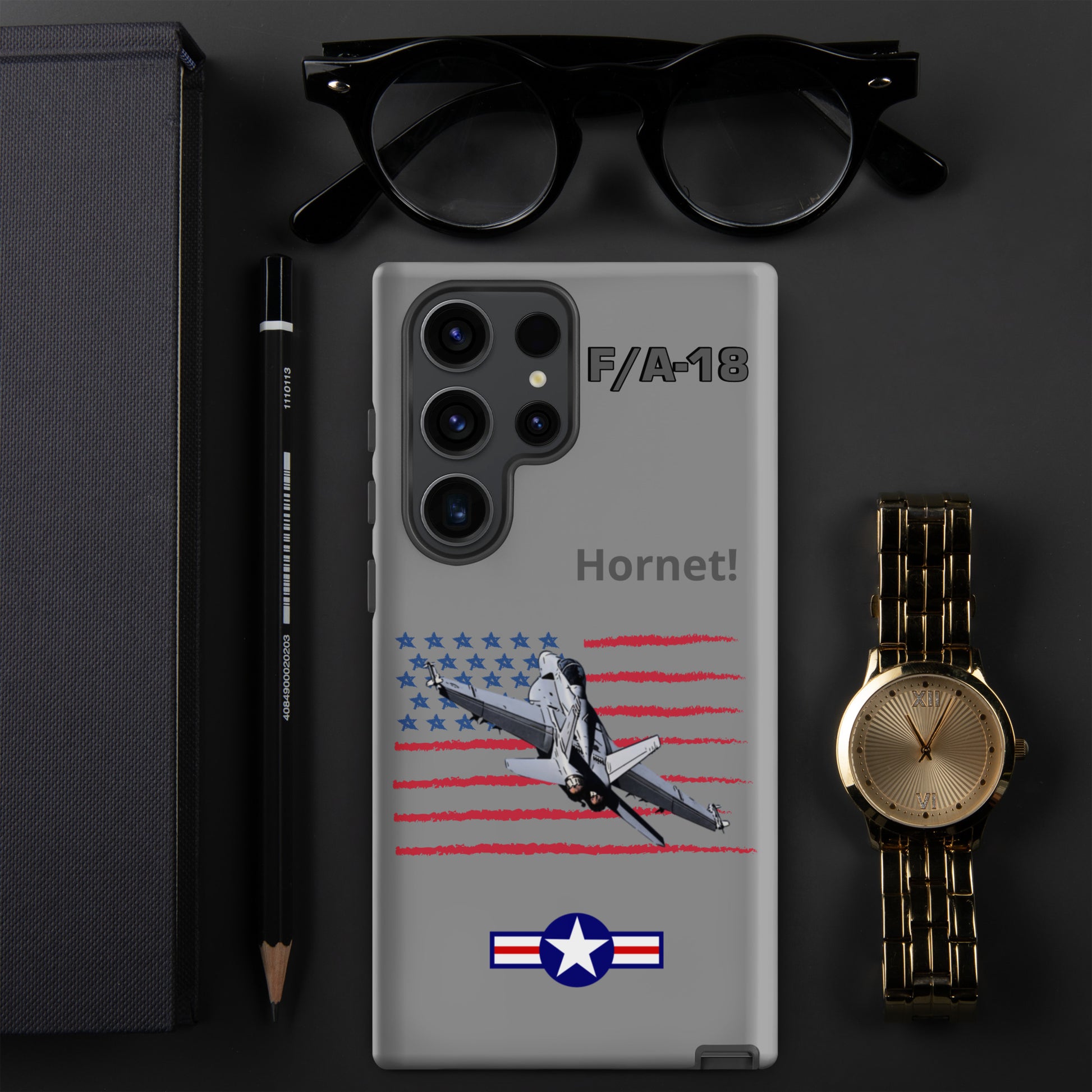 Elevate your Samsung device's style and protection with our F/A-18 Hornet Patriot Case. This distinctive design showcases the legendary F/A-18 Hornet soaring against the backdrop of the American flag. Safeguard your Samsung device in style while celebrating the Hornet's legacy as a symbol of American aviation excellence. Carry the spirit of aviation and patriotism wherever you go.