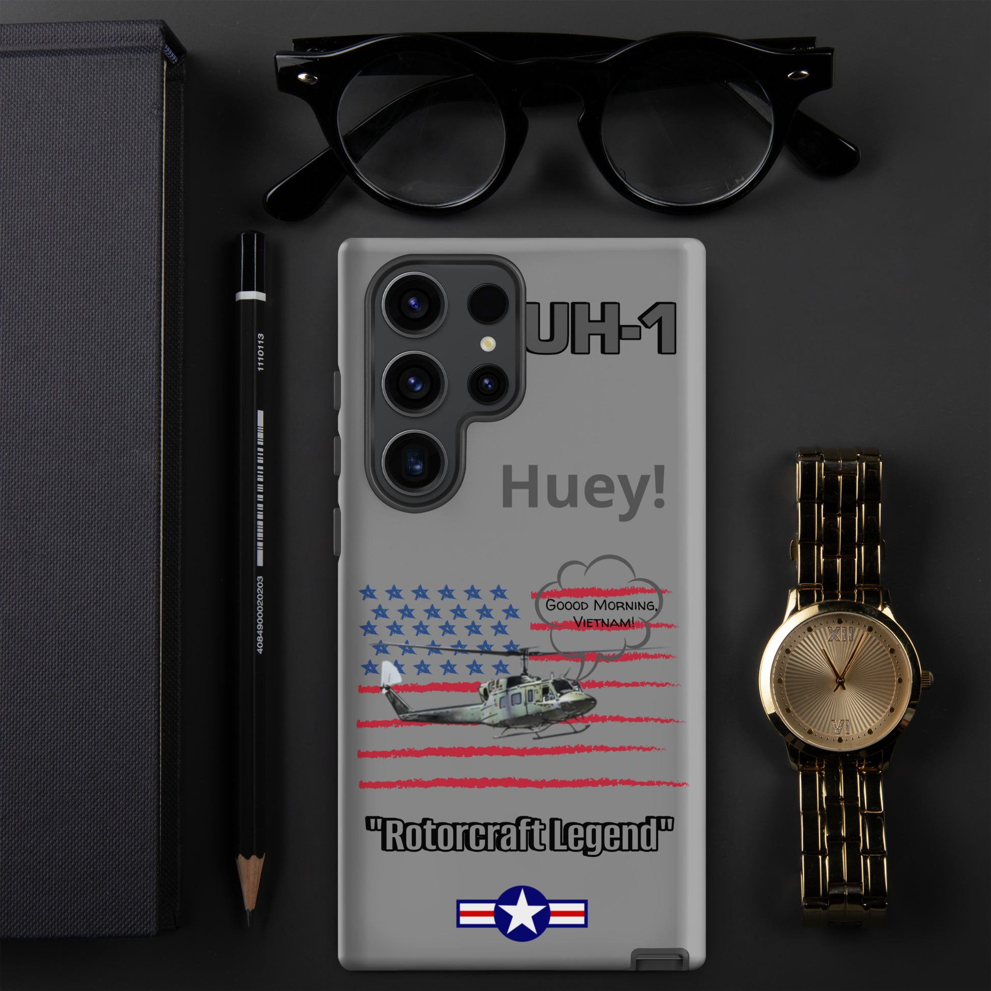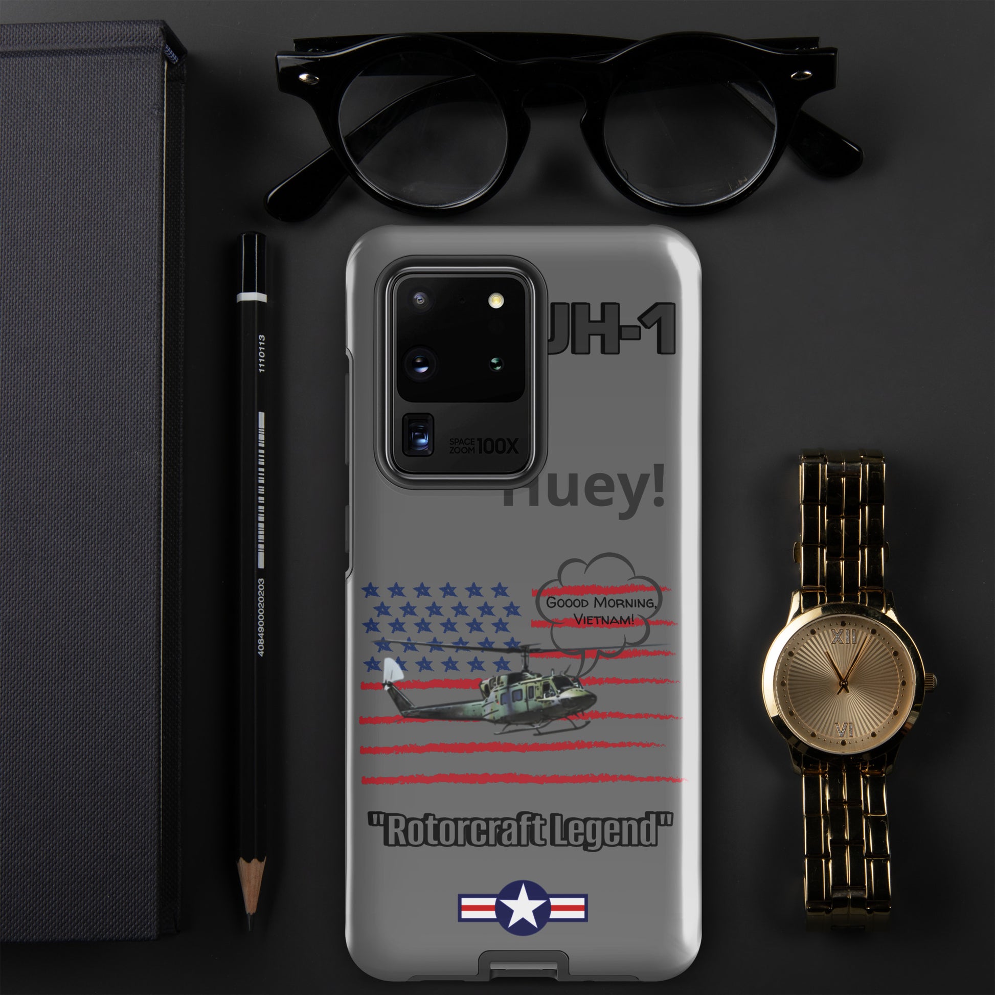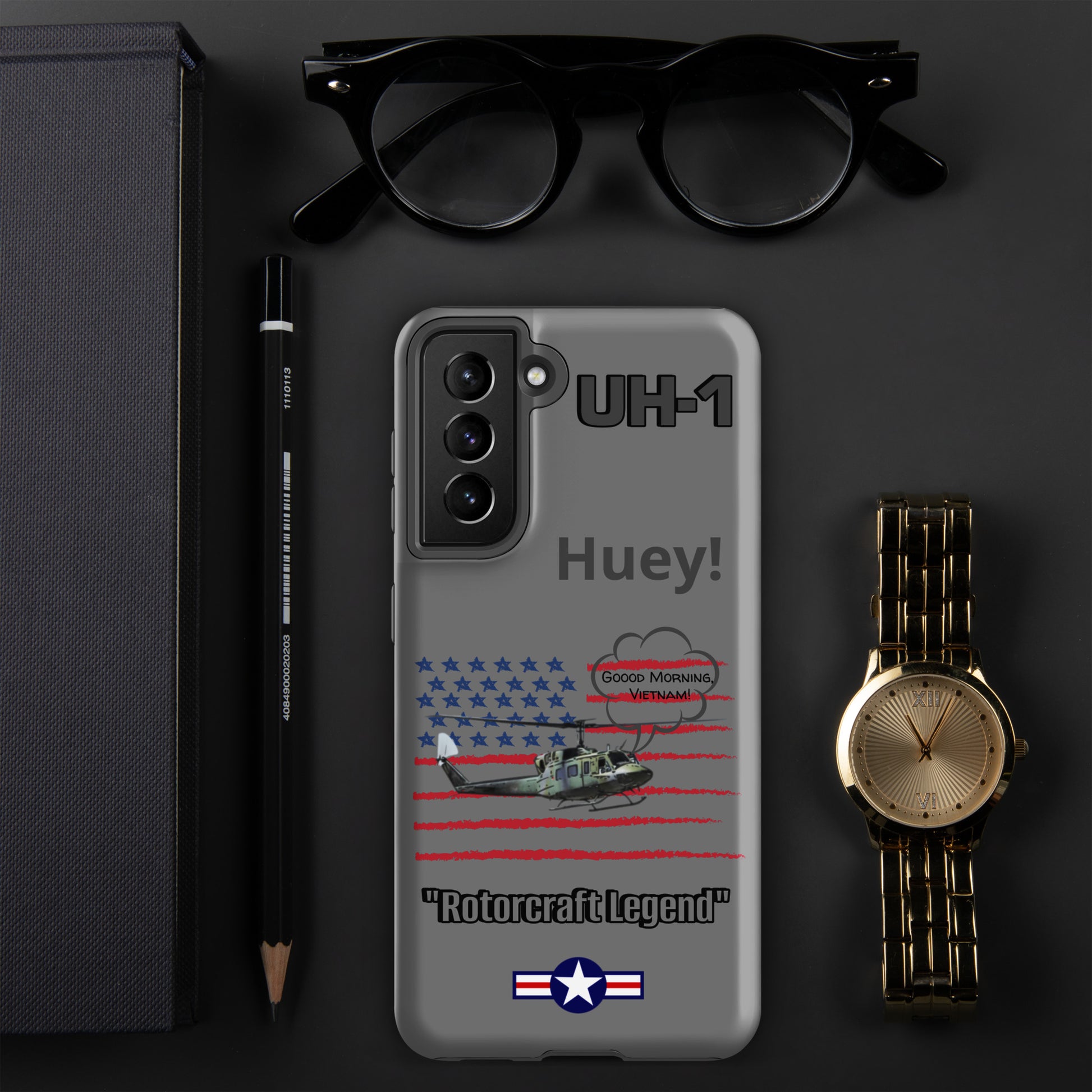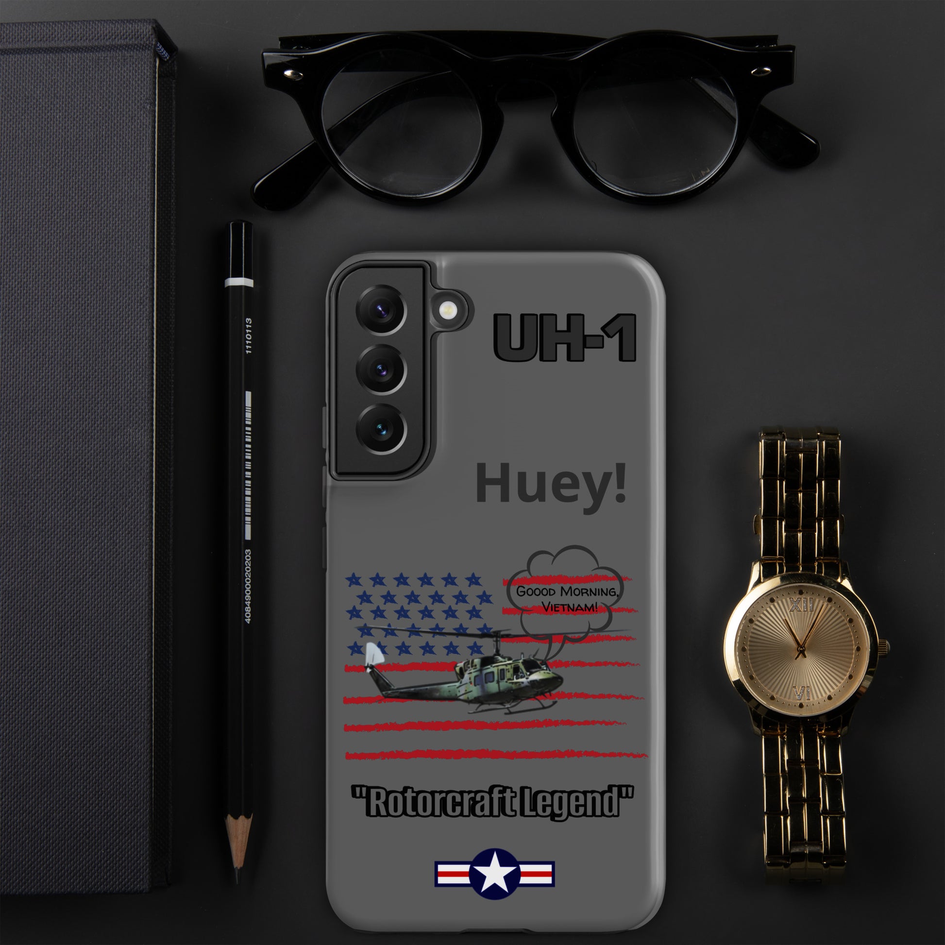 Elevate your device protection and embrace patriotism with our Bell UH-1 Iroquois Samsung case. Skillfully designed to shield your phone while showcasing the legacy of this iconic helicopter, our case harmonizes style and security with a touch of national pride. Carry your device confidently, embodying the power of aviation heritage and the USA's indomitable spirit. Unite protection and patriotism with every glance, honoring the rich history of aviation excellence.