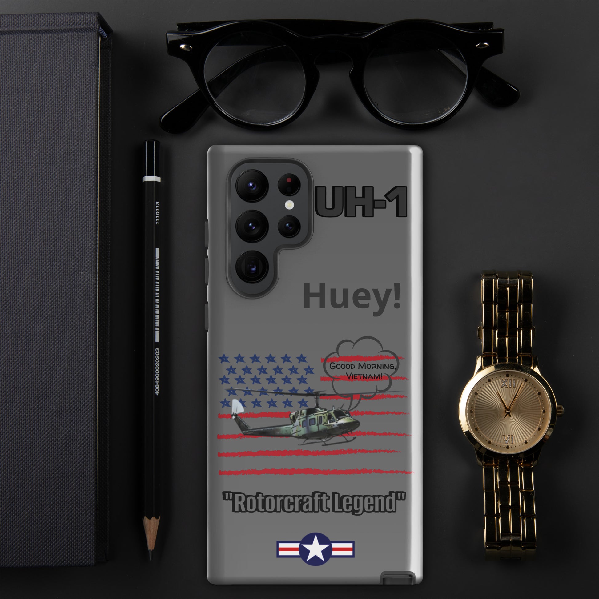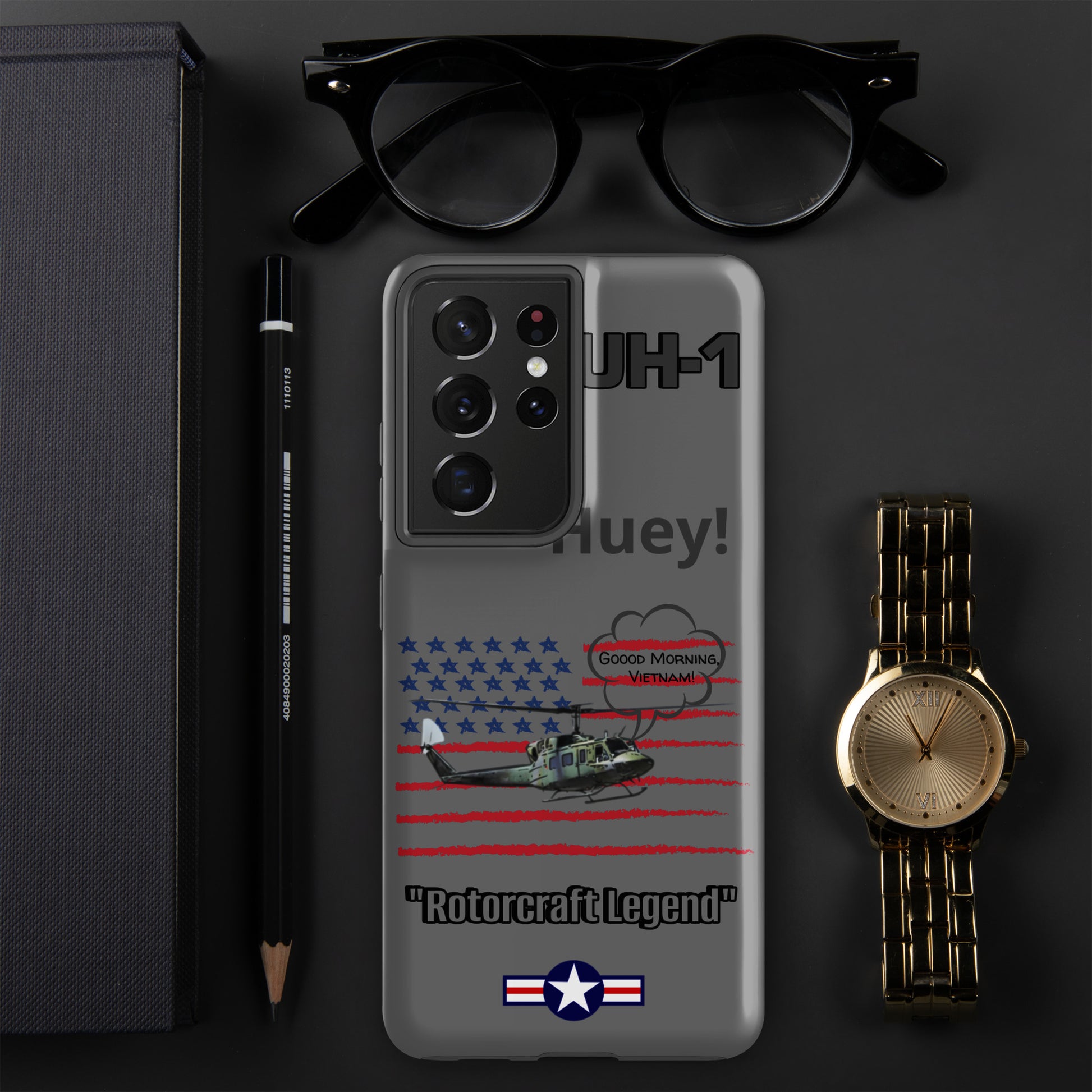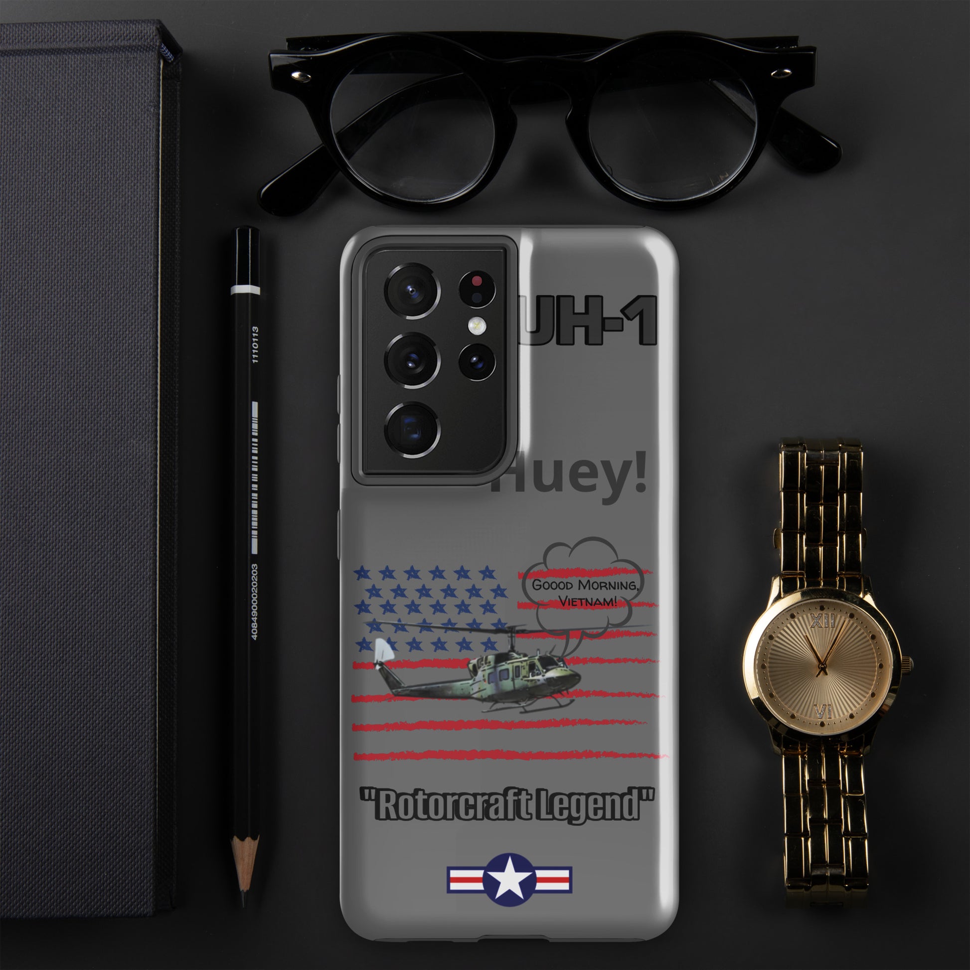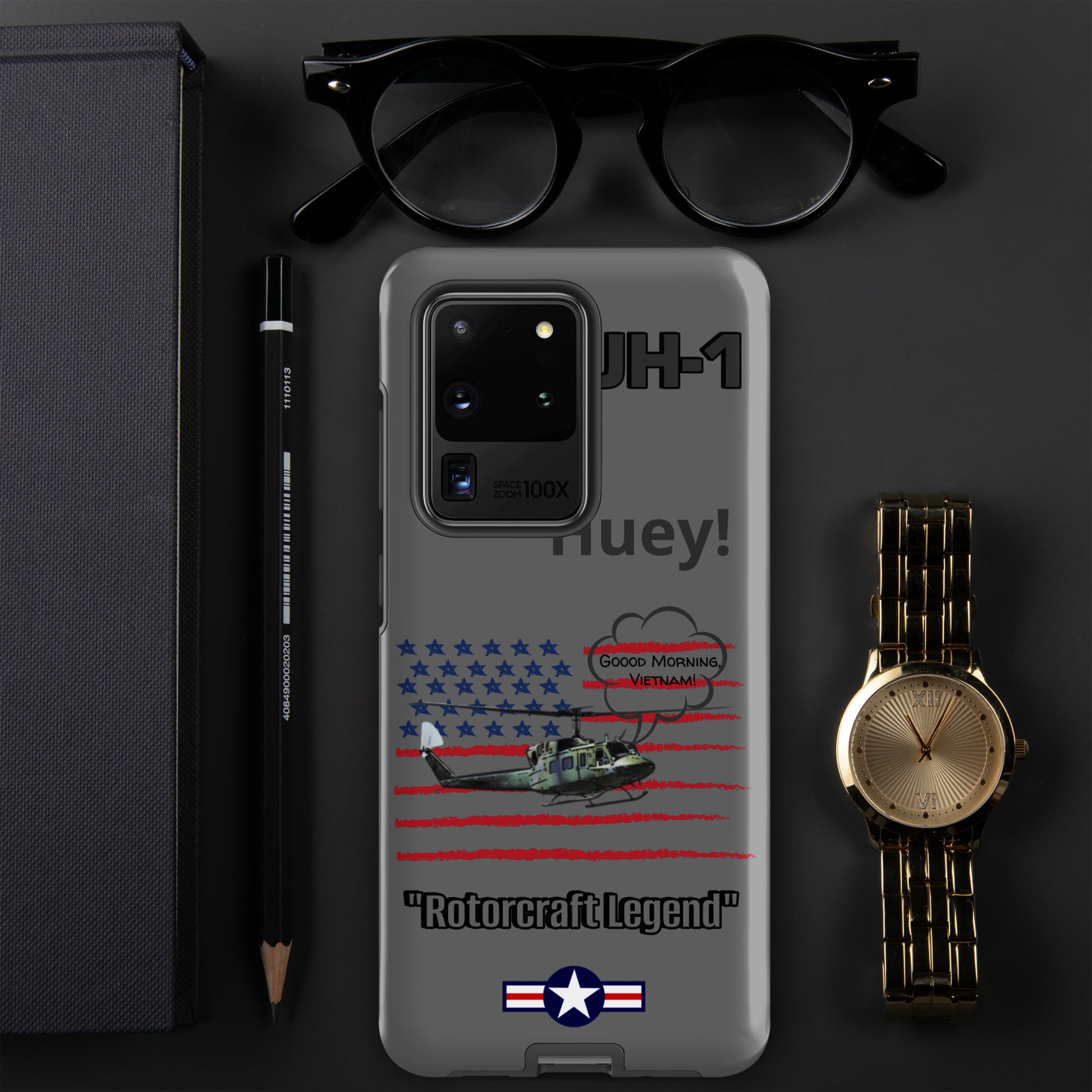 Elevate your device protection and embrace patriotism with our Bell UH-1 Iroquois Samsung case. Skillfully designed to shield your phone while showcasing the legacy of this iconic helicopter, our case harmonizes style and security with a touch of national pride. Carry your device confidently, embodying the power of aviation heritage and the USA's indomitable spirit. Unite protection and patriotism with every glance, honoring the rich history of aviation excellence.