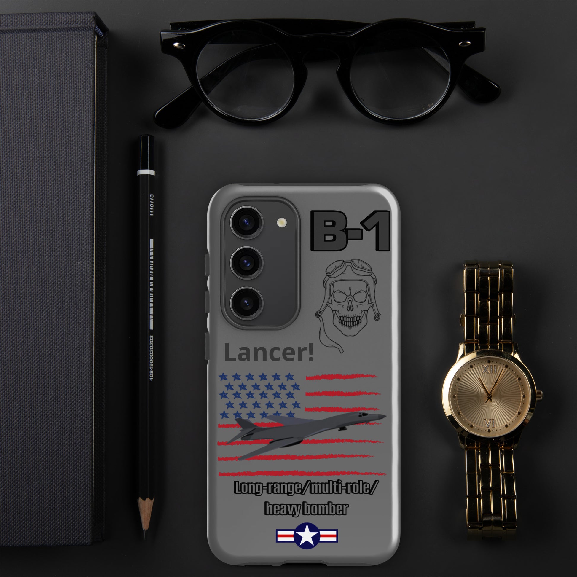 Elevate your Samsung device protection with our B-1 Lancer Patriot Case. Inspired by the B-1 Lancer's precision and the spirit of the USA, this case features a dynamic design with the iconic aircraft against the backdrop of the American flag. Embrace the power of aviation and patriotism while safeguarding your device. Carry the legacy of the B-1 Lancer's strength and the nation's pride with you wherever you go.