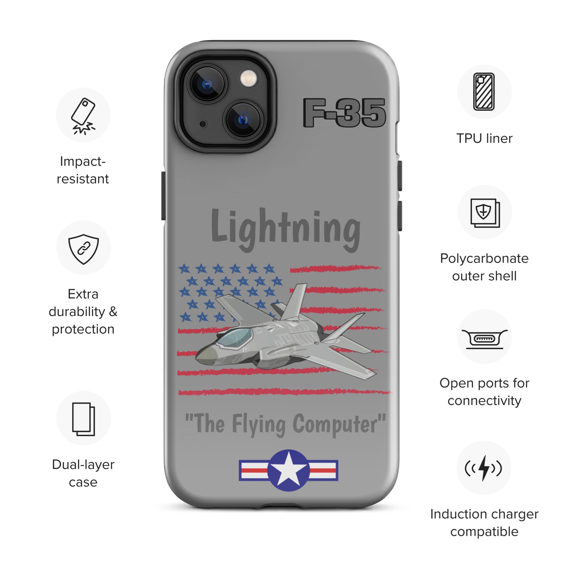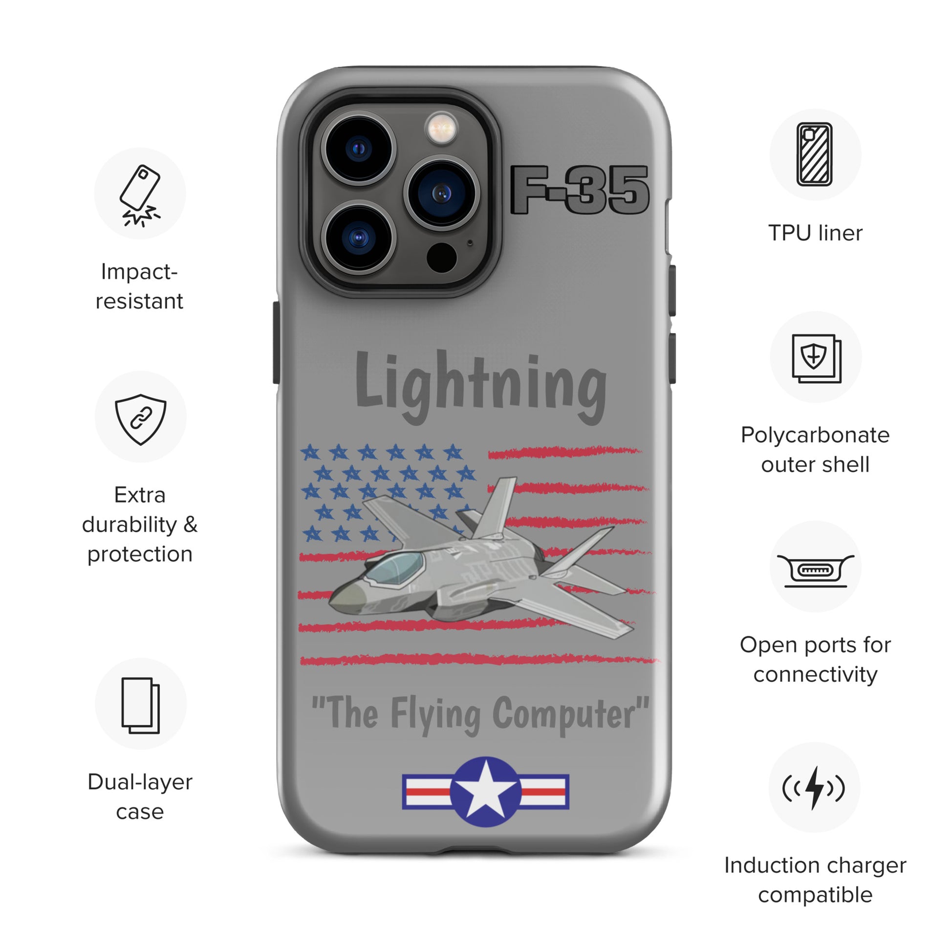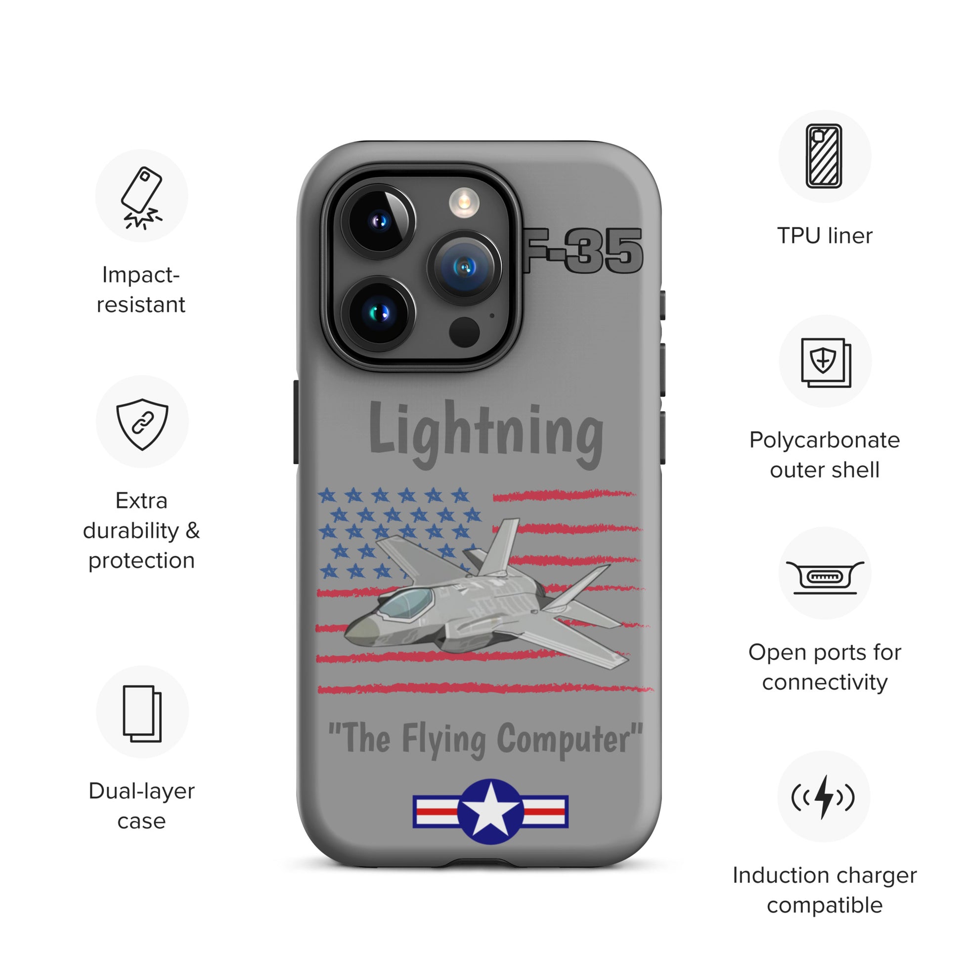 Experience cutting-edge protection with our F-35 Inspired iPhone Case. Infused with the spirit of advanced aviation technology, this case seamlessly blends sleek design with robust defense. Safeguard your iPhone with the resilience of the F-35 Lightning II while showcasing your passion for innovation and style.
