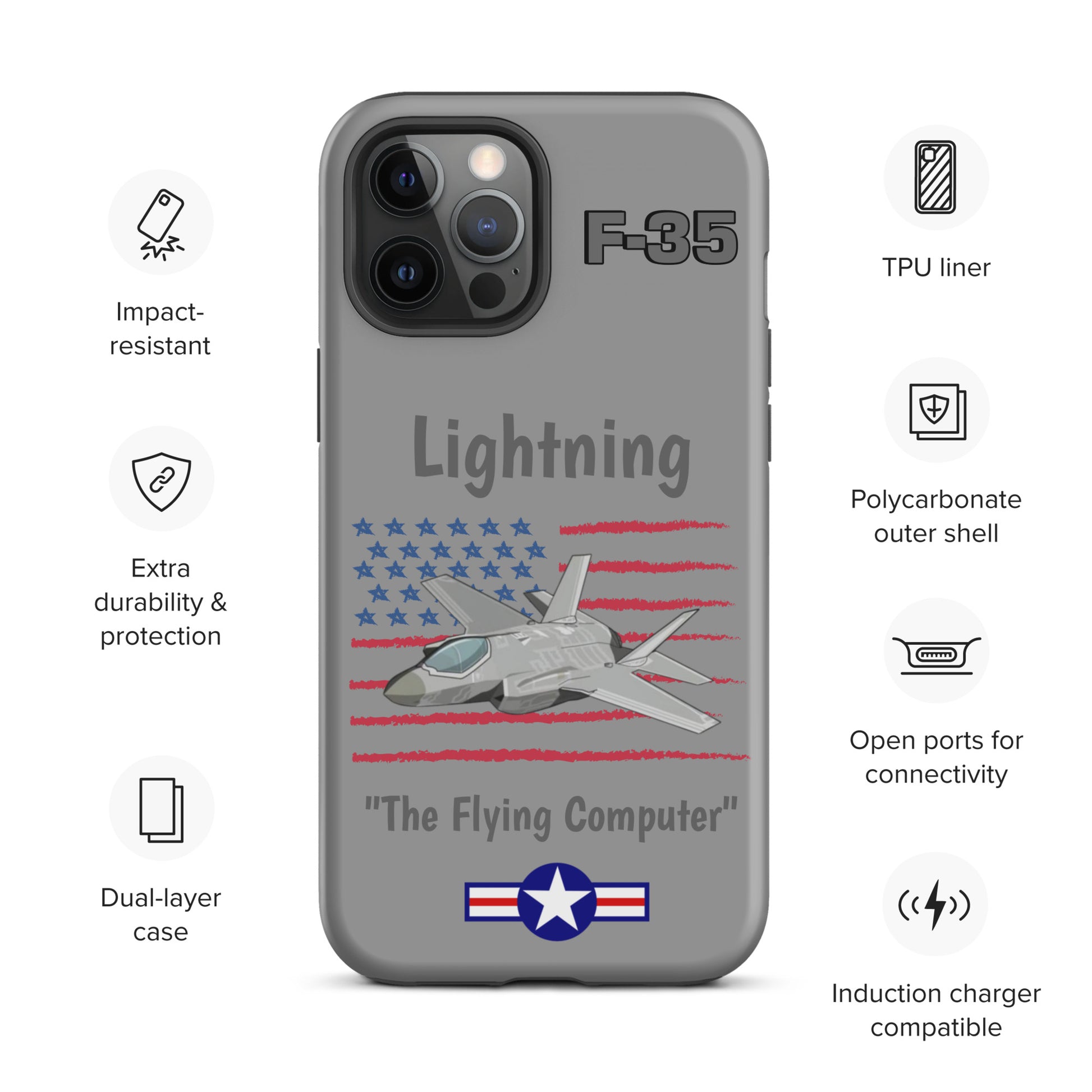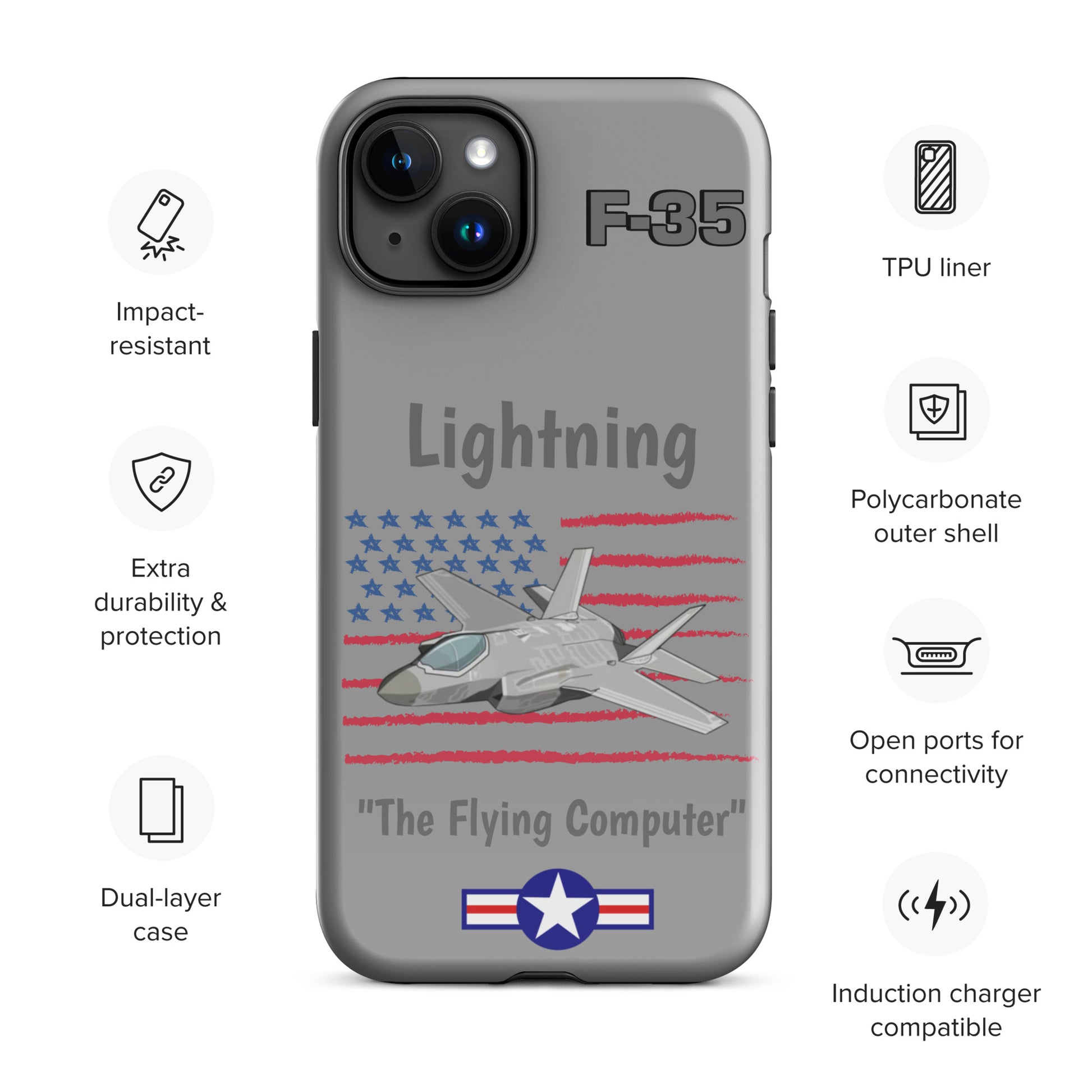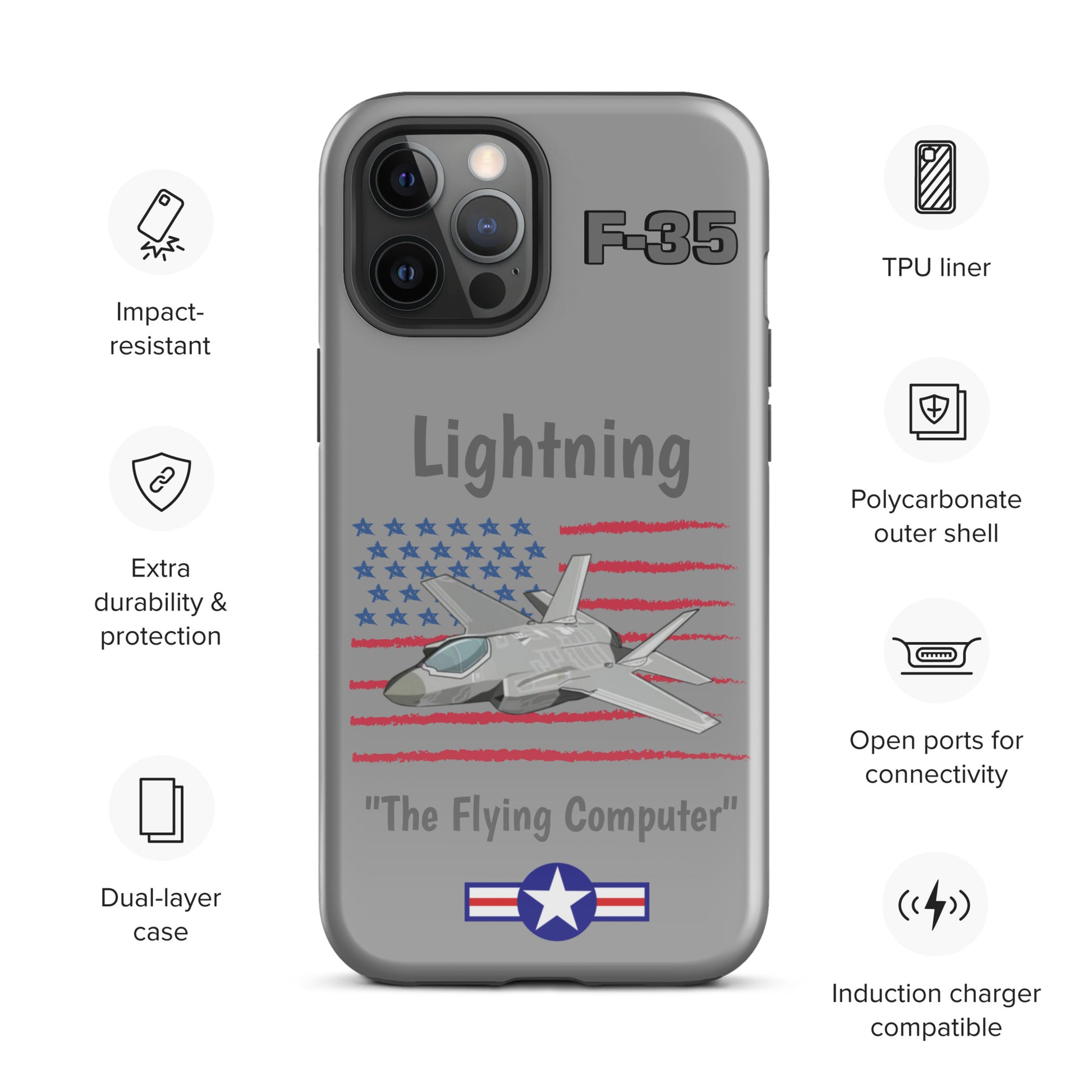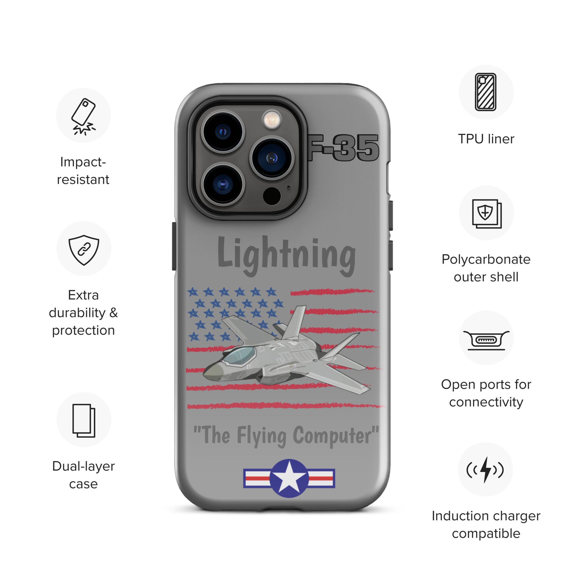 Experience cutting-edge protection with our F-35 Inspired iPhone Case. Infused with the spirit of advanced aviation technology, this case seamlessly blends sleek design with robust defense. Safeguard your iPhone with the resilience of the F-35 Lightning II while showcasing your passion for innovation and style.