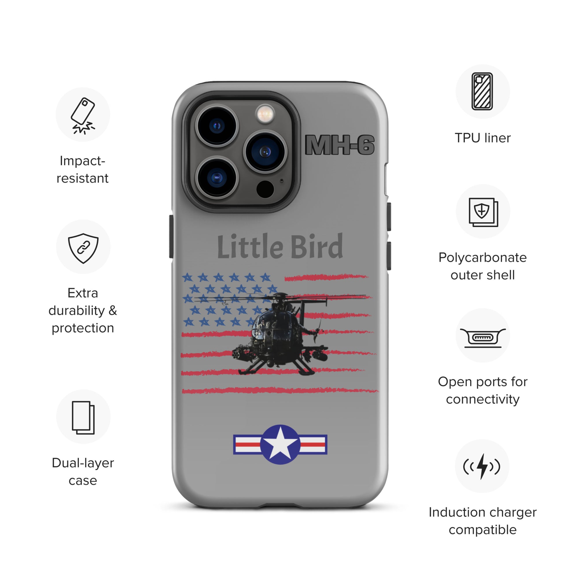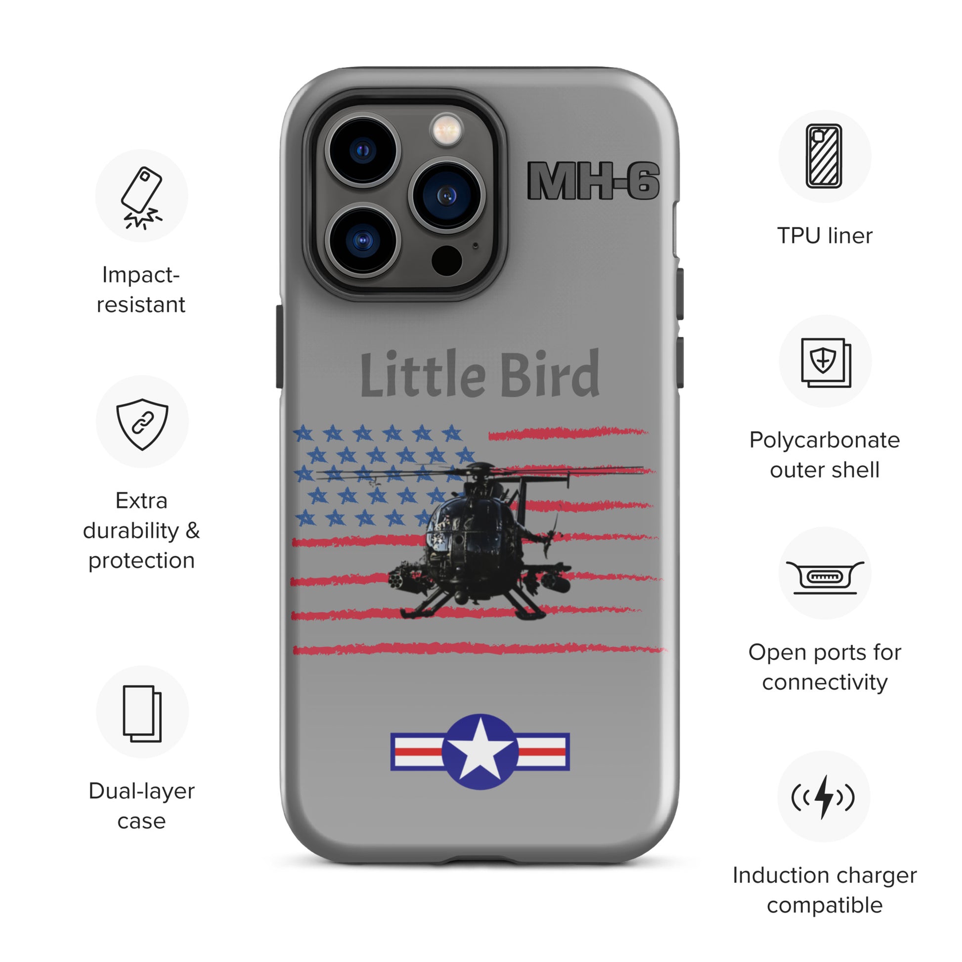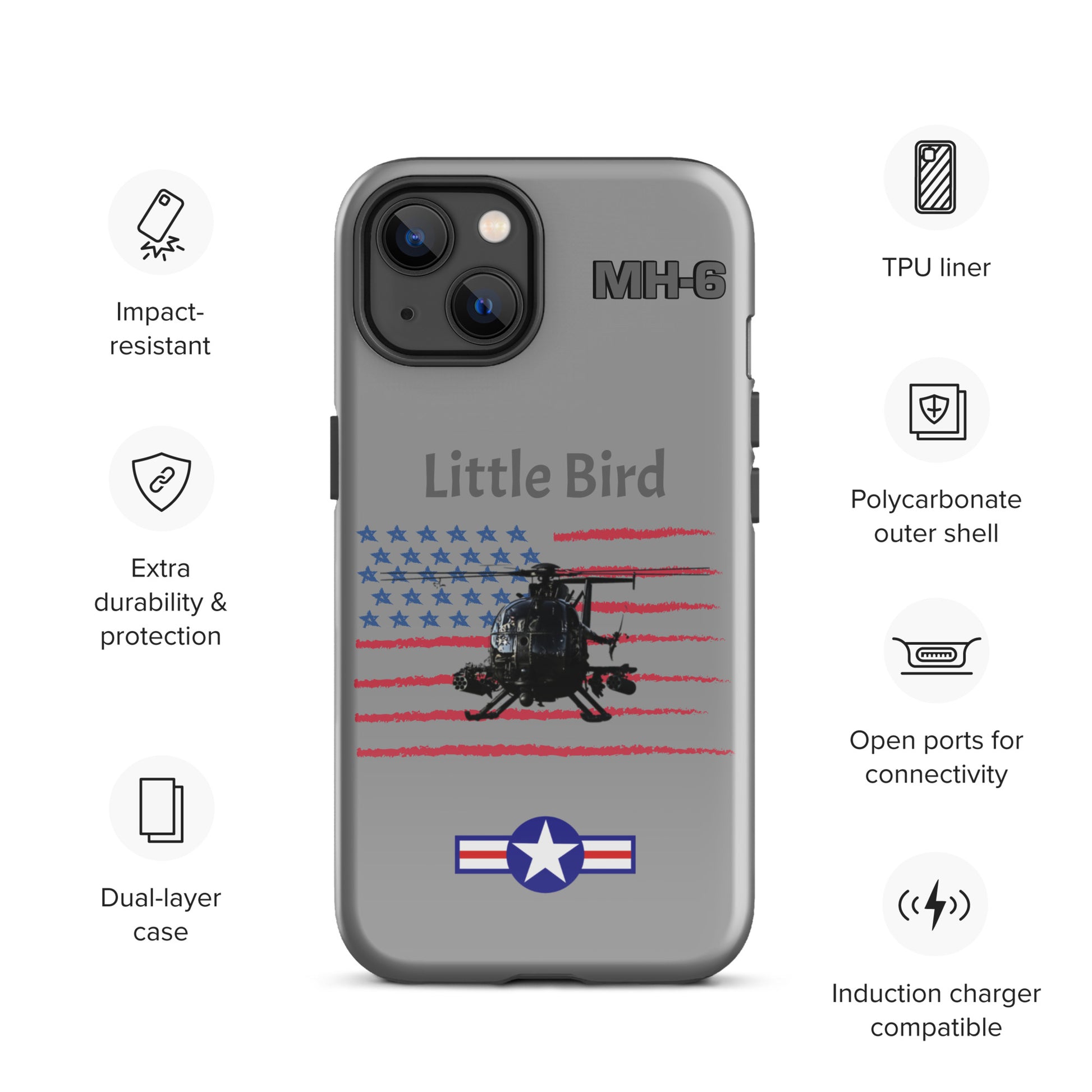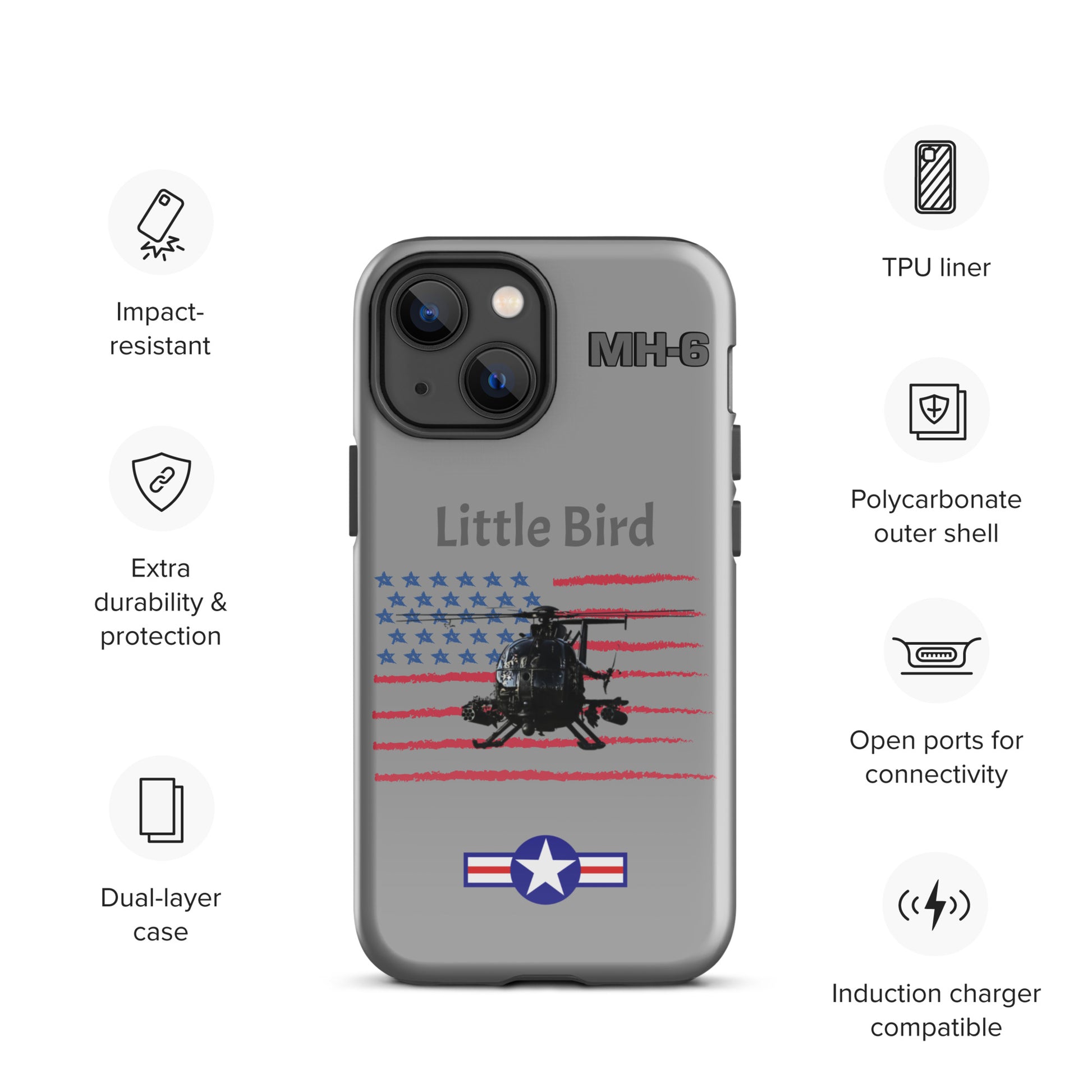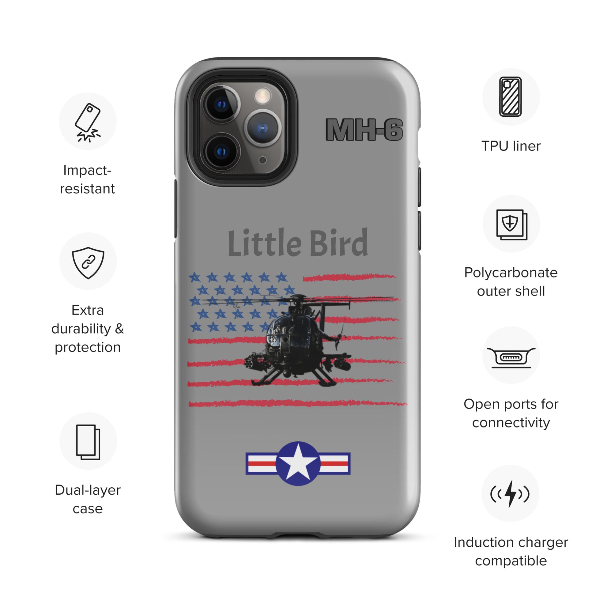 Wrap your iPhone in a symbol of aviation prowess and patriotism with our MH-6 Little Bird iPhone case. Designed to safeguard your device while celebrating the agility of this legendary helicopter, our case offers both protection and style with a touch of national pride. Carry your phone with confidence, embodying the power of aviation heritage and the USA's unwavering resolve. Unite form and function with a seamless blend of protection and patriotism in every glance.