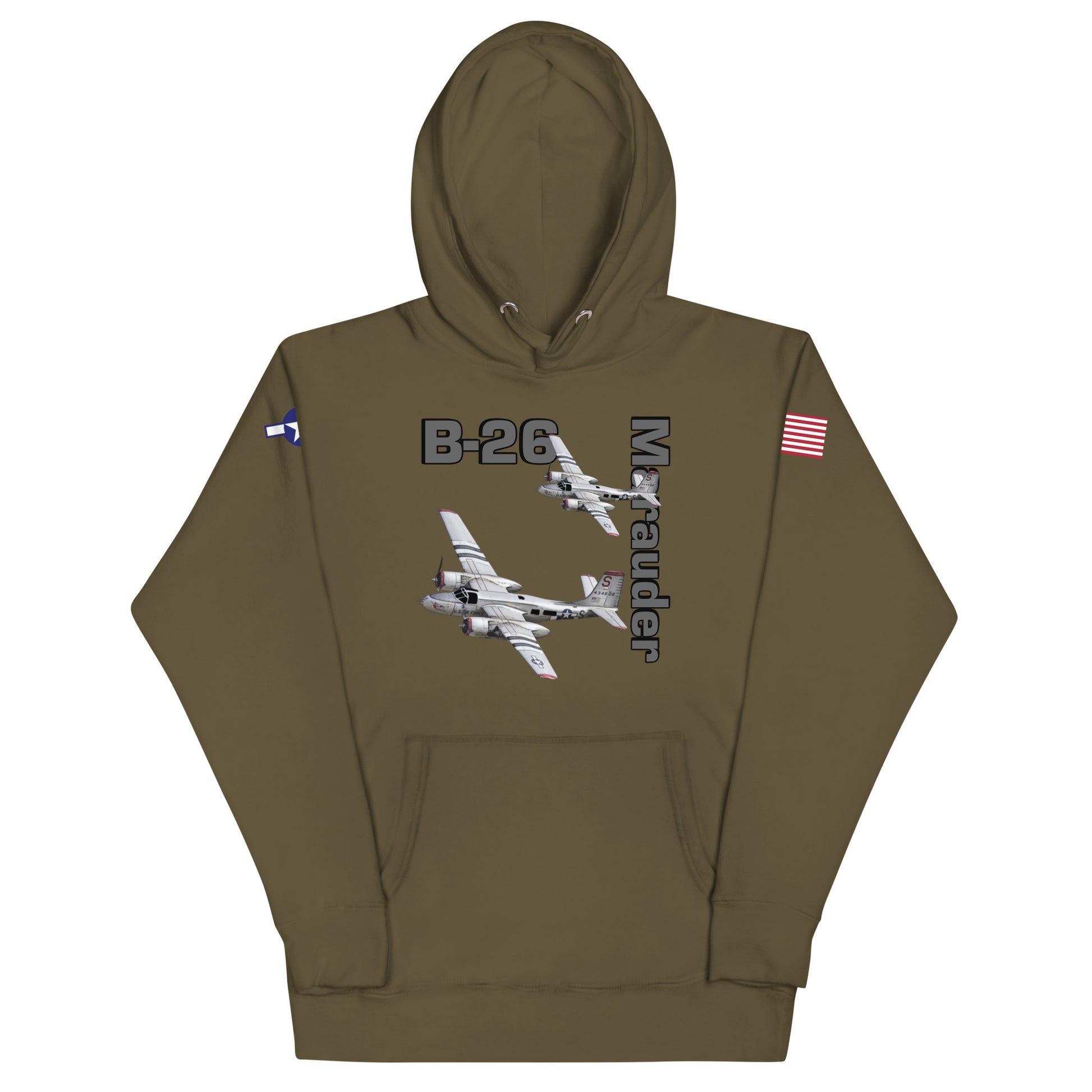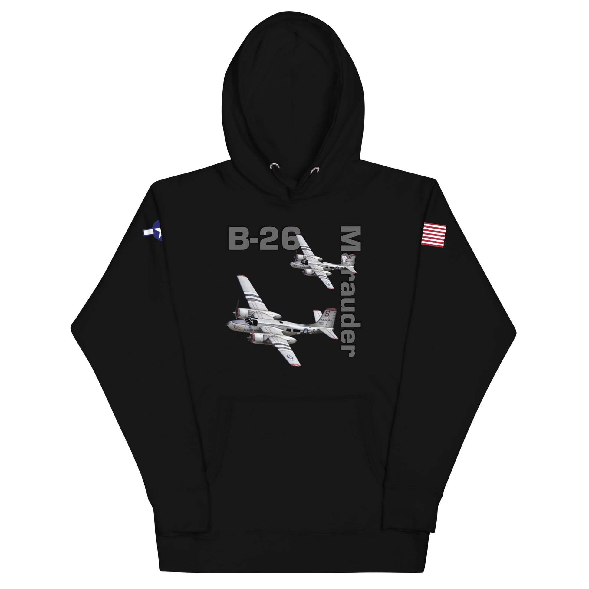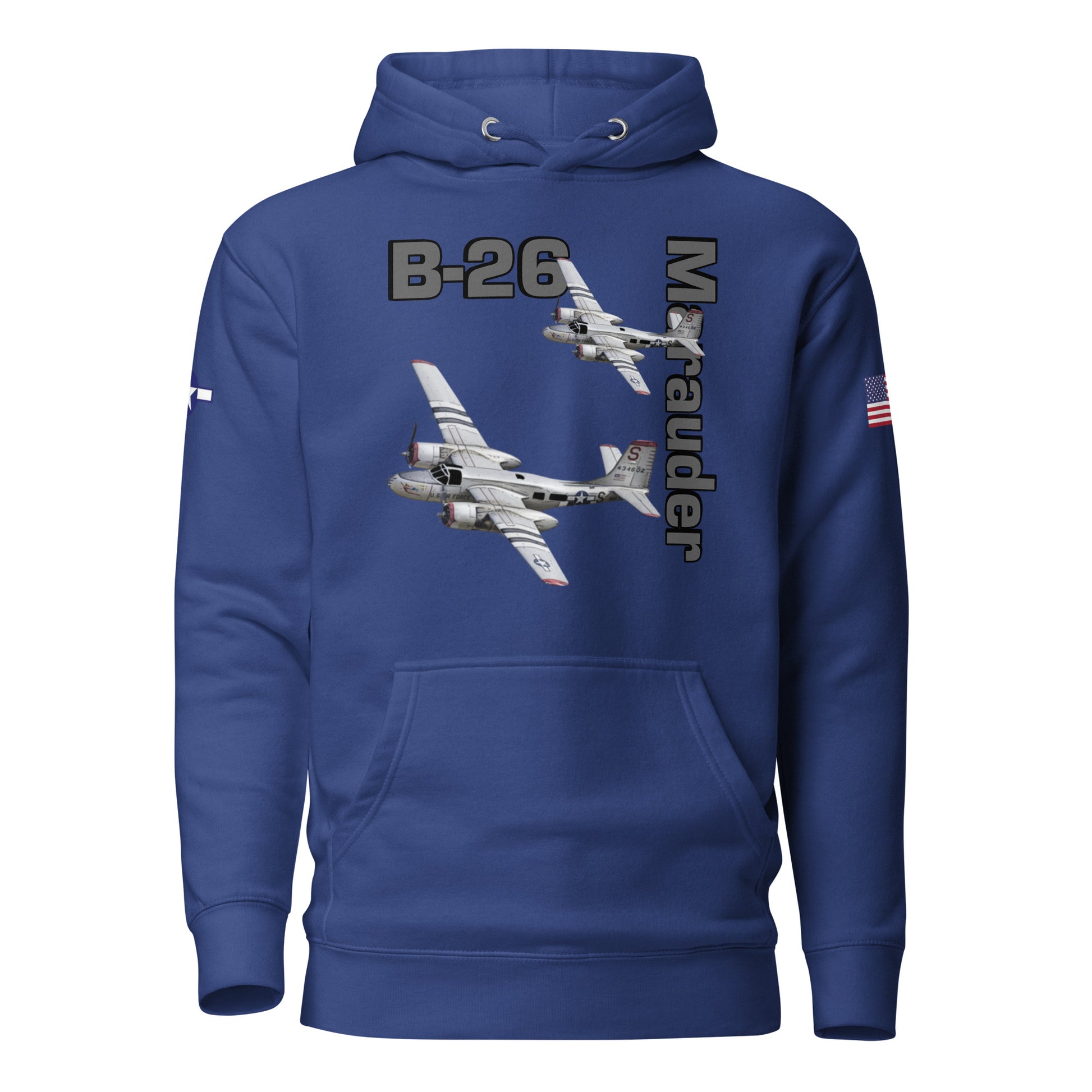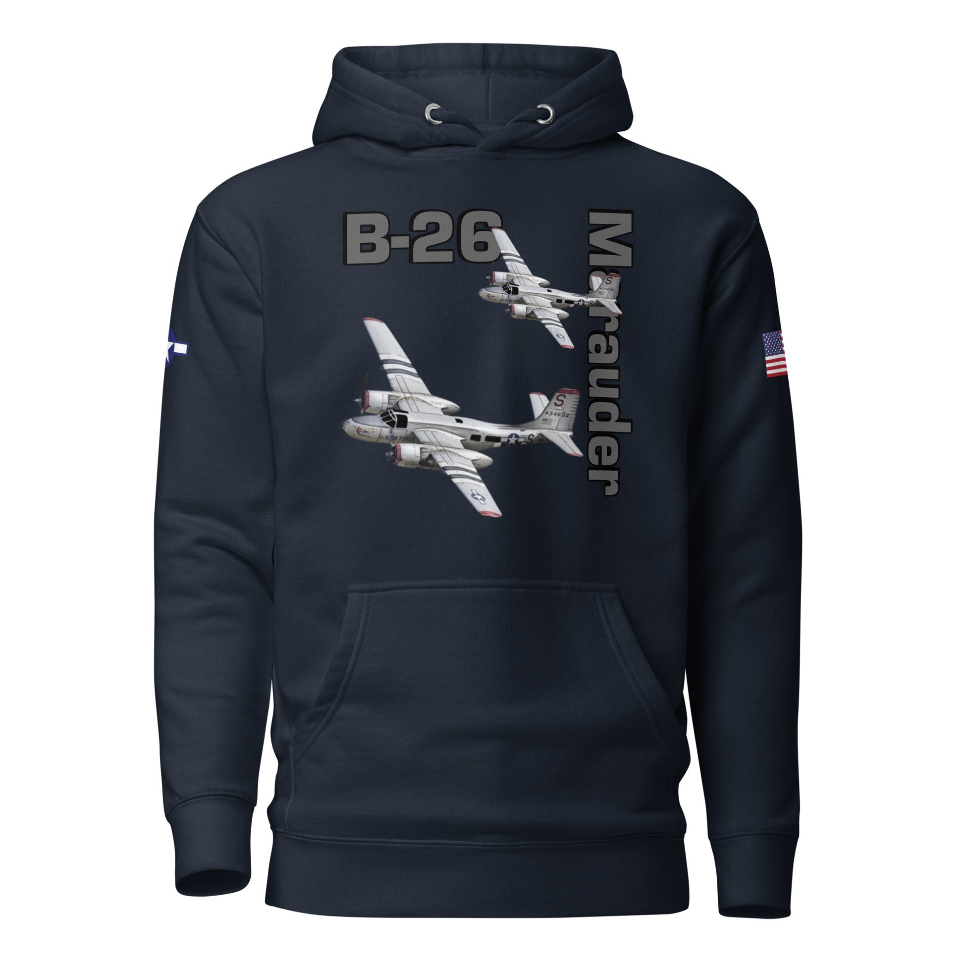 Elevate your style with our Marauder Patriot Unisex Hoodie, a tribute to the iconic B-26 Marauder bomber that left its mark on WWII skies. Meticulously designed for both comfort and fashion, this hoodie celebrates the enduring legacy of the Marauder. Stay warm and make a bold statement in classic aviation style with the Marauder Patriot Unisex Hoodie.