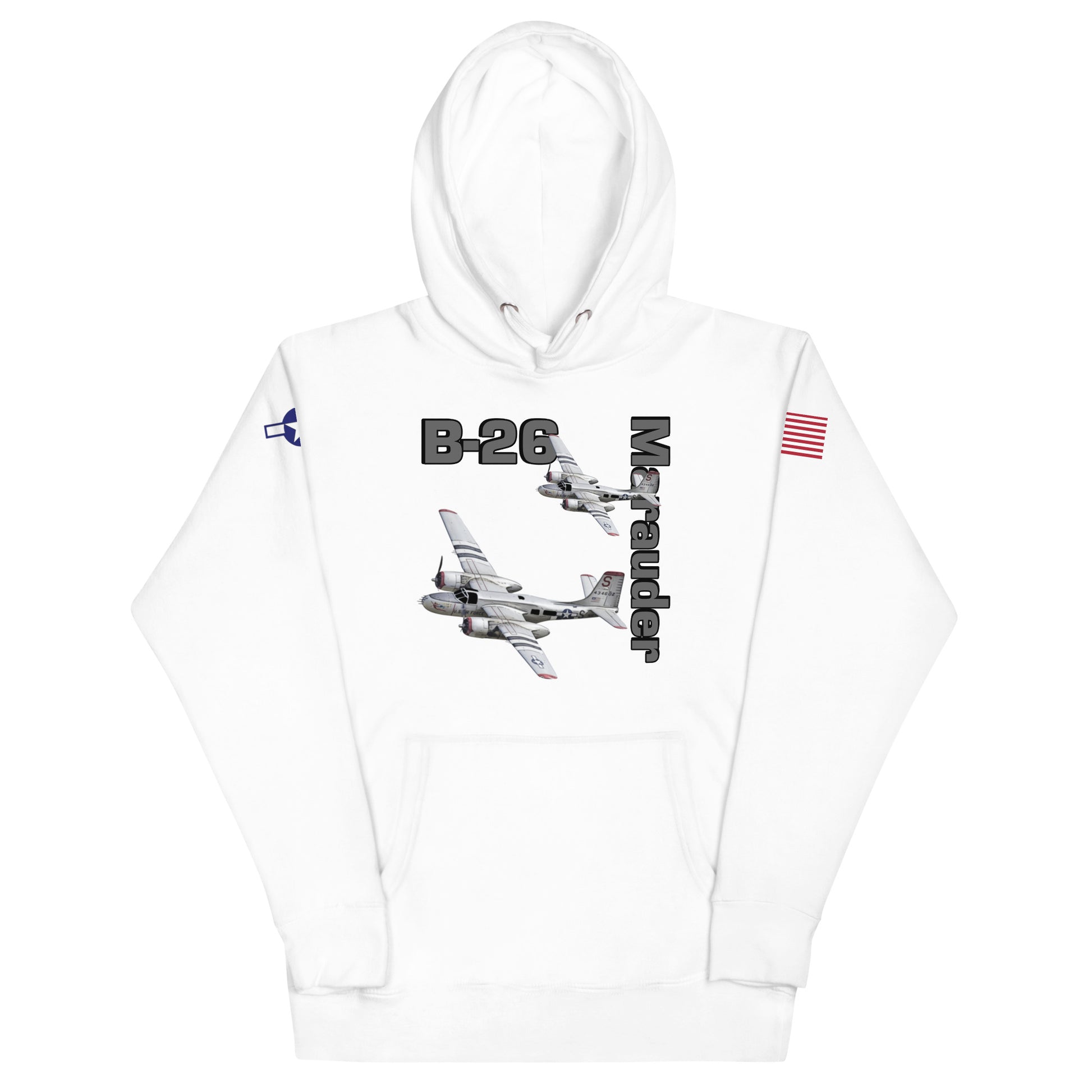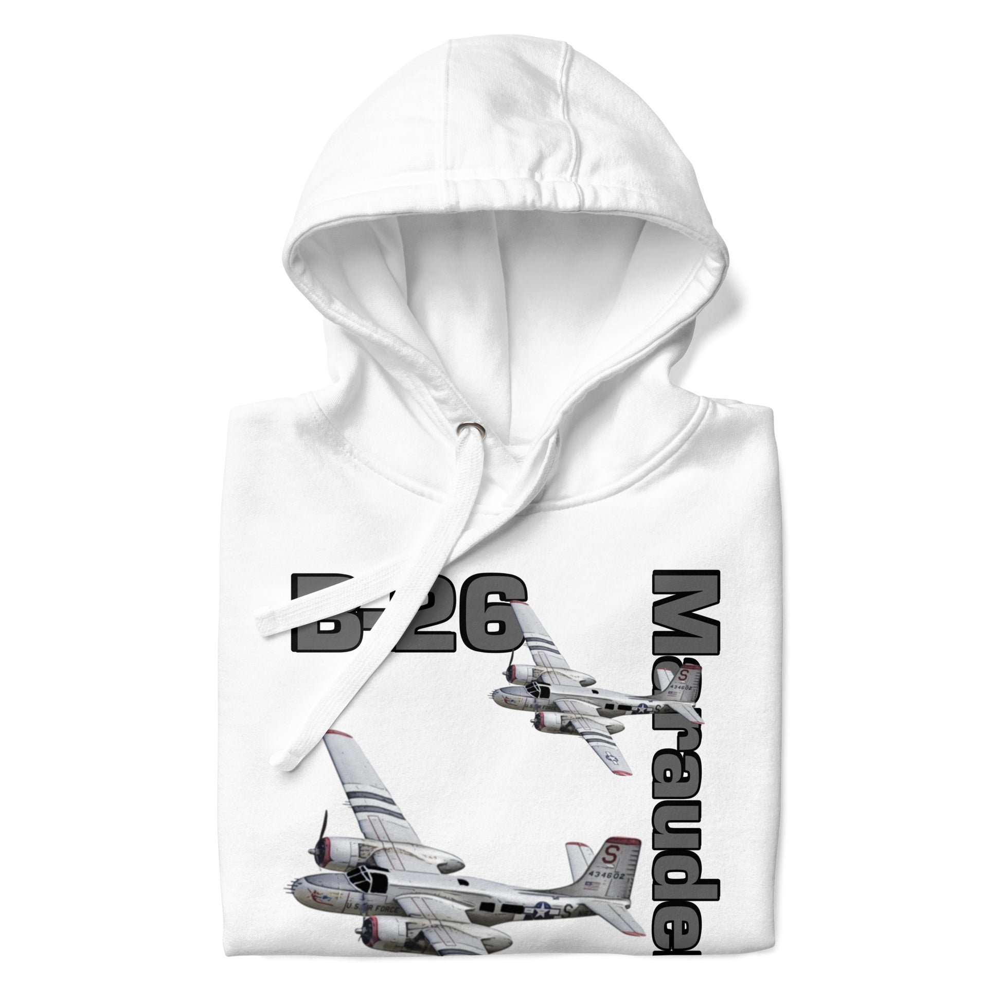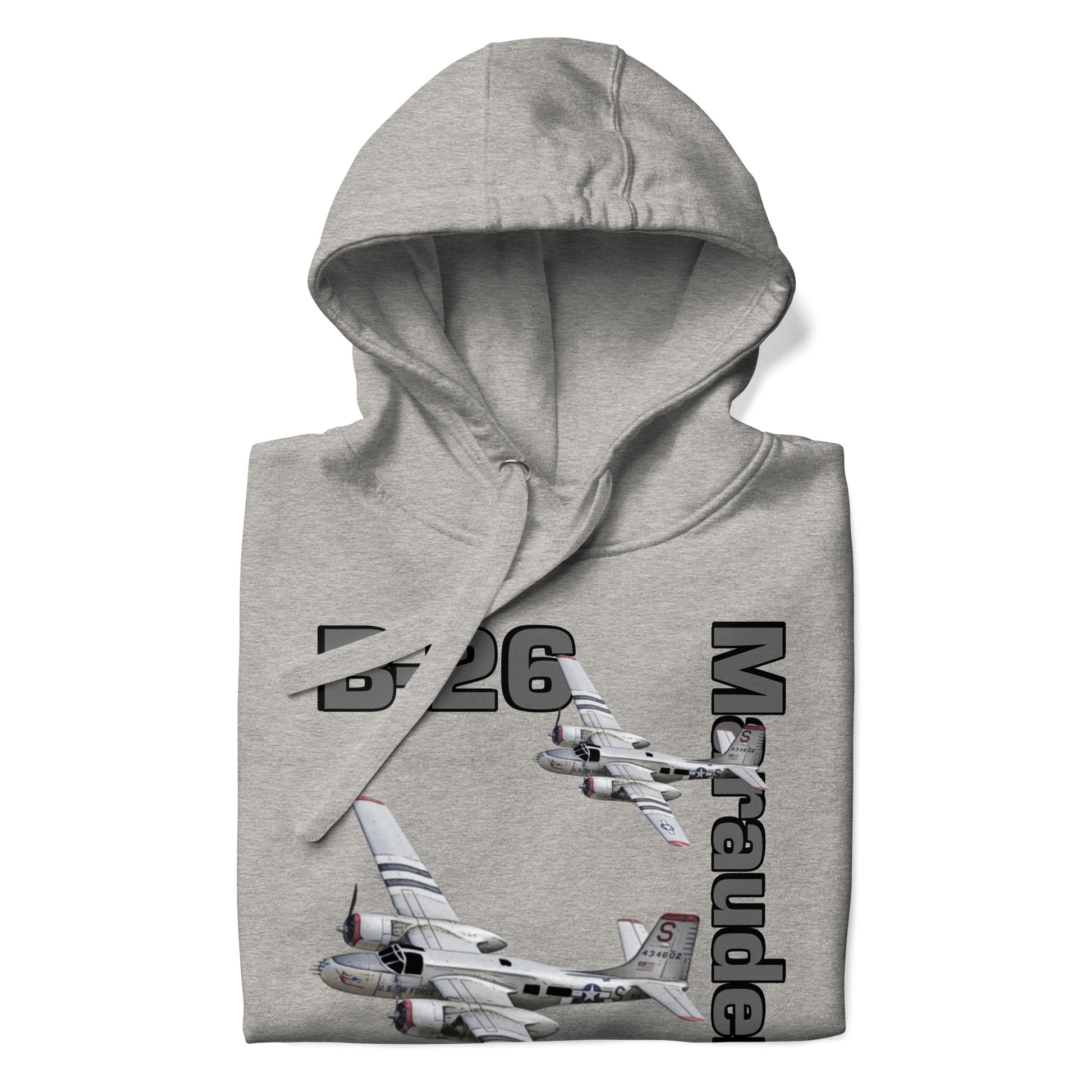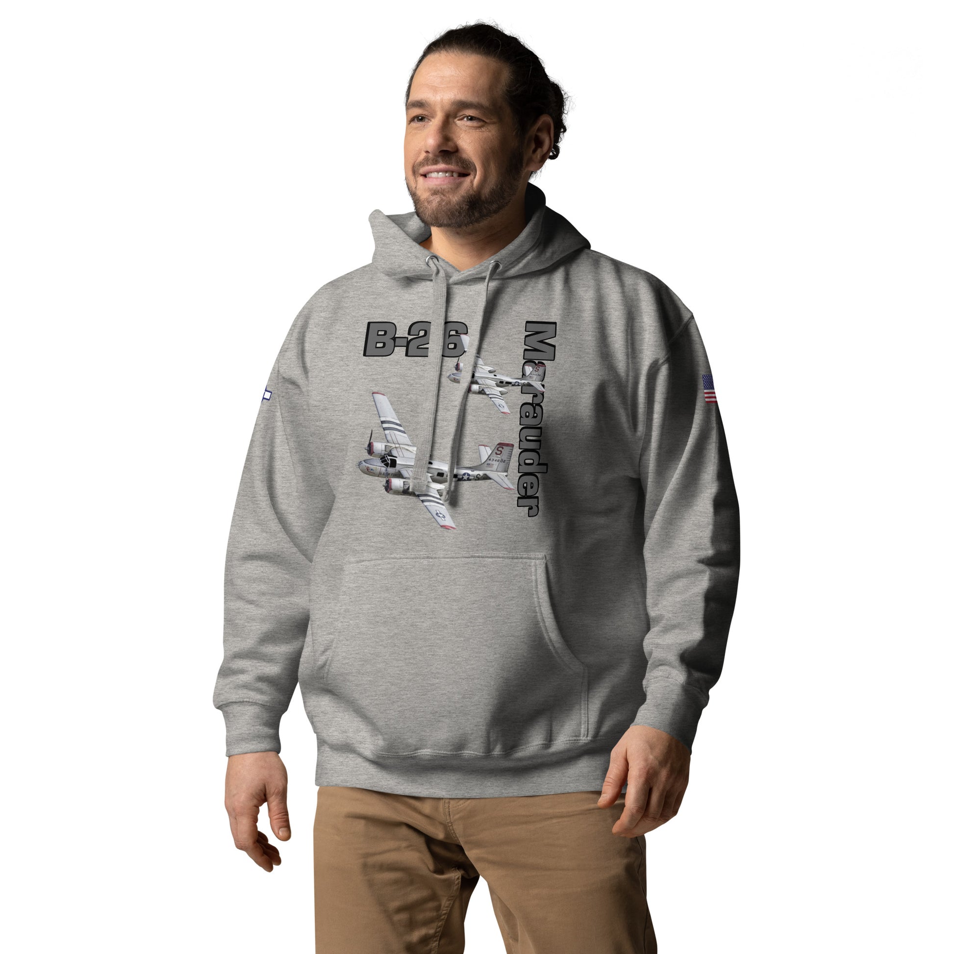 Elevate your style with our Marauder Patriot Unisex Hoodie, a tribute to the iconic B-26 Marauder bomber that left its mark on WWII skies. Meticulously designed for both comfort and fashion, this hoodie celebrates the enduring legacy of the Marauder. Stay warm and make a bold statement in classic aviation style with the Marauder Patriot Unisex Hoodie.