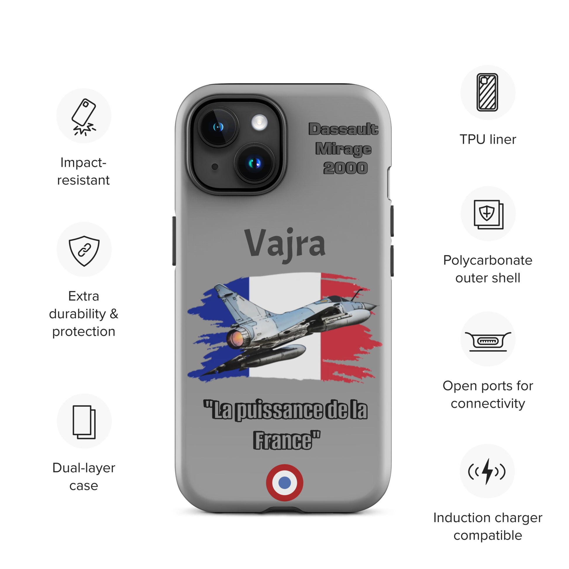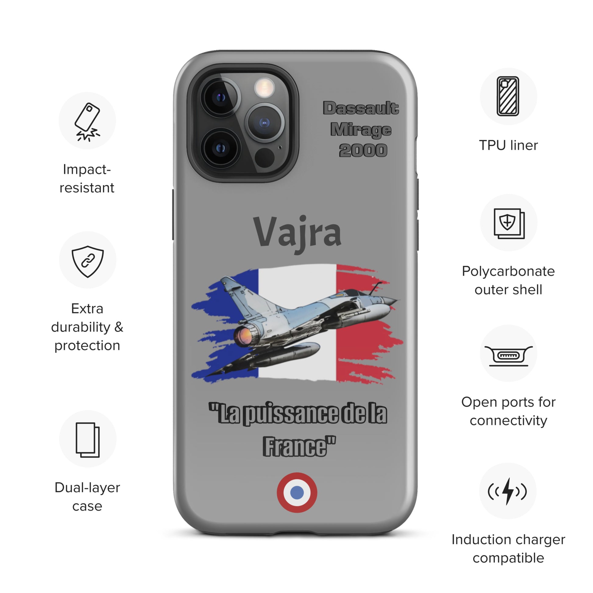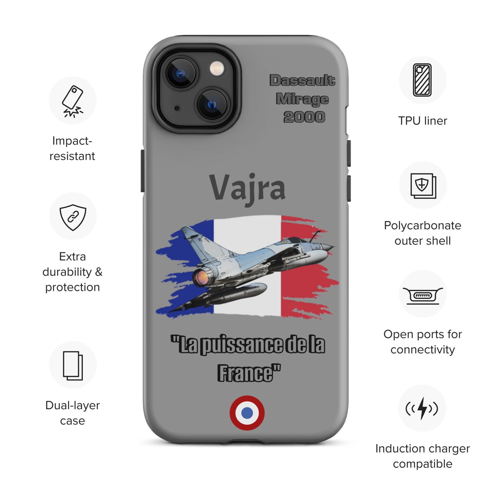 Elevate your iPhone protection with our Dassault Mirage 2000 Power Case. This design pays homage to the French Air Force's remarkable Mirage 2000, celebrated for its agility and advanced technology. Safeguard your device with the same precision and strength that define aviation excellence. Carry the legacy of the Mirage 2000 with pride and showcase your passion for aviation wherever you go.