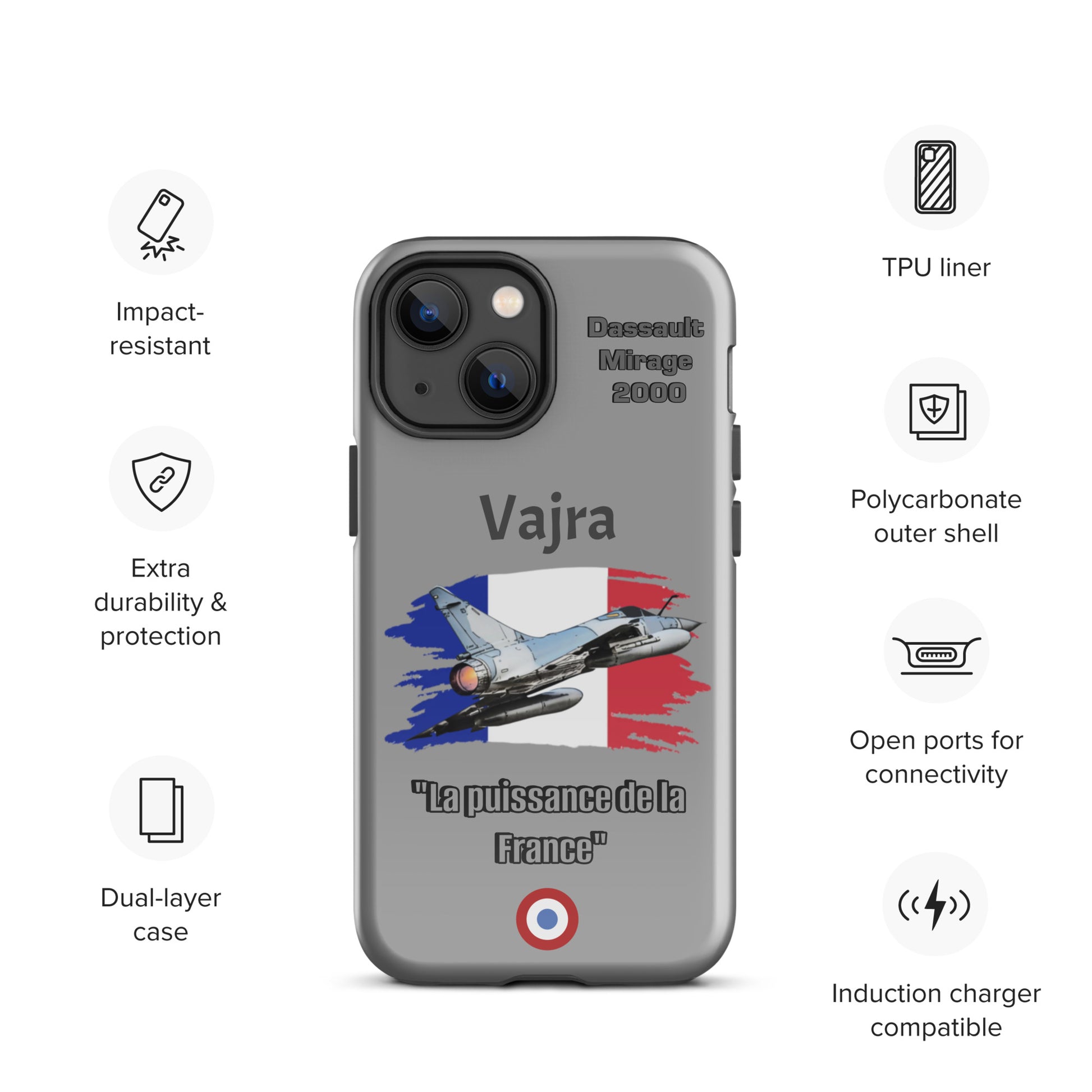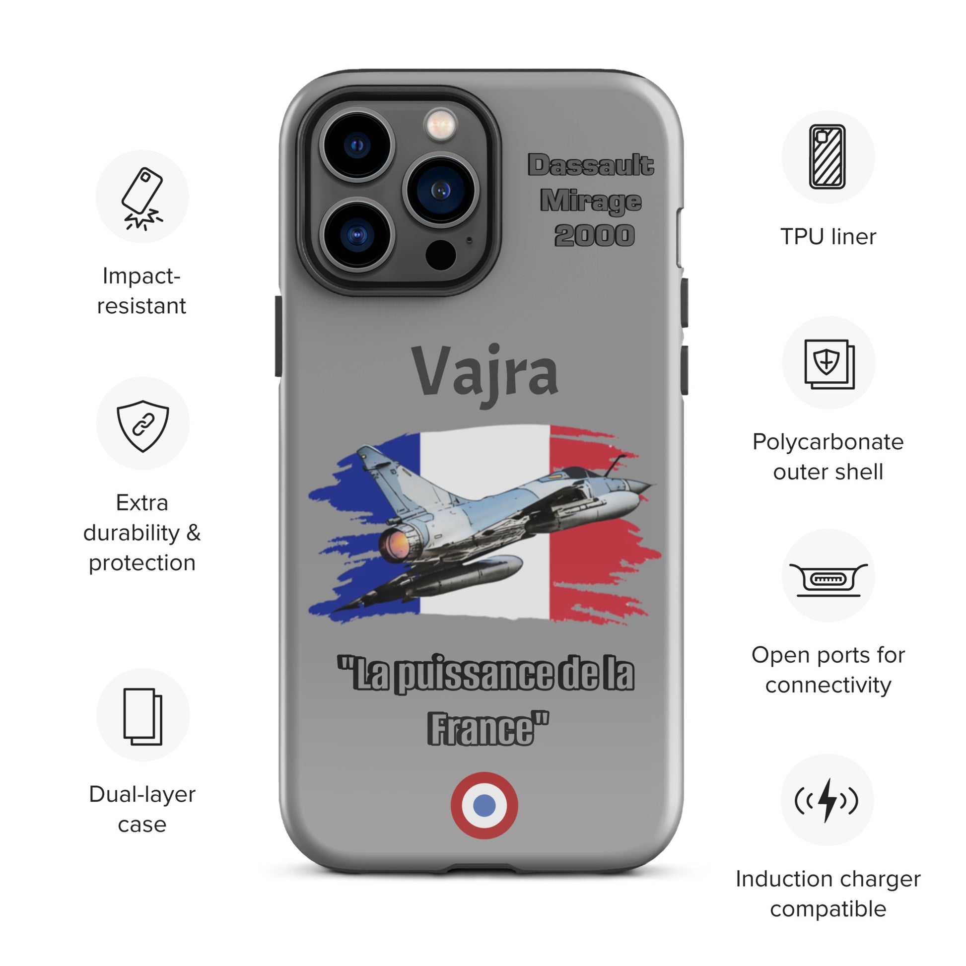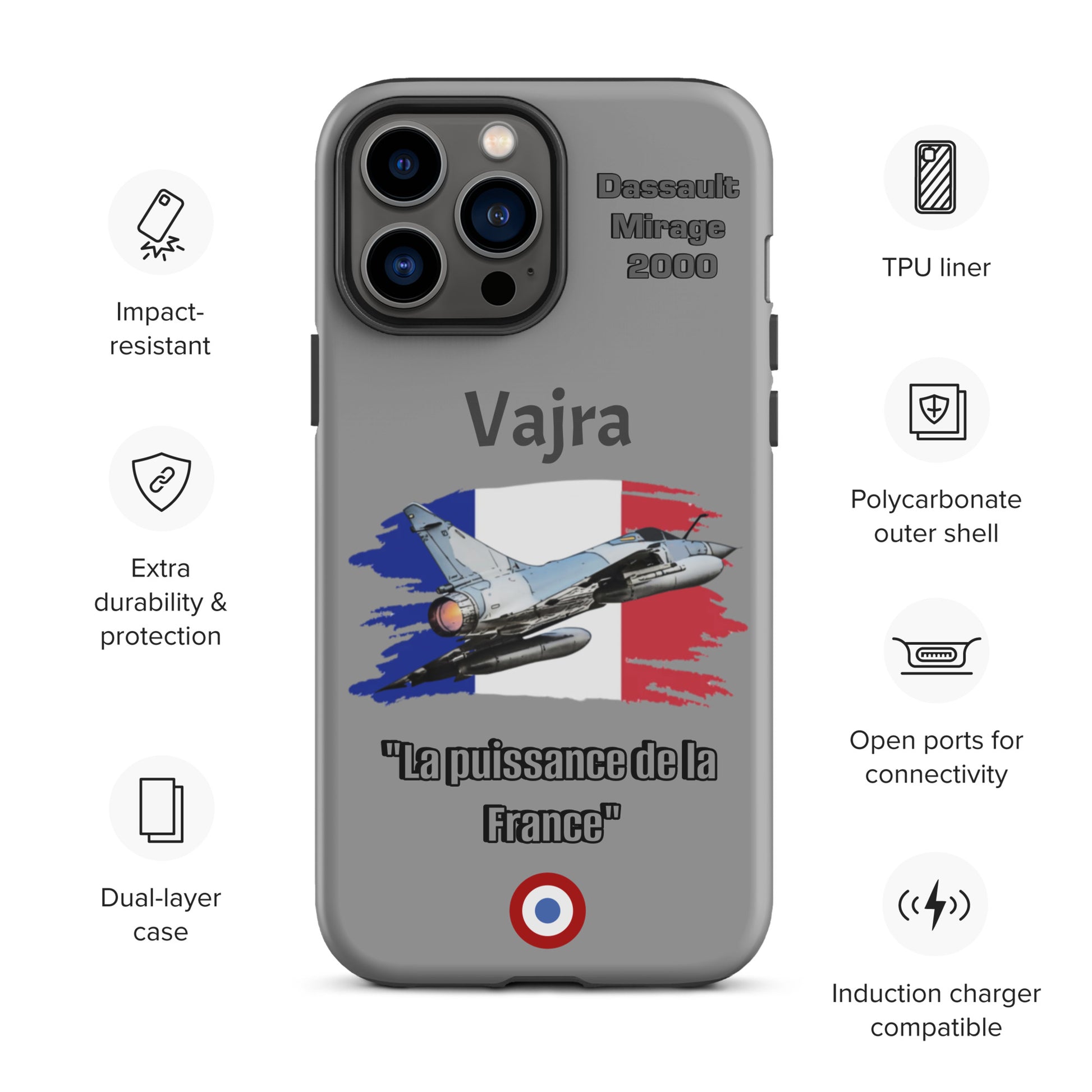 Elevate your iPhone protection with our Dassault Mirage 2000 Power Case. This design pays homage to the French Air Force's remarkable Mirage 2000, celebrated for its agility and advanced technology. Safeguard your device with the same precision and strength that define aviation excellence. Carry the legacy of the Mirage 2000 with pride and showcase your passion for aviation wherever you go.