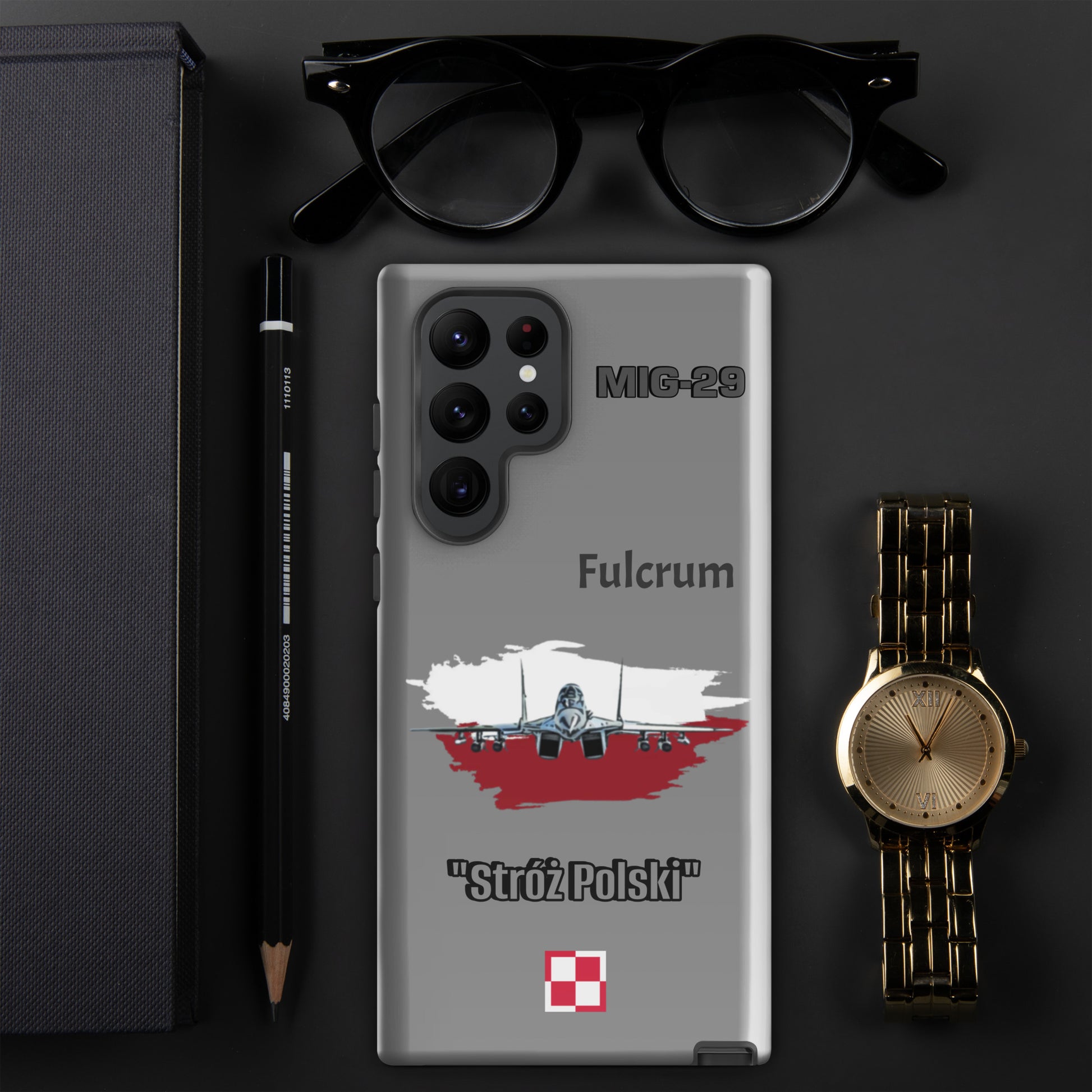 Elevate your Samsung device protection with our MiG-29 Fulcrum Power Case. This design pays homage to the legendary MiG-29 Fulcrum, celebrated for its agility and power. Safeguard your device with the same precision and strength that define this iconic aircraft. Carry the legacy of the MiG-29 Fulcrum proudly and showcase your passion for aviation wherever you go.