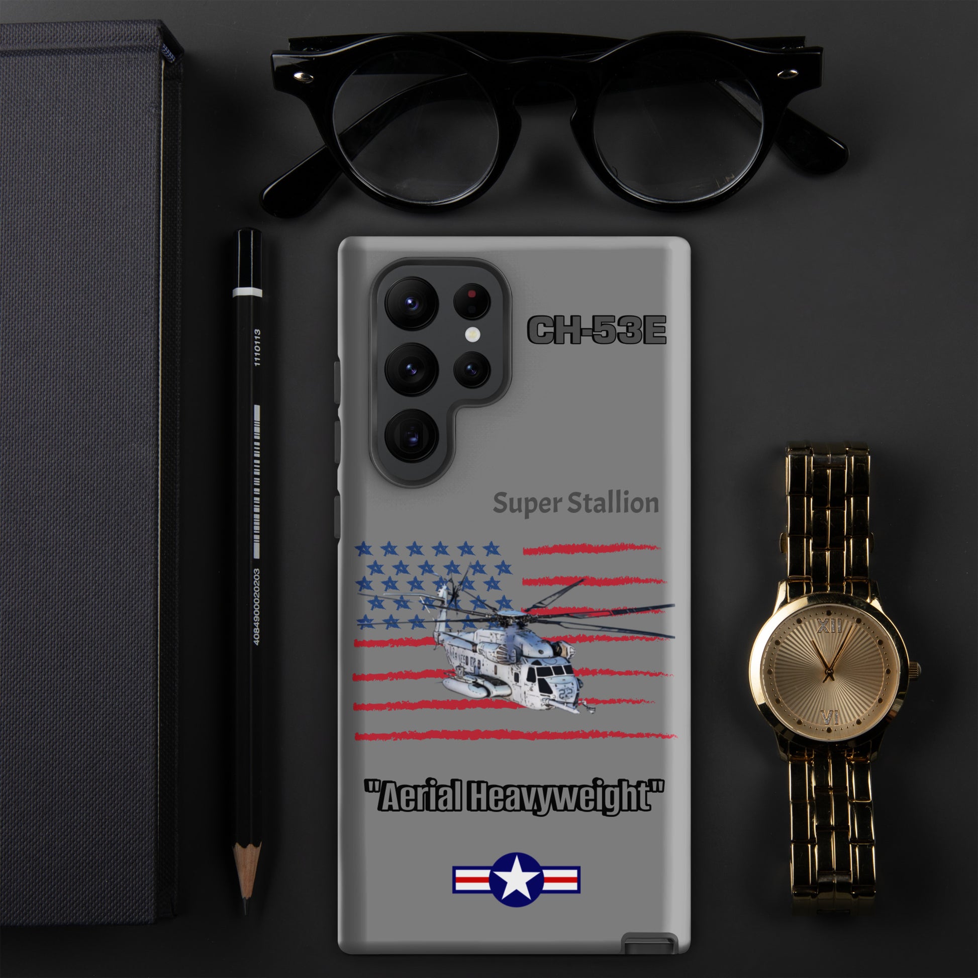 Embrace the power of flight and patriotism with our CH-53 Super Stallion Samsung case. Designed to protect your device while showcasing the might of this legendary rotorcraft, our case combines form and function with a touch of national pride. Elevate your style while celebrating the legacy of aviation excellence and the strength of the USA. Unite protection and patriotism with every glance.
