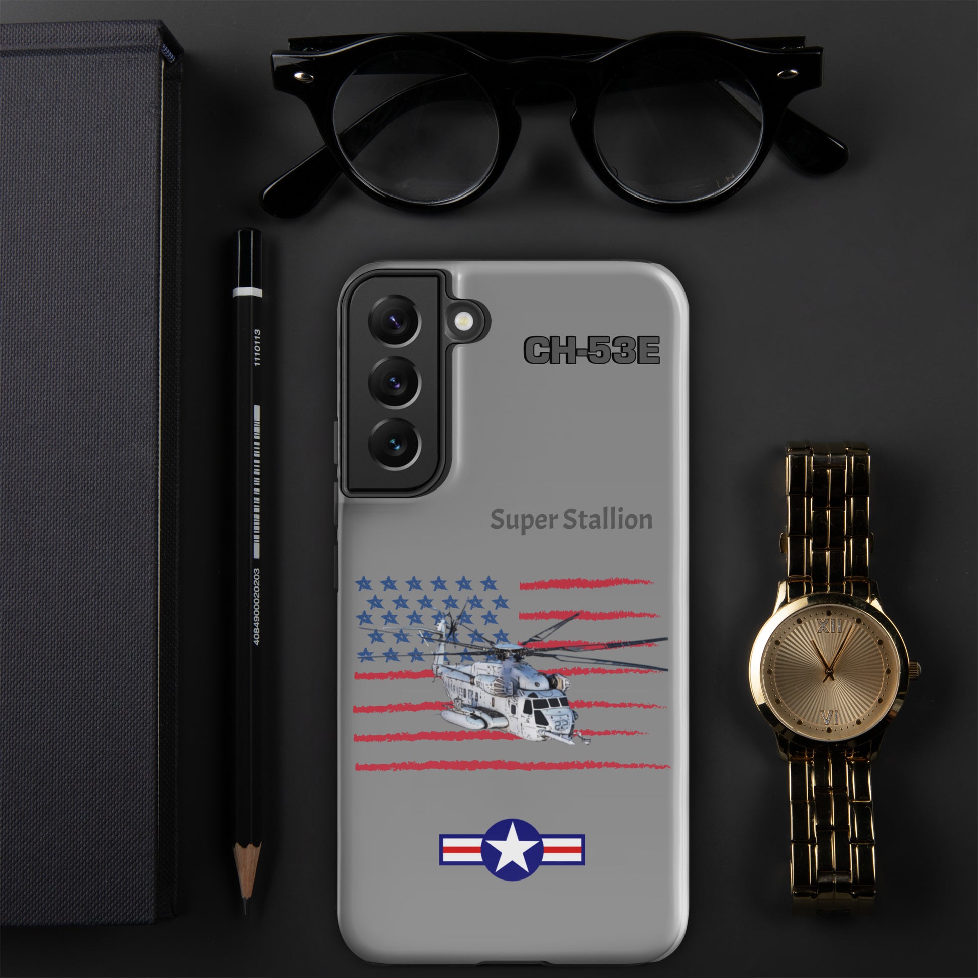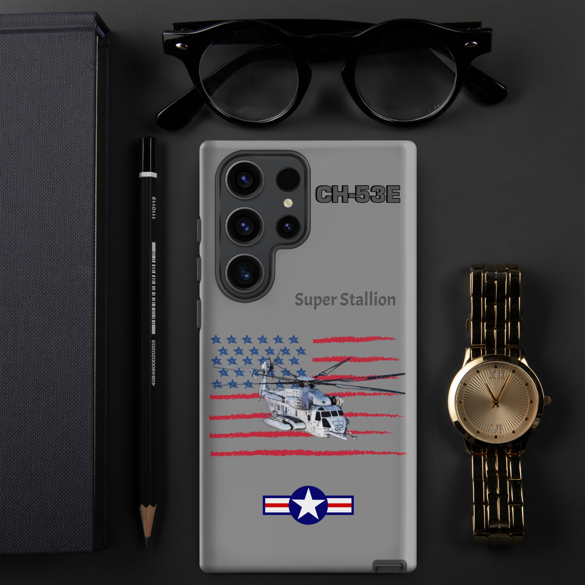 Embrace the power of flight and patriotism with our CH-53 Super Stallion Samsung case. Designed to protect your device while showcasing the might of this legendary rotorcraft, our case combines form and function with a touch of national pride. Elevate your style while celebrating the legacy of aviation excellence and the strength of the USA. Unite protection and patriotism with every glance.