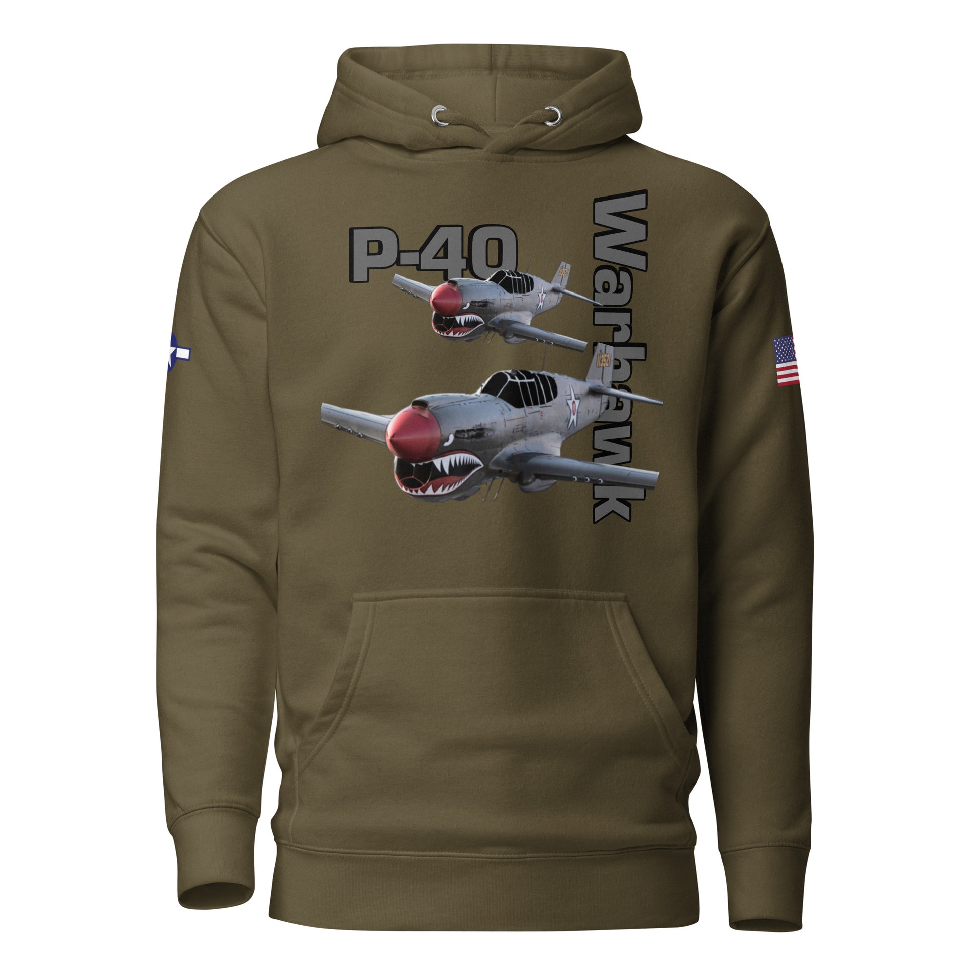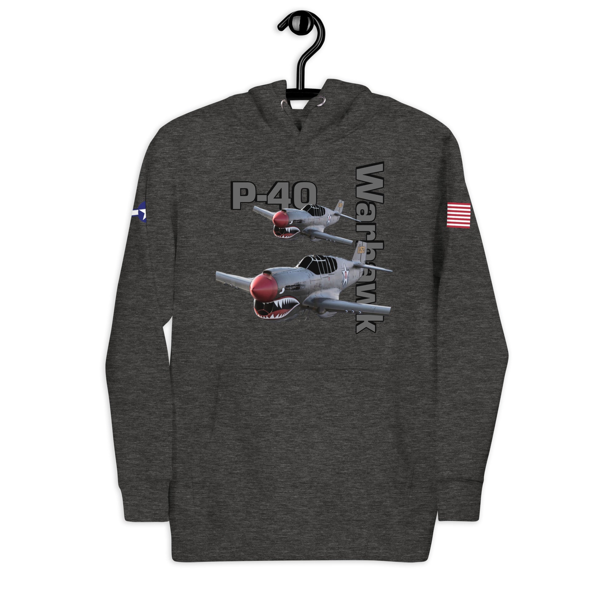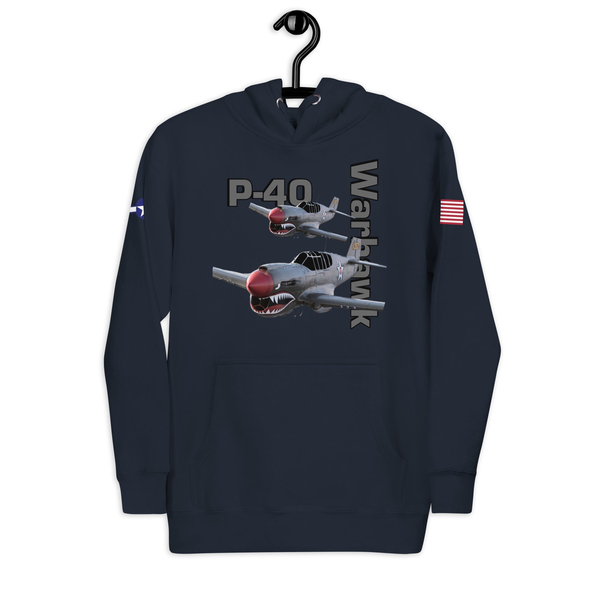Elevate your style and embrace the legacy of aviation with our Warhawk Patriot Unisex Hoodie. Featuring the iconic P-40 Warhawk, this hoodie pays tribute to the legendary aircraft that left a mark on WWII skies. Meticulously designed for both comfort and fashion, it's more than just a hoodie; it's a statement of appreciation for the Warhawk's enduring legacy. Stay warm and make a bold statement in classic aviation style with the Warhawk Patriot Unisex Hoodie.