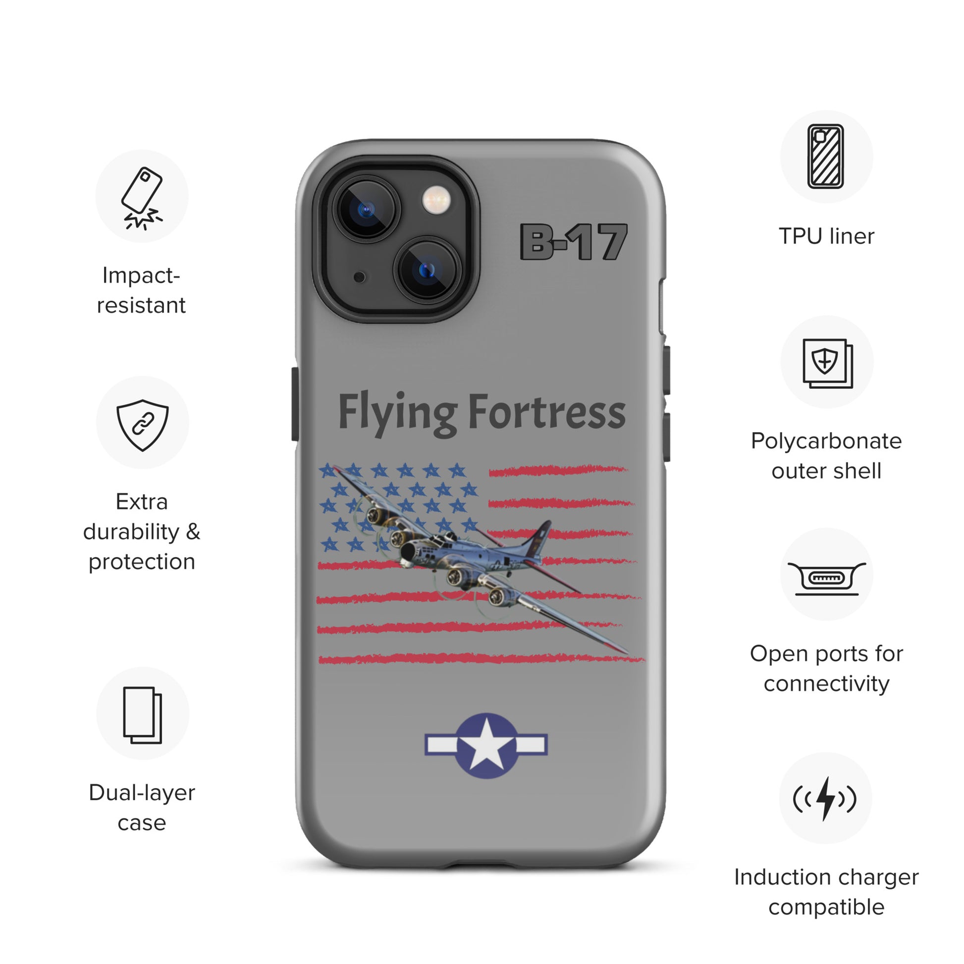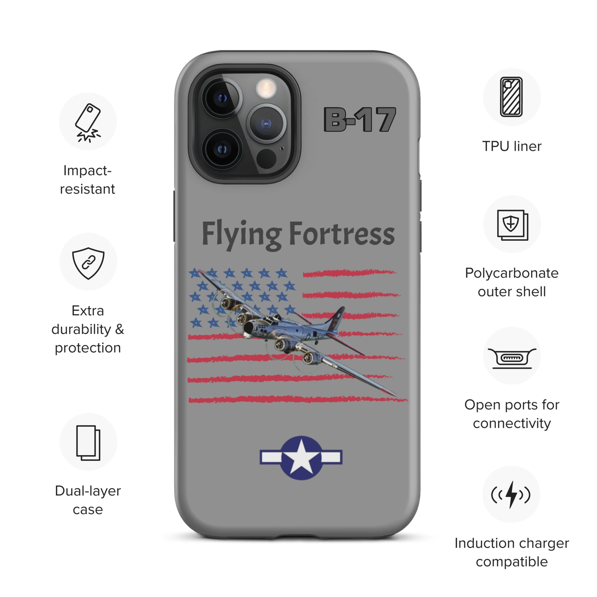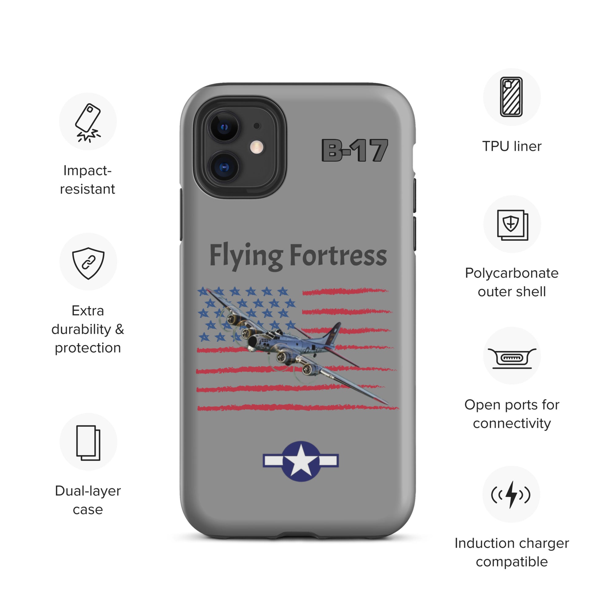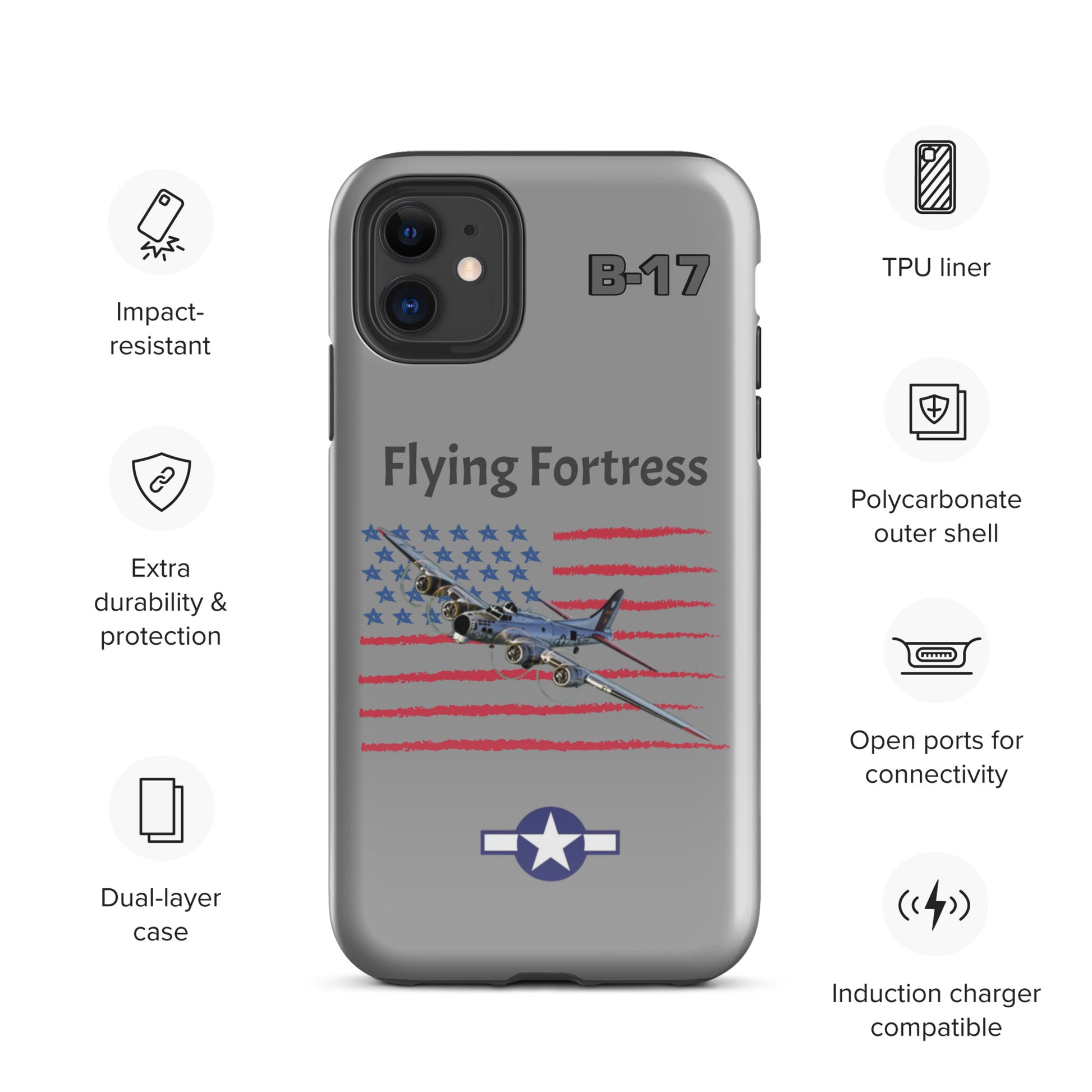 Secure your iPhone with a piece of WWII history using our Fortress Patriot iPhone Case. Featuring the iconic Fortress bomber, this case pays homage to the legendary aircraft that played a crucial role during World War II. Meticulously designed for both protection and style, it not only shields your device but also celebrates the enduring legacy of the Fortress. Carry a touch of aviation heritage in your pocket and make a bold statement with the Fortress Patriot iPhone Case wherever you go.