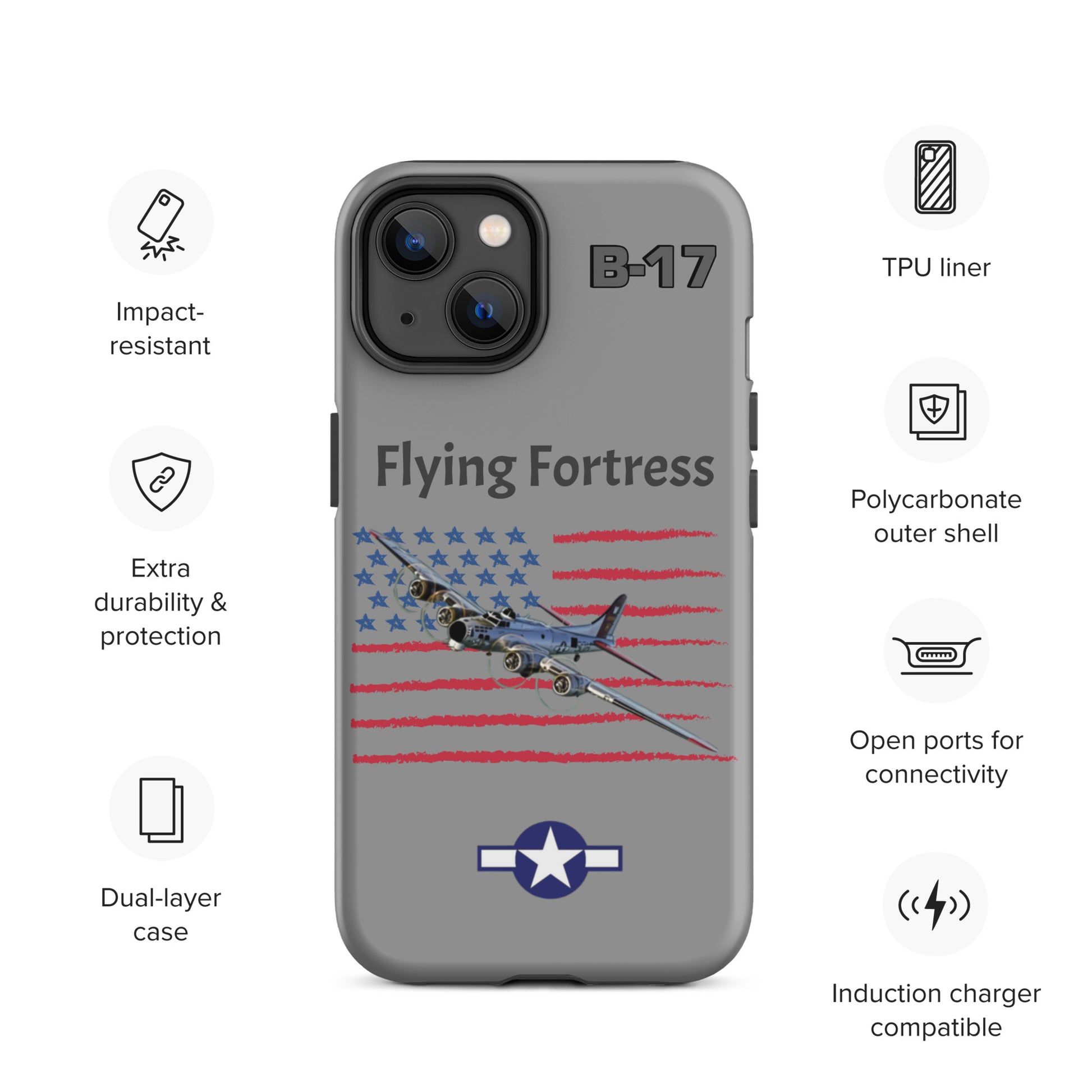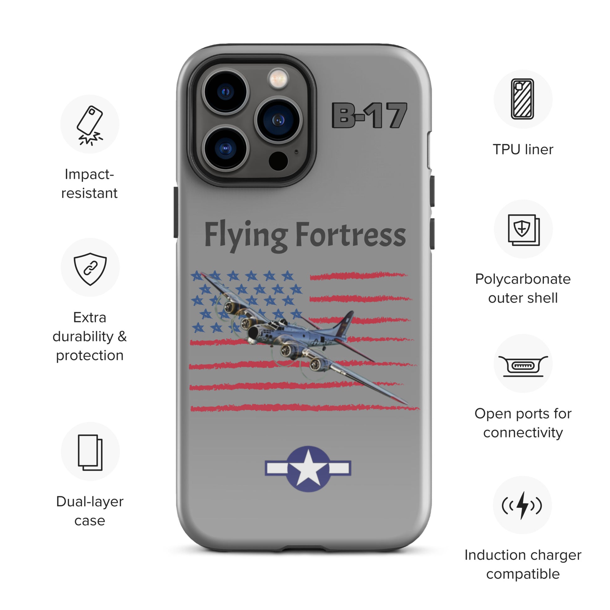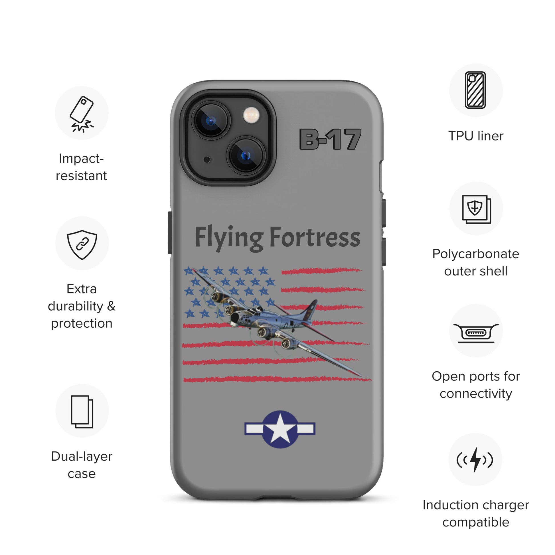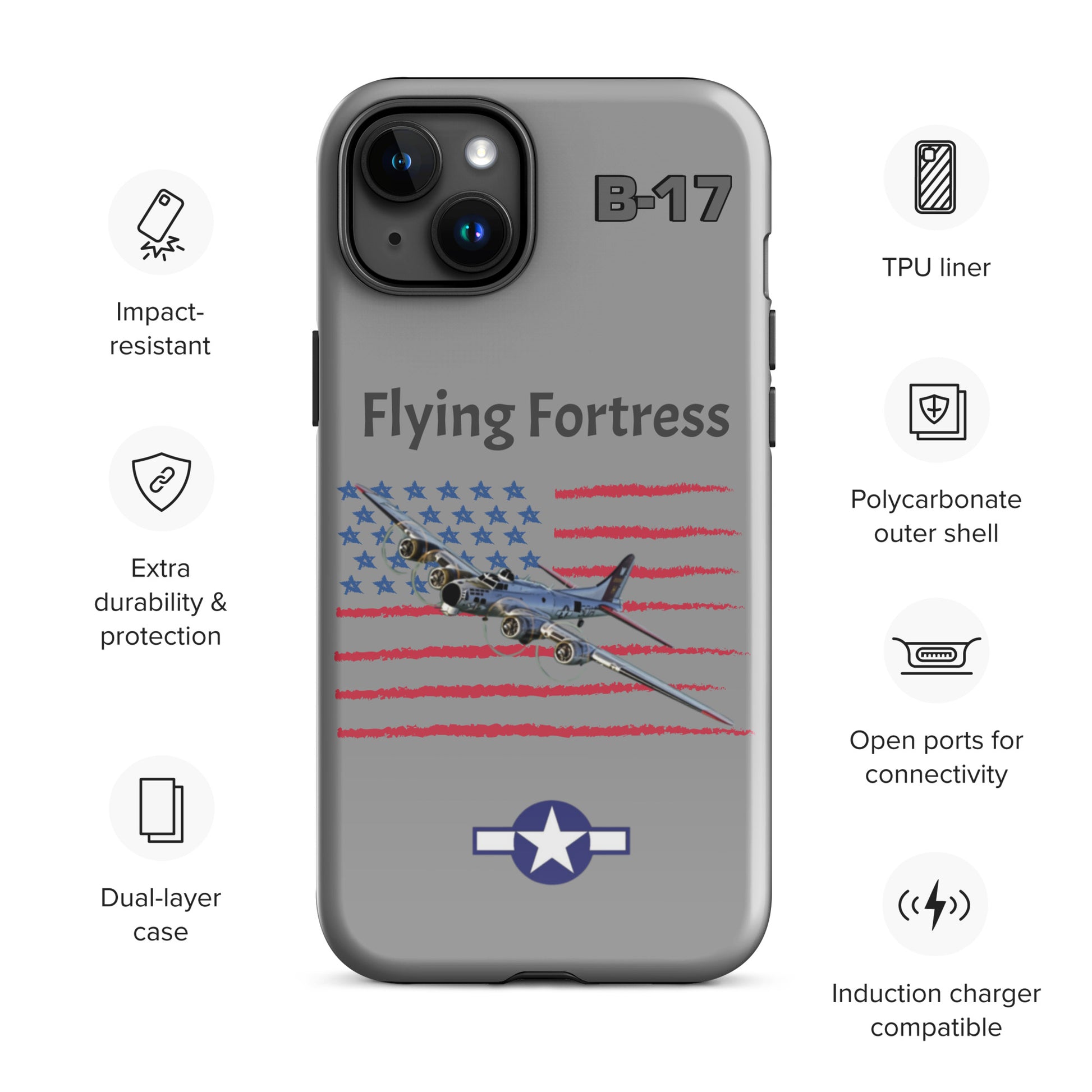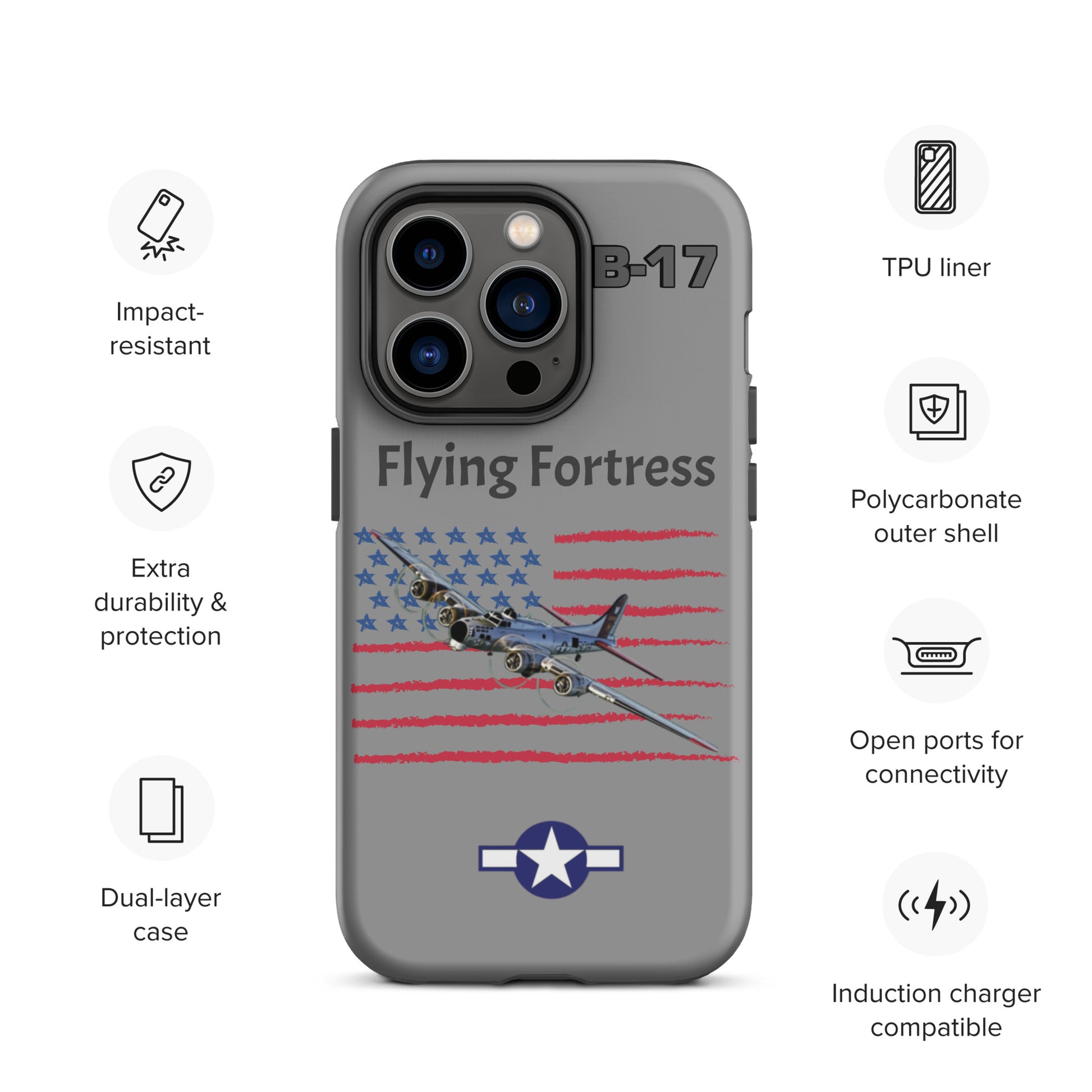 Secure your iPhone with a piece of WWII history using our Fortress Patriot iPhone Case. Featuring the iconic Fortress bomber, this case pays homage to the legendary aircraft that played a crucial role during World War II. Meticulously designed for both protection and style, it not only shields your device but also celebrates the enduring legacy of the Fortress. Carry a touch of aviation heritage in your pocket and make a bold statement with the Fortress Patriot iPhone Case wherever you go.