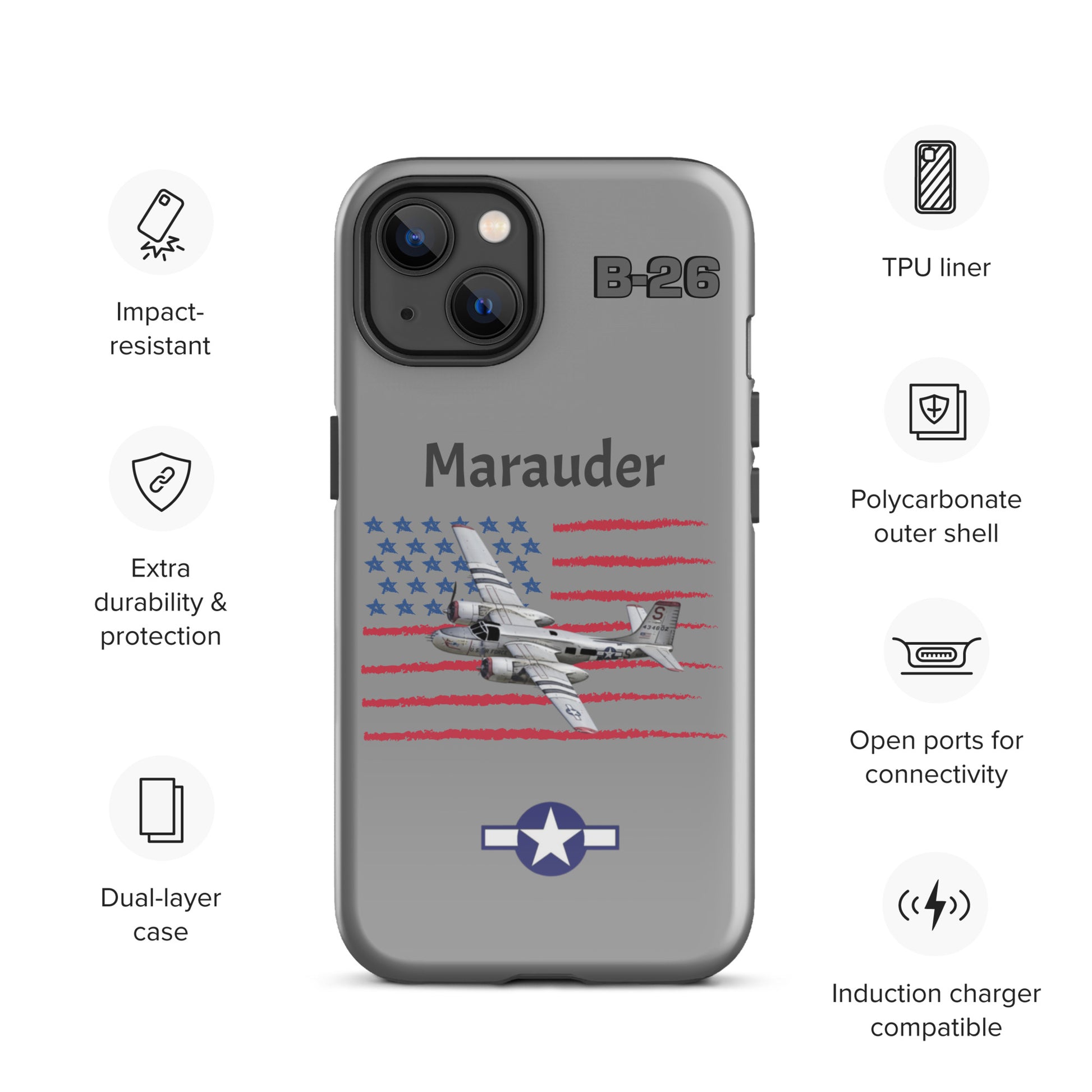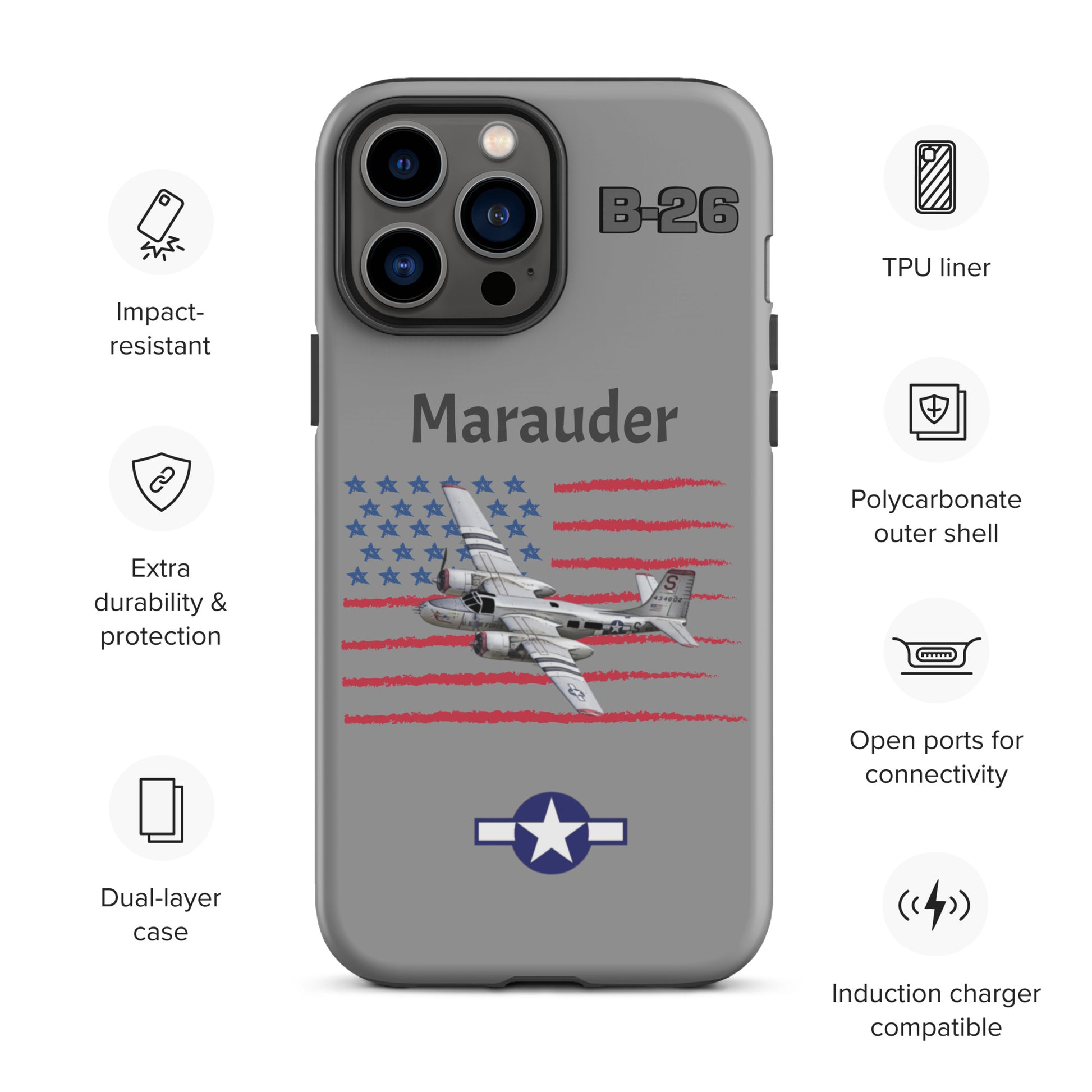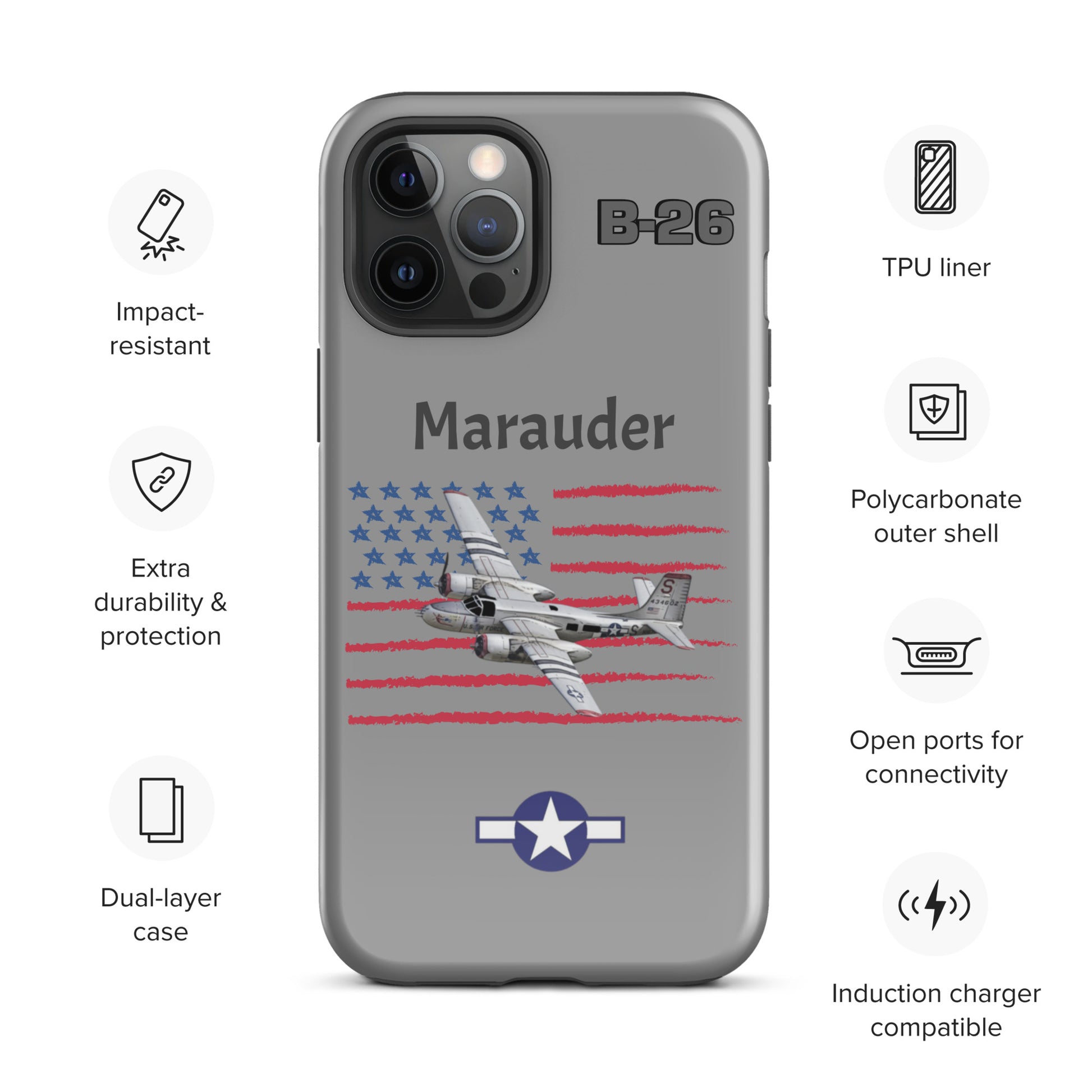 Secure your iPhone with a piece of WWII history using our Marauder Patriot iPhone Case. Featuring the iconic B-26 Marauder bomber, this case pays homage to the legendary aircraft that played a crucial role during World War II. Meticulously designed for both protection and style, it not only shields your device but also celebrates the enduring legacy of the Marauder. Carry a touch of aviation heritage in your pocket and make a bold statement with the Marauder Patriot iPhone Case wherever you go.