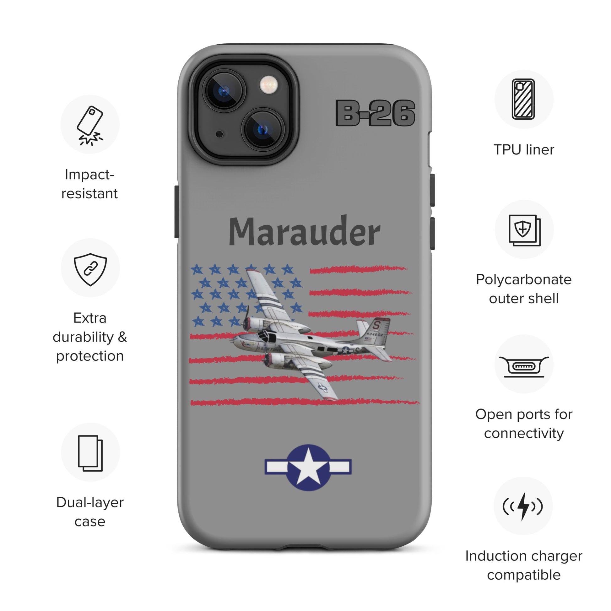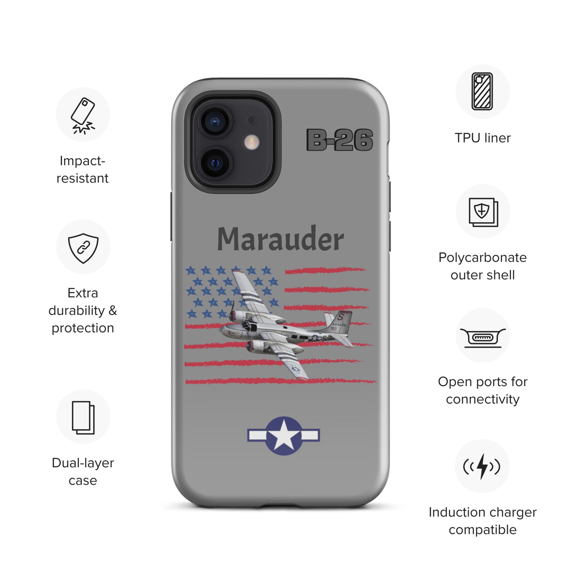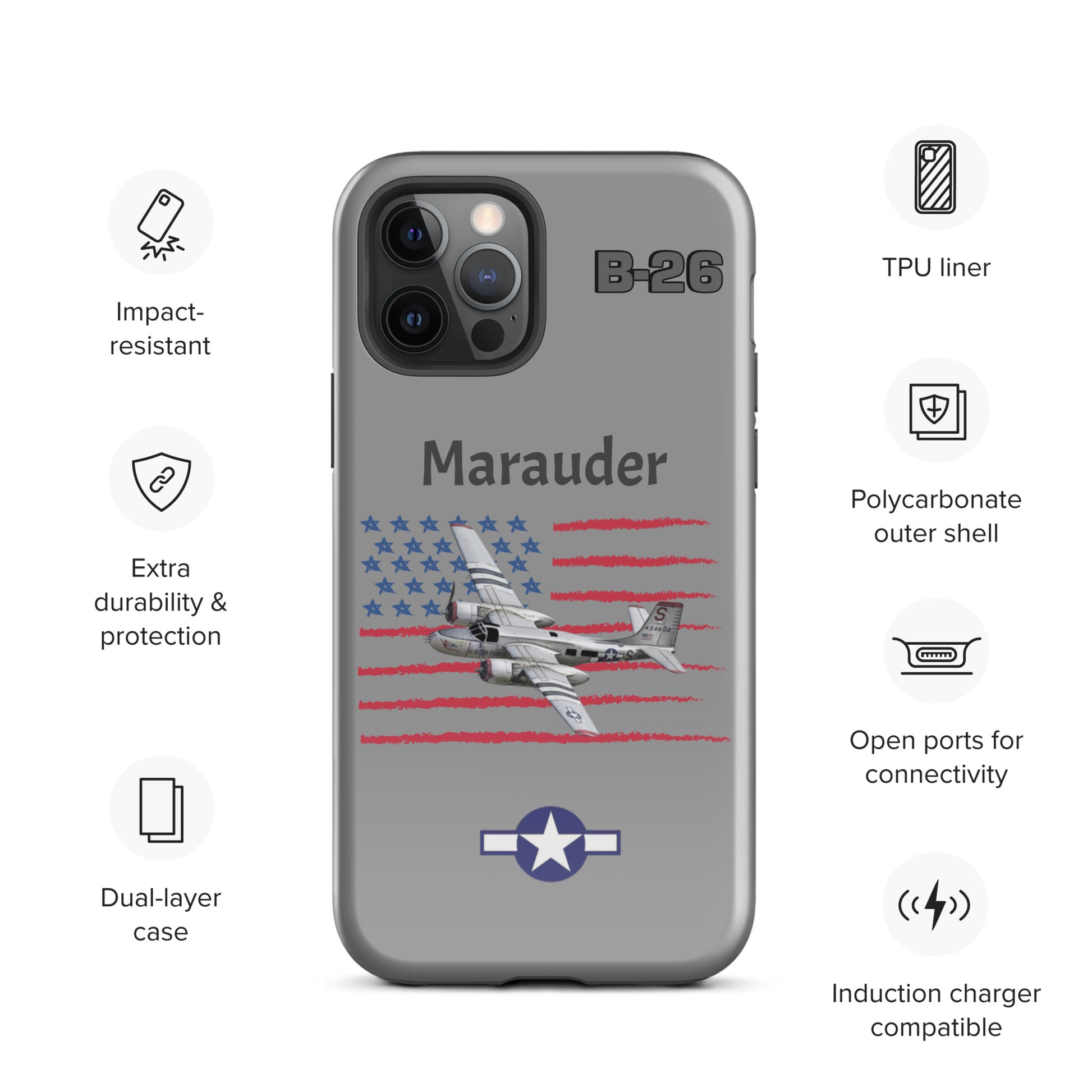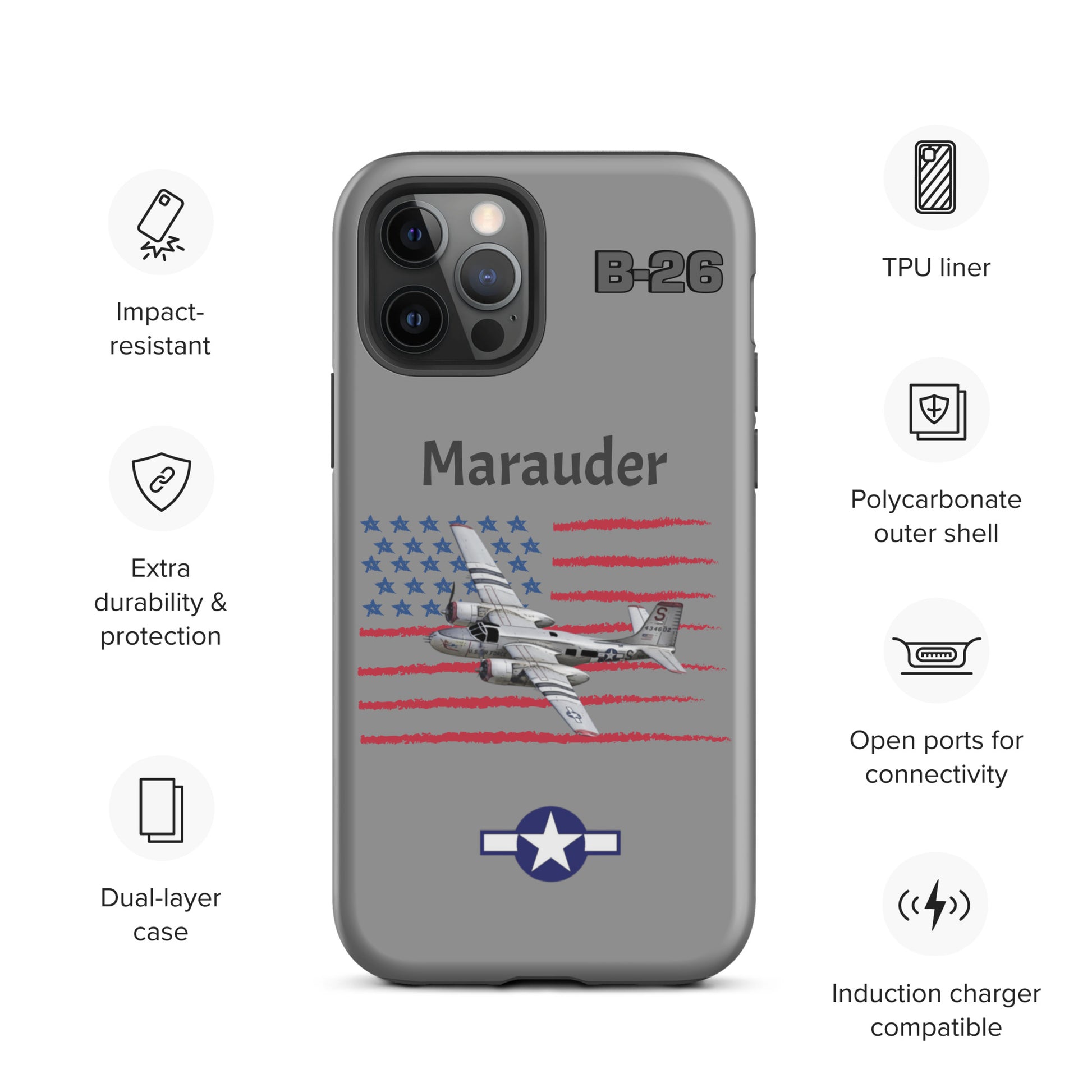 Secure your iPhone with a piece of WWII history using our Marauder Patriot iPhone Case. Featuring the iconic B-26 Marauder bomber, this case pays homage to the legendary aircraft that played a crucial role during World War II. Meticulously designed for both protection and style, it not only shields your device but also celebrates the enduring legacy of the Marauder. Carry a touch of aviation heritage in your pocket and make a bold statement with the Marauder Patriot iPhone Case wherever you go.